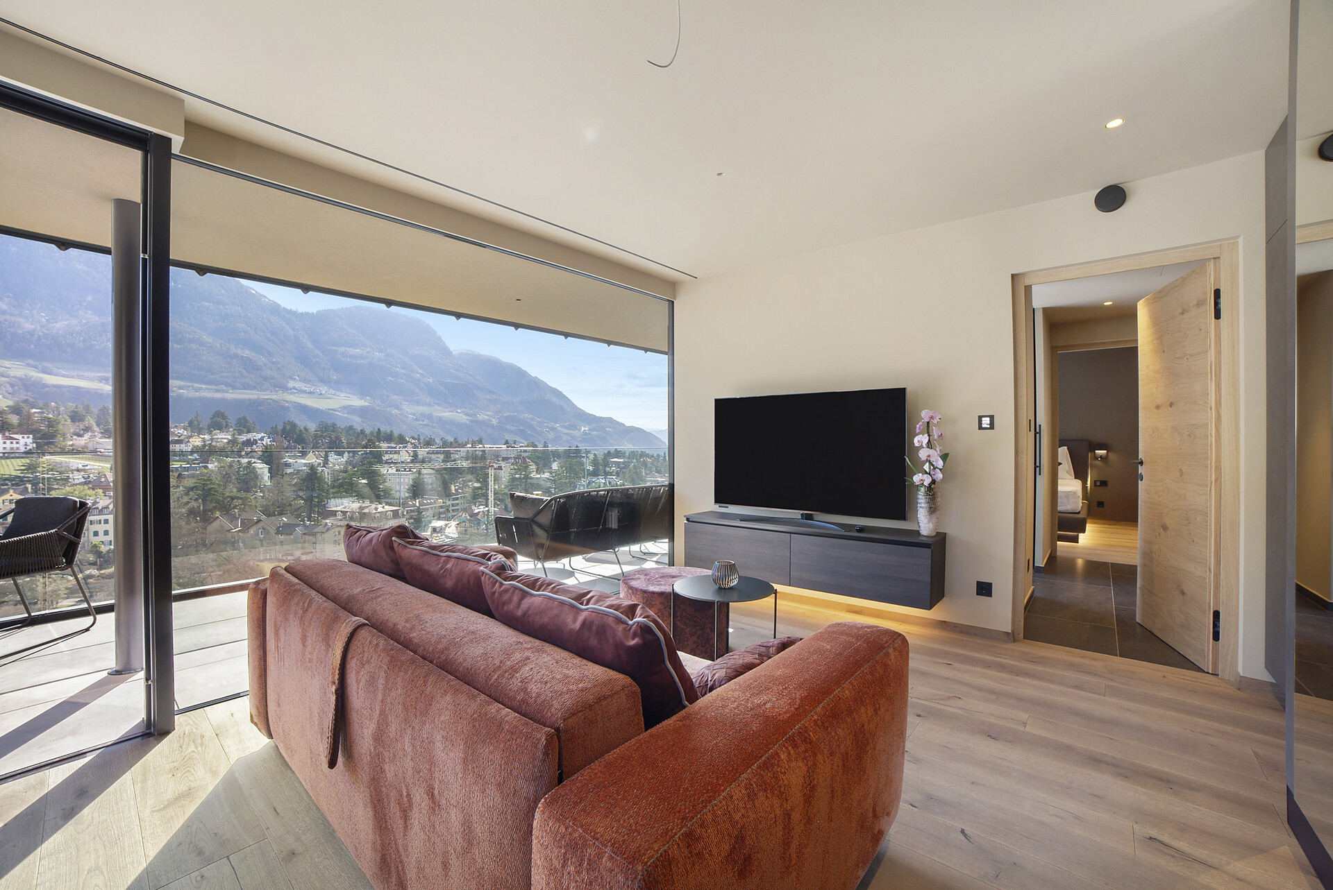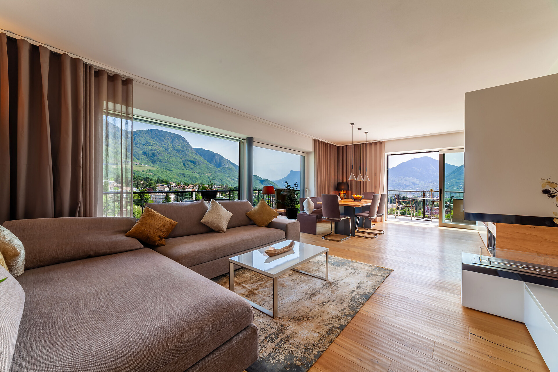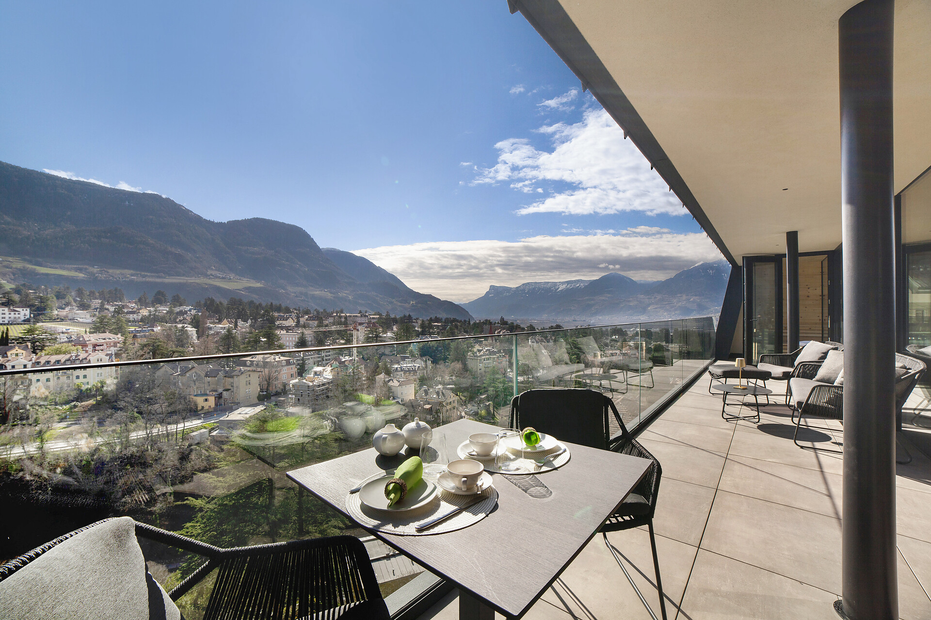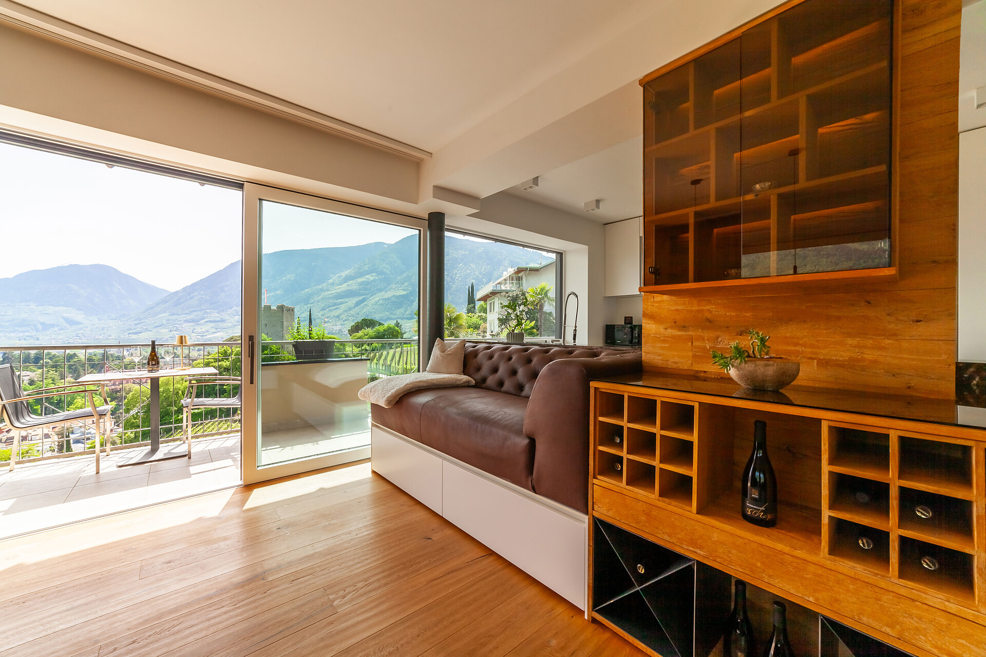 Mit Blick auf die Alpen beeindrucken die Ferienwohnungen Levita Living in Dorf Tirol mit ihrer fantastischen Aussicht.