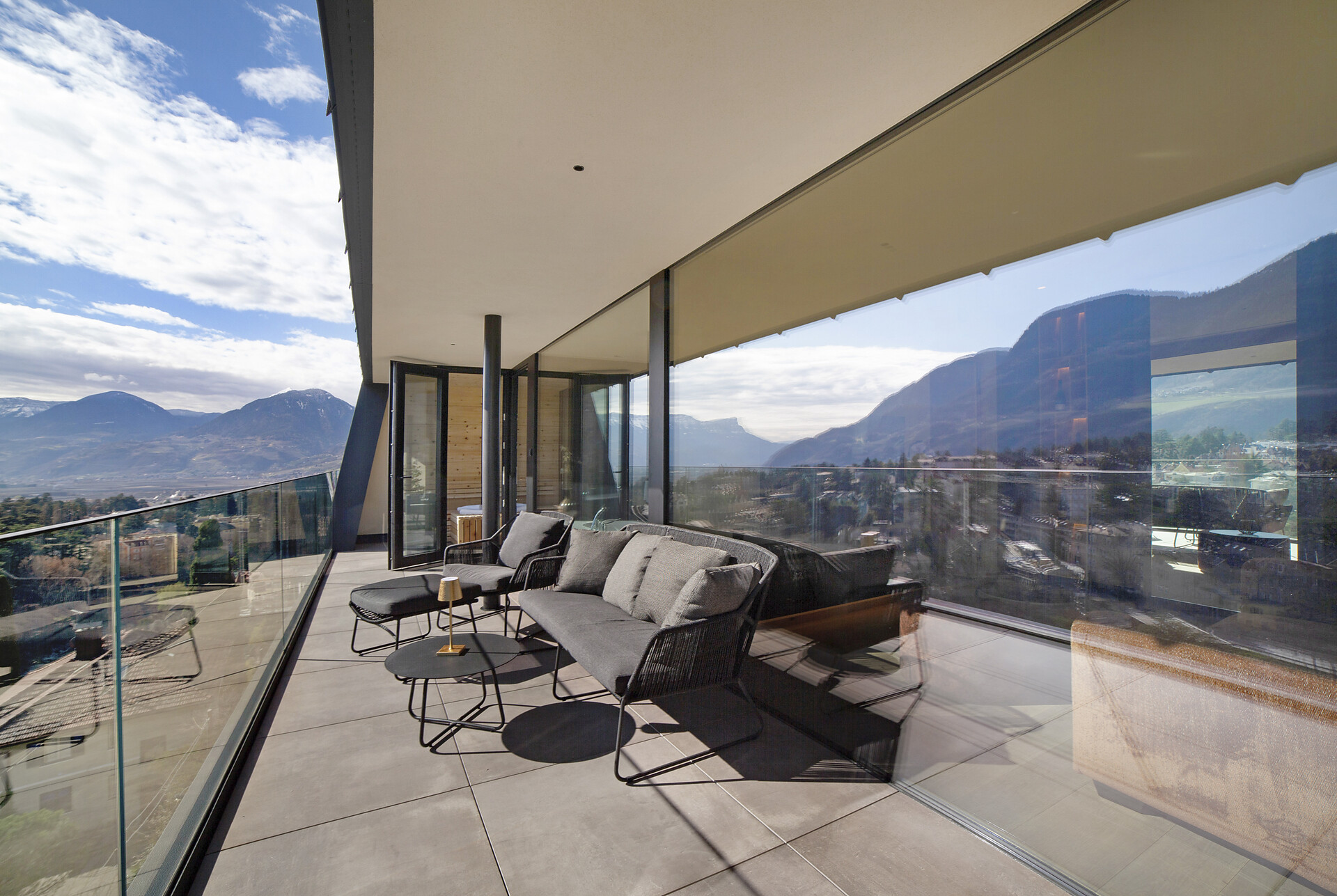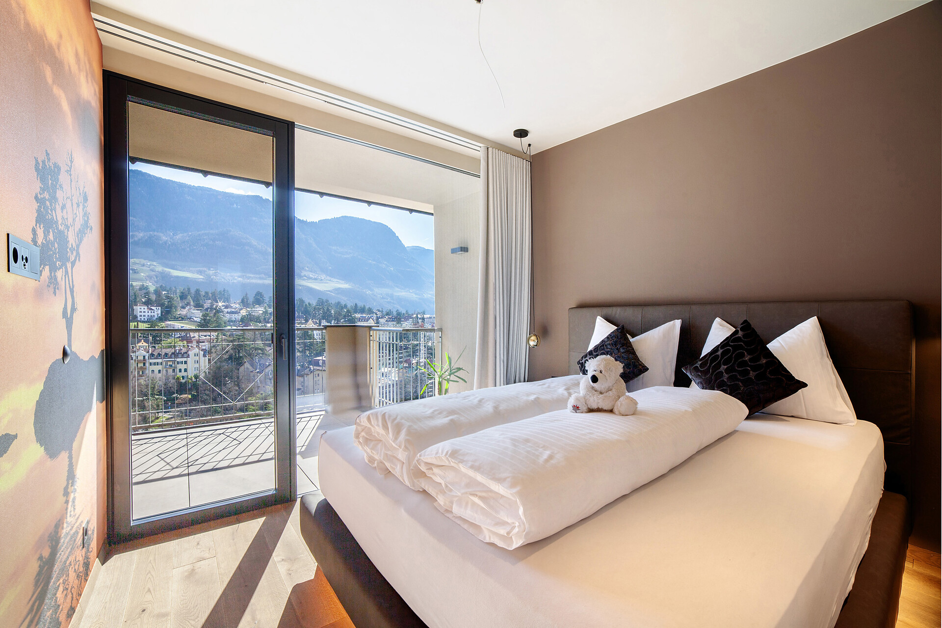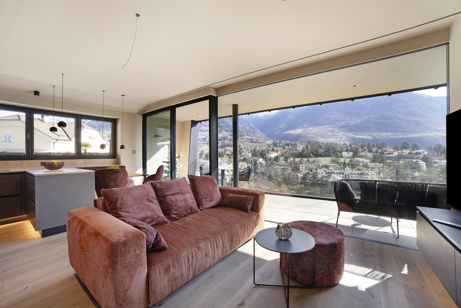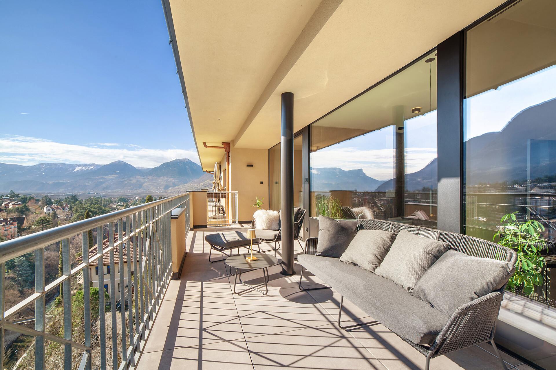 Mit Blick auf die Alpen beeindrucken die Ferienwohnungen Levita Living in Dorf Tirol mit ihrer fantastischen Aussicht.