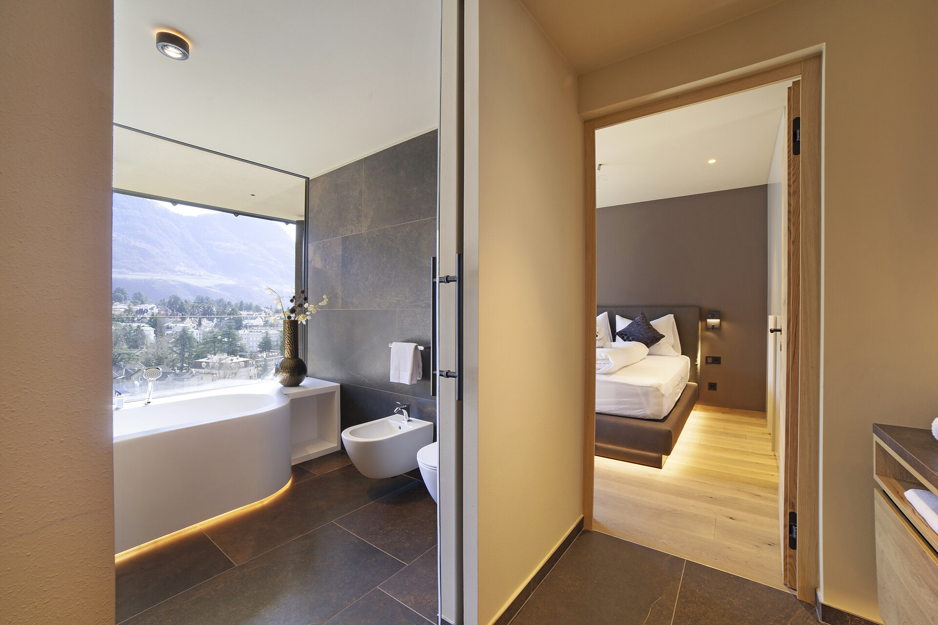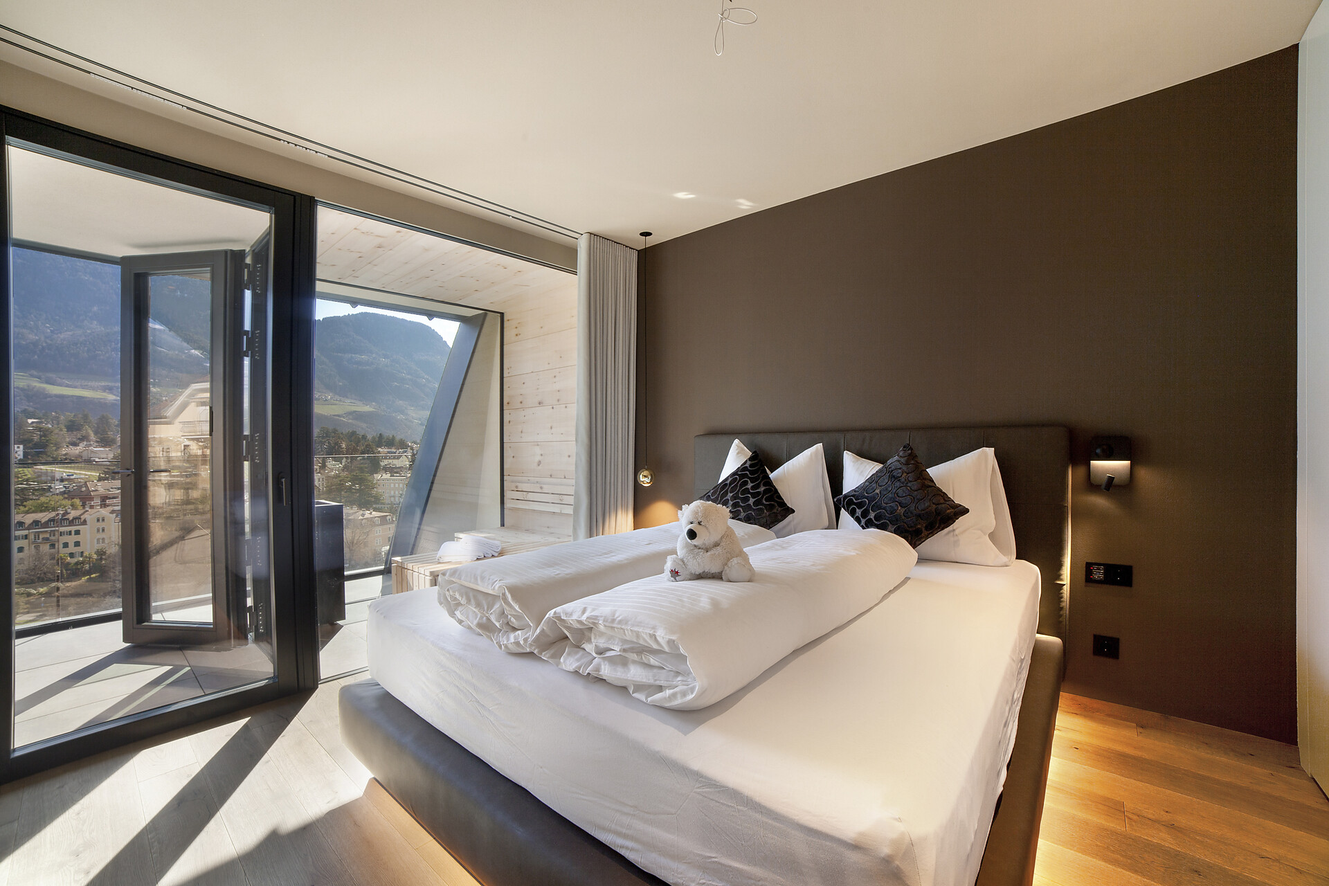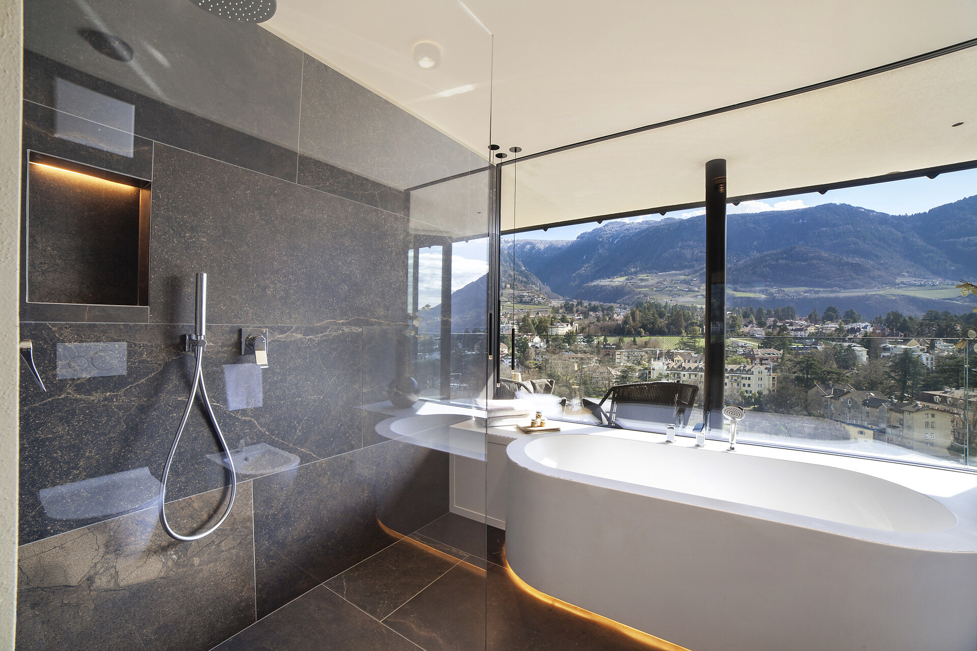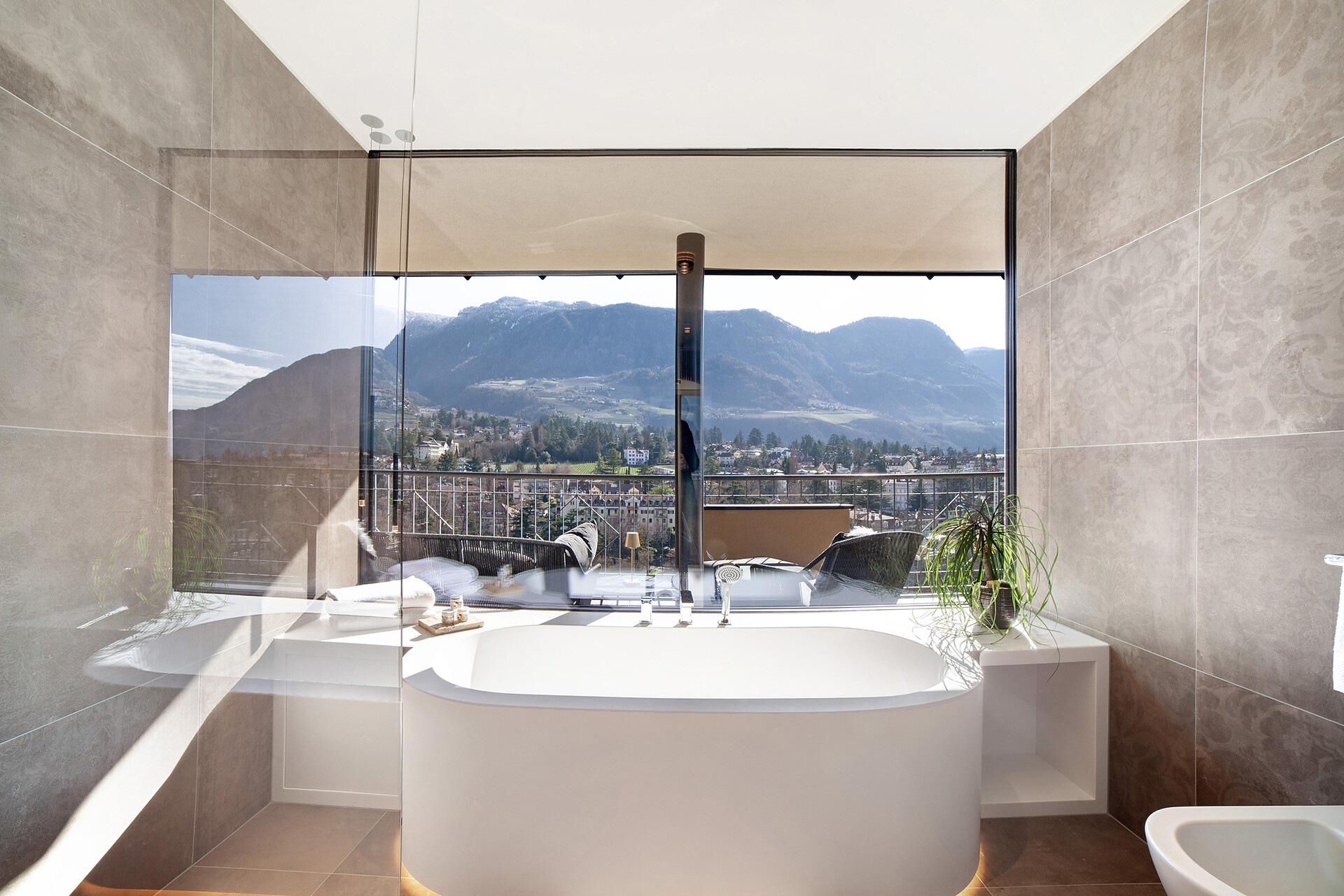 Mit Blick auf die Alpen beeindrucken die Ferienwohnungen Levita Living in Dorf Tirol mit ihrer fantastischen Aussicht.