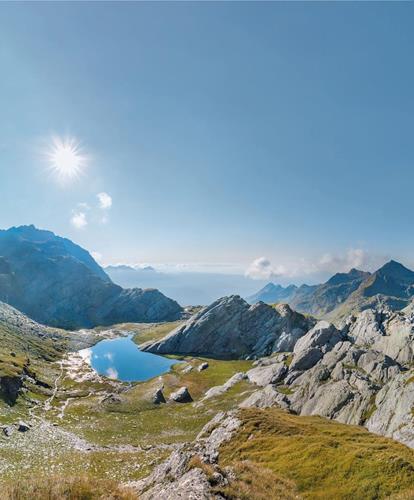 und das Faltschnaljöchl weiter zum Spronser Joch, das einen herrlichen Ausblick auf die Seen bietet.