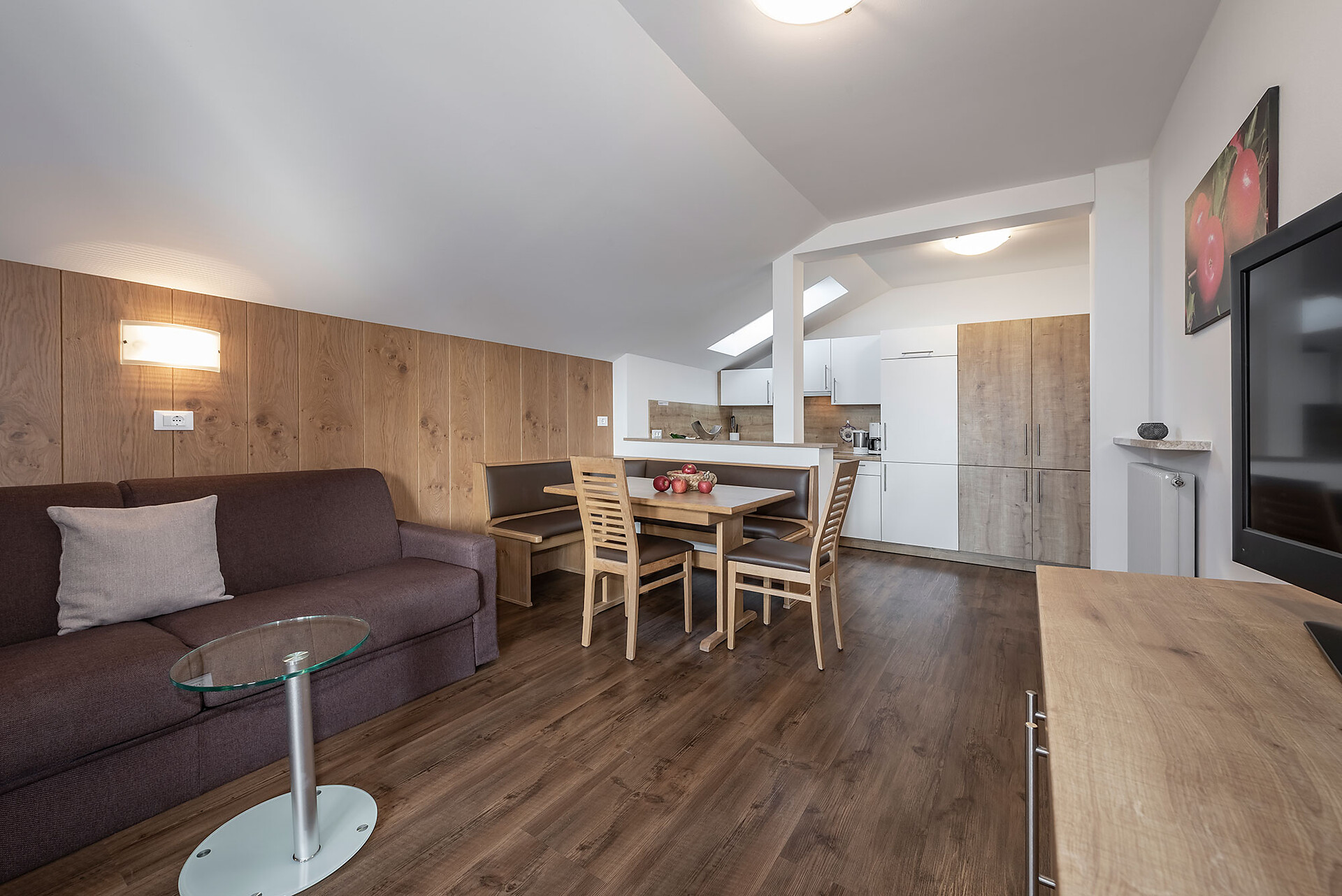 Doppelbett, Doppelschlafcouch, Balkon, Separater Wohnraum, Bettwäsche vorhanden, Safe, Nichtraucher-Apartment, Wohnküche, Kaffeemaschine, Geschirrspülmaschine, Elektroherd, Mikrowelle, Geschirrausstattung, Wasserkocher, Backrohr, Dusche/Bad, Haarfön, TV, Satellit/Kabel, WLAN, Reinigung auf Anfrage, Endreinigung inbegriffen, Haupthaus, Panoramablick, Südseite