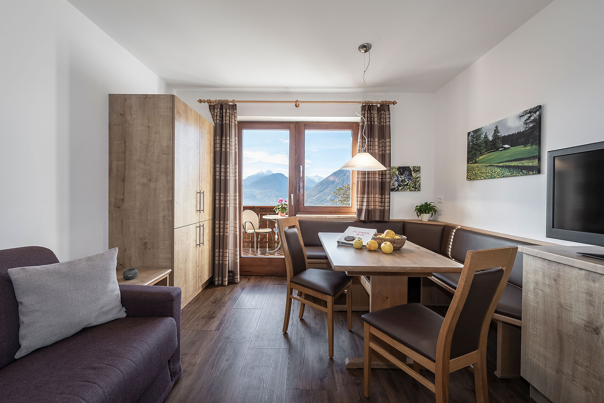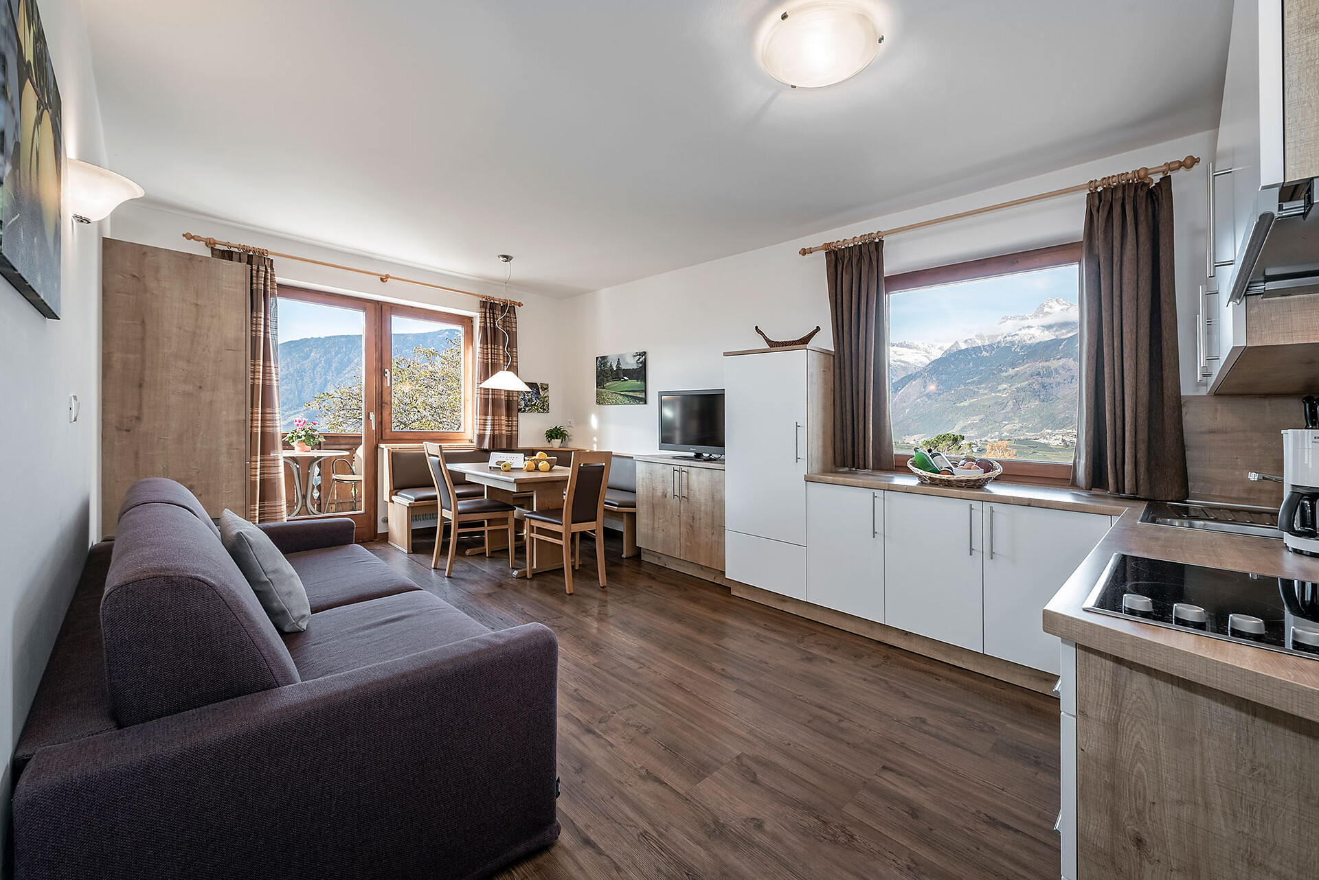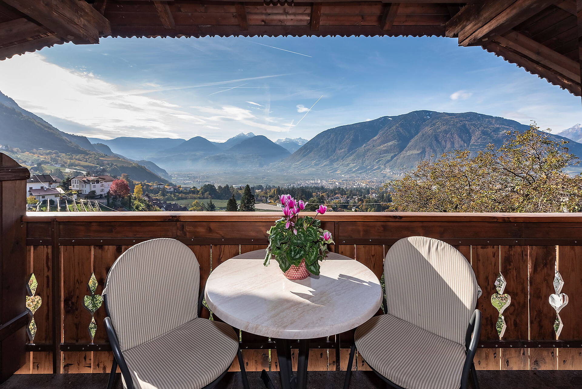 Der Plunerhof liegt in ruhiger, sonniger Panoramalage, inmitten von Obstwiesen am Dorfeingang von Schenna. Hier genießen Sie eine traumhafte Aussicht auf die Kurstadt Meran, Dorf Tirol, das Etschtal und die gesamte Bergwelt des Meraner Landes. Den Dorfkern von Schenna erreichen Sie entweder über einen ca.20-minütigen Spaziergang oder bequem mit dem Bus. Die nächste Bushaltestelle ist nämlich nur 3 Minuten von unserem Haus entfernt. Die Lage des Plunerhofes bietet außerdem einen idealen Ausgangspunkt für aussichtsreiche Wanderungen, Spaziergänge auf den umliegenden Waalwegen, Ausflüge zu Almen und Berghütten, Hochgebirgstouren oder Gipfelbesteigungen und auch für Radtouren jeglichen Schwierigkeitsgrad.