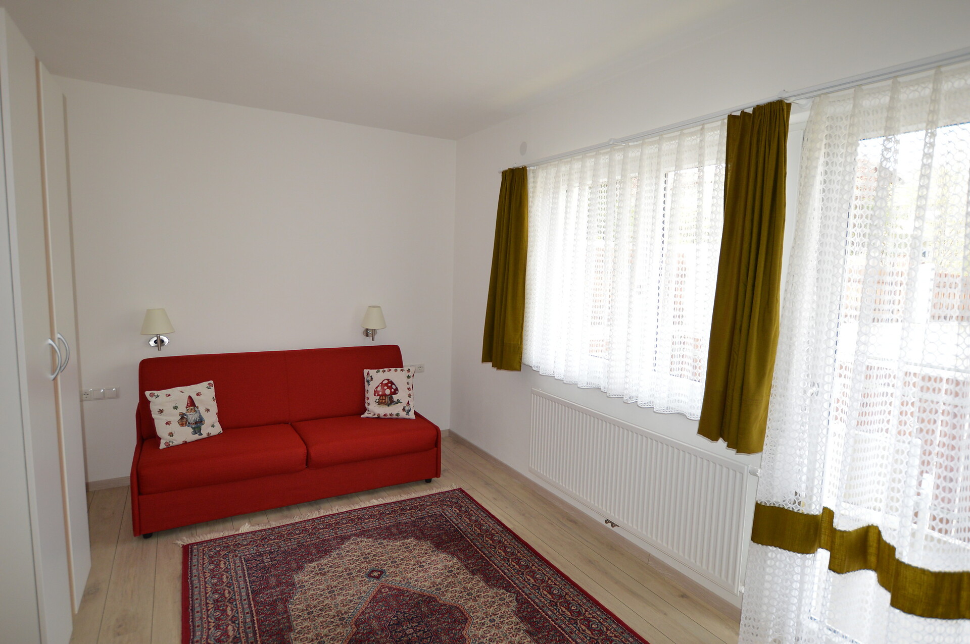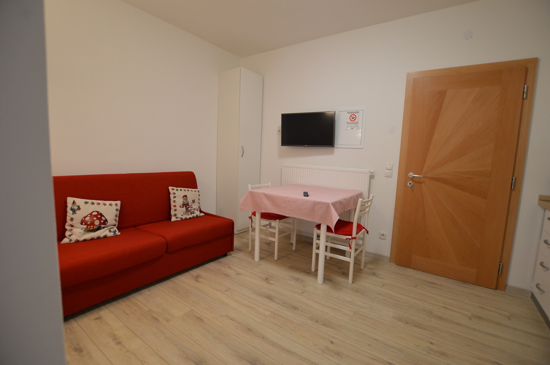 Doppelbett, Bettsofa, Doppelschlafcouch, Balkon, Separater Wohnraum, Bettwäsche vorhanden, Wohnküche, Kaffeemaschine, Geschirrspülmaschine, Elektroherd, Mikrowelle, Geschirrausstattung, Wasserkocher, Dusche/Bad, Bidet, Haarfön, Badetücher, TV, Satellit/Kabel, WLAN, Reinigung auf Anfrage, Endreinigung inbegriffen, Haupthaus, Panoramablick, Südseite