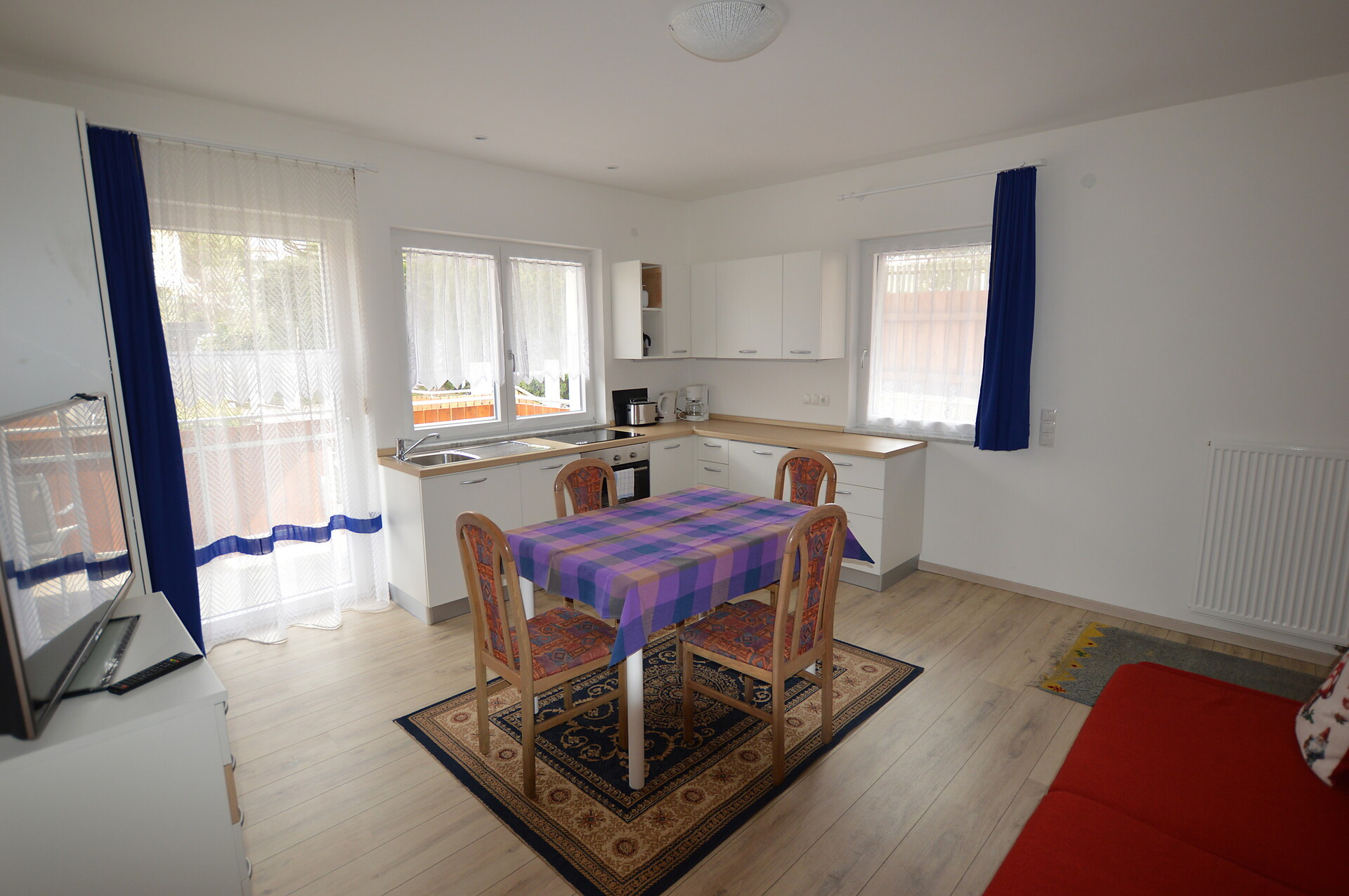 Schlafzimmer, Wohnzimmer mit Küchenecke, Bad mit Dusche / Wc, 2 Balkone