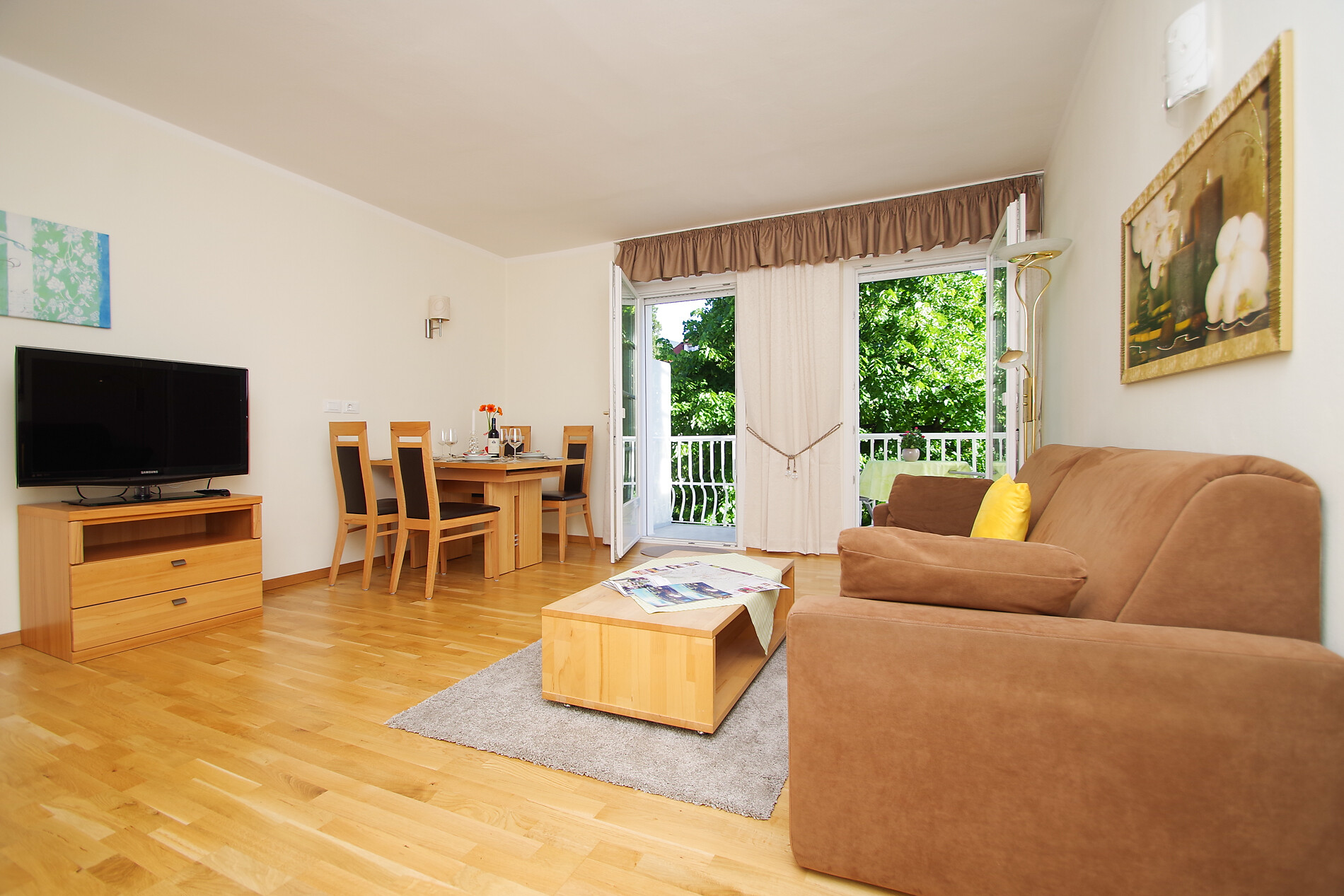 Es stehen Ihnen neue Flachbildfernseher 38“/50" Full HD digital SAT-TVs, WLAN-Empfang sowie eine Zimmersafe zur Verfügung. Die Zweiraumferienwohnungen haben ein getrennten Wohn-Schlafraum und es sind alle mit einem hochwertigen Eichenholz-Parkettfußböden ausgestattet, geeignet für Allergiker.