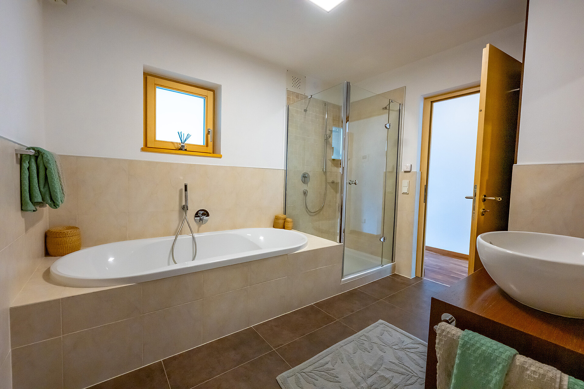Doppelbett, Balkon, Kaffee-/Tee-Maschine, Dusche / Bad, Separates WC, Bidet, Haarfön, Badewanne, TV, WLAN, Haupthaus, Panoramablick