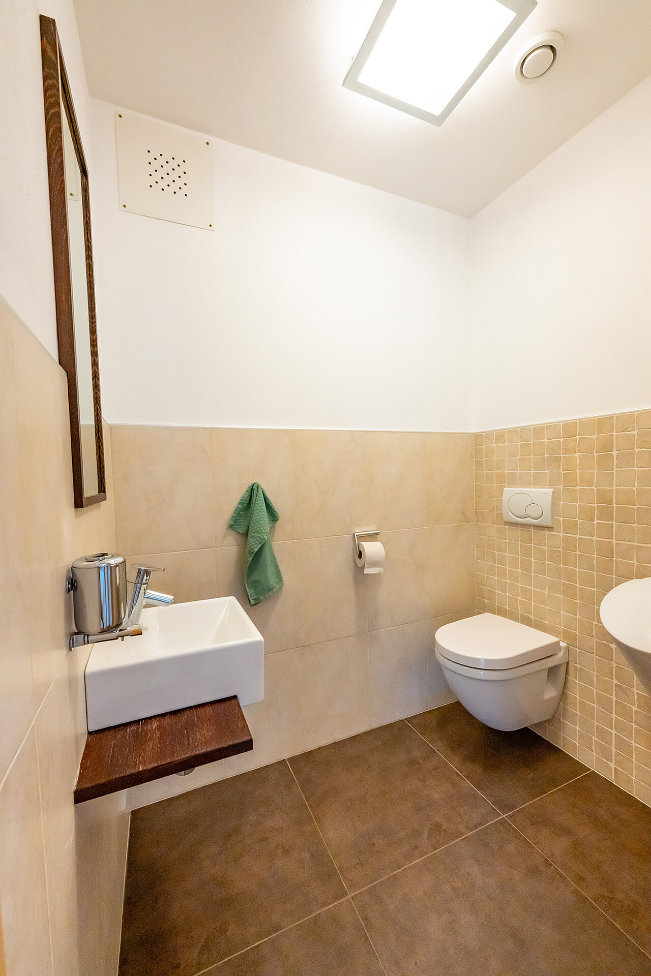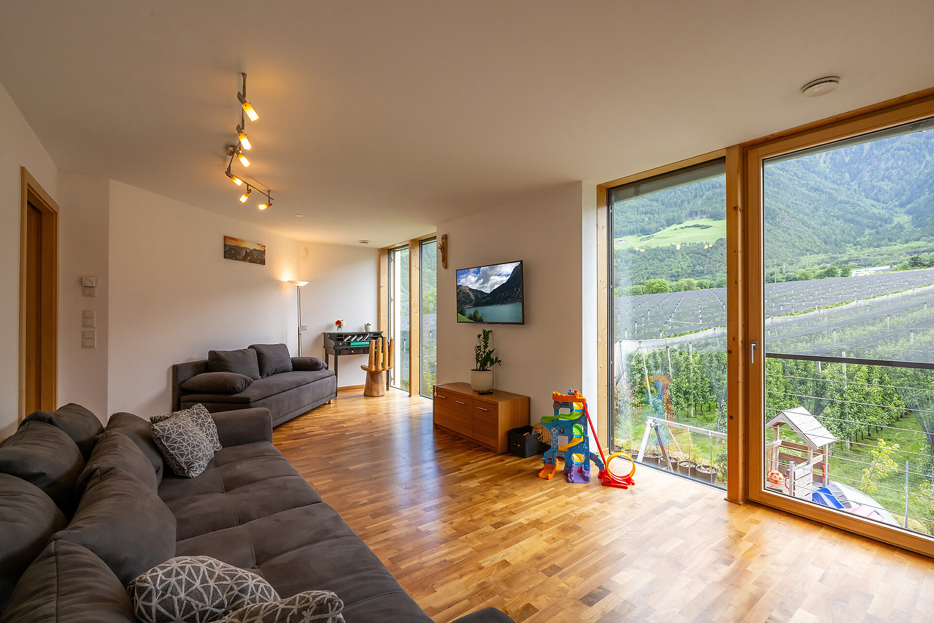 Im Garten gibt es Sitz- und Essgelegenheiten, einen Grill, Liegestühle und eine Spielplatz.