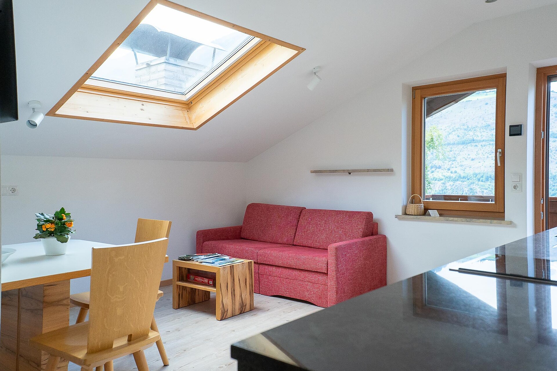 Doppelbett, Zustellbett, Bettsofa, Balkon, Garten, Barrierefrei, Separater Wohnraum, Bettwäsche vorhanden, Separate Küche, Kaffeemaschine, Geschirrspülmaschine, Elektroherd, Geschirrausstattung, Wasserkocher, Haarfön, Badetücher, TV, Satellit/Kabel, WLAN, Haupthaus, Panoramablick
