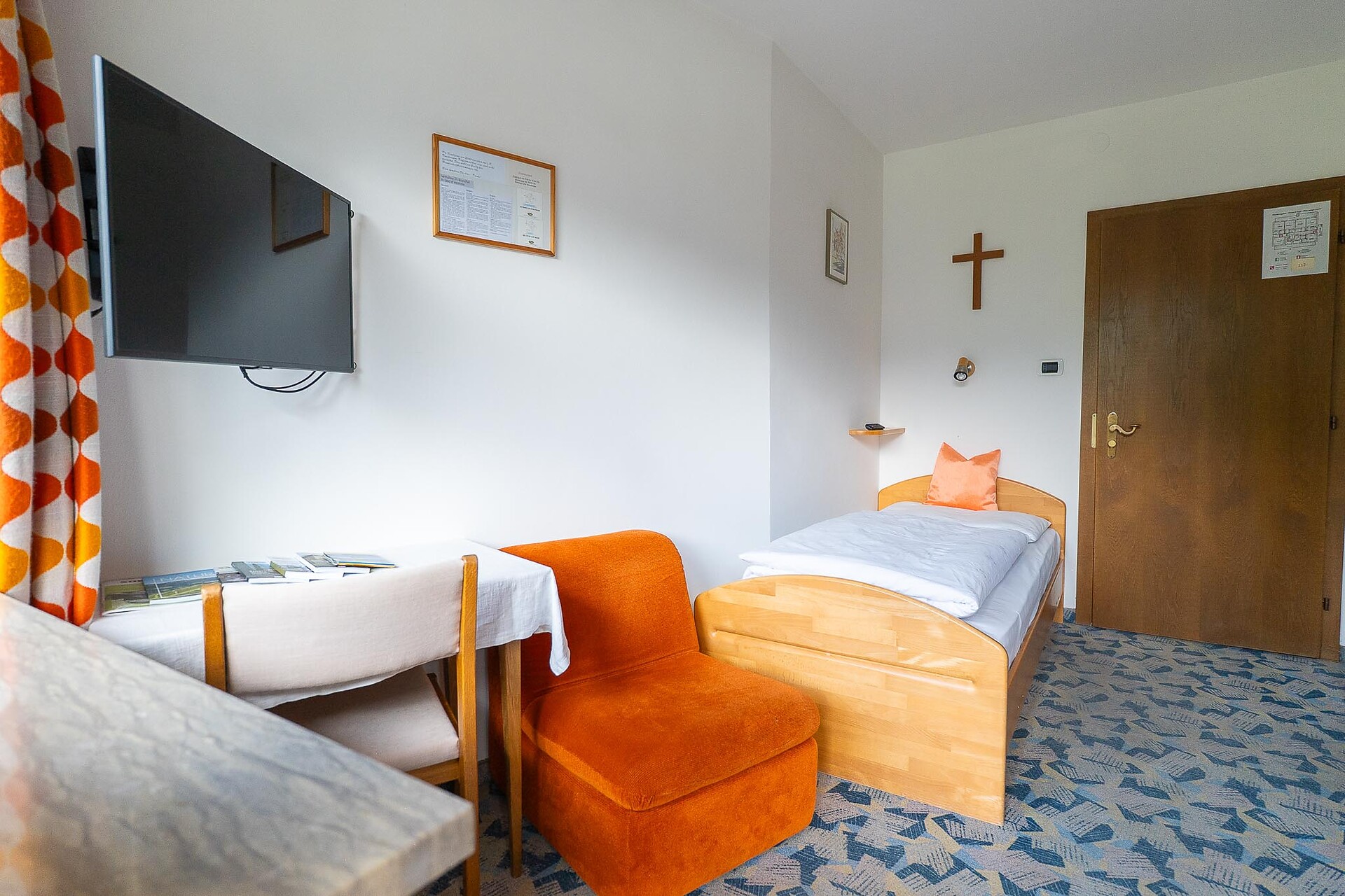 Einzelzimmer, Einzelbett, Zustellbett, Balkon, Safe, Dusche / Bad, Haarfön, Fernseher auf Anfrage, WLAN, Haupthaus