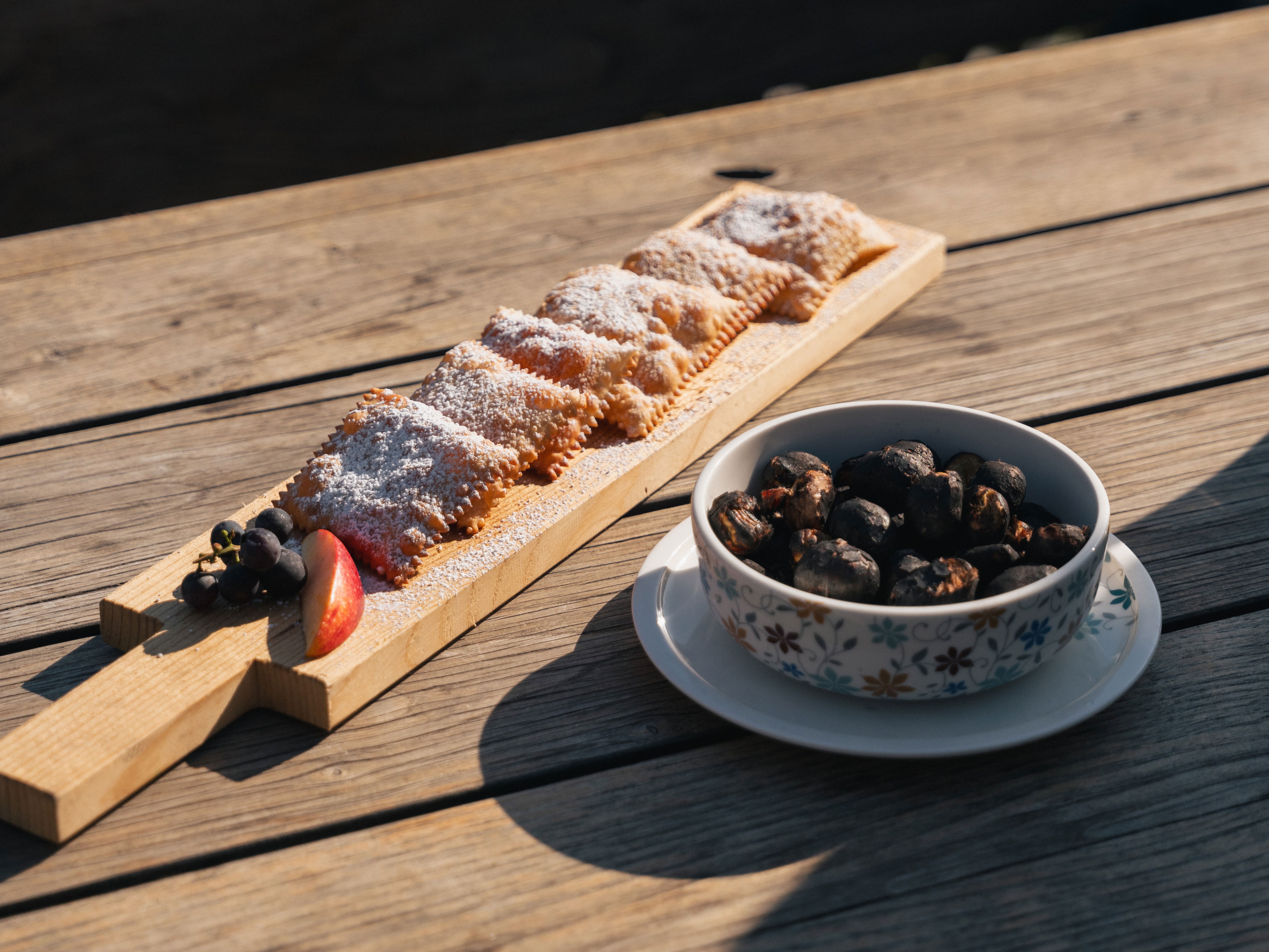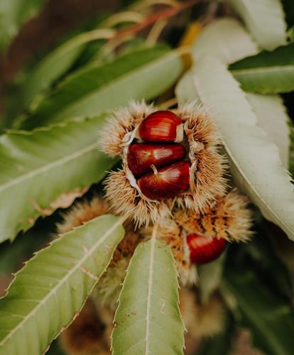 Die Geschichte zeigt, dass die Kastanie schon immer in enger Verbindung mit dem Weinbau kultiviert wurde. So wird das witterungsbeständige Holz seit jeher für das Erbauen der traditionellen „Pergl“, also der Gerüste, in den Weinbergen Südtirols verwendet. Und so verwundert es auch nicht, dass das von Weinbau geprägte Etschtal neben den Mittelgebirgsterrassen des Eisacktals sowohl zu den klassischen Kastanienanbau- als auch zu den typischen Törggelegebieten Südtirols gehört. Der Name Törggelen stammt übrigens vom lateinischen Wort torquere, womit das Pressen der Trauben gemeint ist. Zum Einsatz kam die Weinpresse, die sogenannte Torggl. Damals wie heute wird das traditionelle Törggelen in den Kellern und bäuerlichen Buschenschankbetrieben von Lana und Umgebung gerne mit einer kleinen Wanderung durch die herbstlich bunte Landschaft eingeleitet und mit dem Verzehr der "Keschtn", über offenem Feuer in einer langstieligen, mit Löchern versehenen Pfanne gebratenen Kastanien abgeschlossen. Die hochwertig und schmackhaft zubereiteten Törggelegerichte aus der Südtiroler Bauernküche, die Gerstsuppe, die Knödel und die Schlachtplatte mit Sauerkraut, Blut- und Hauswurst, passen perfekt zum Südtiroler Wein. Der süße, nur schwach vergorene Traubenmost Sußer (Süßer) und die herrlich knusprigen und mit Kastanien gefüllten Bauernkrapfen runden die kulinarische Reise ab.