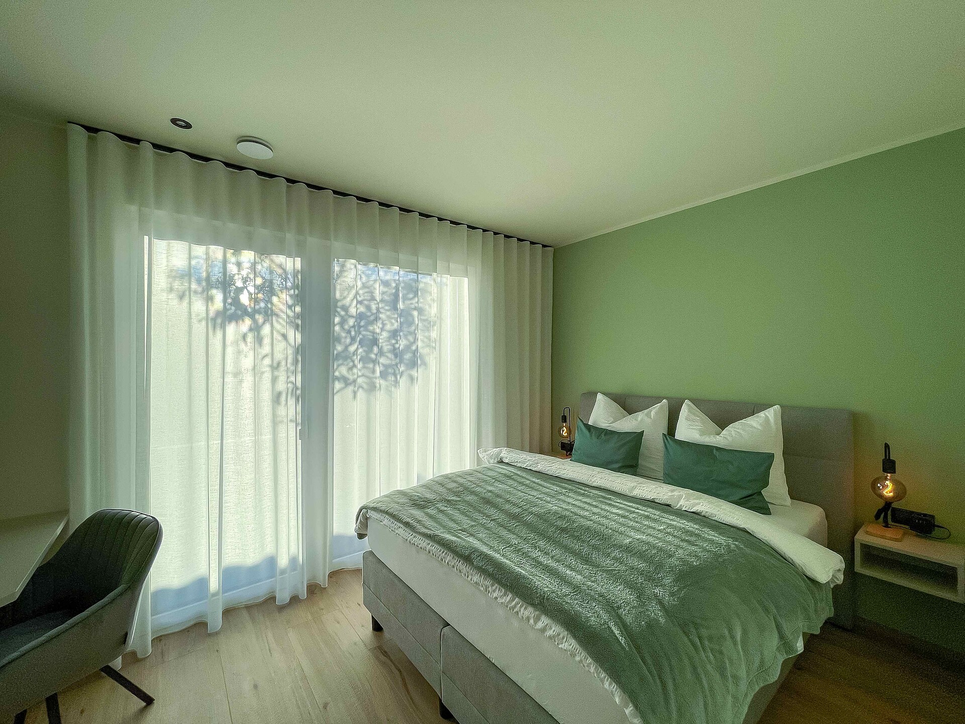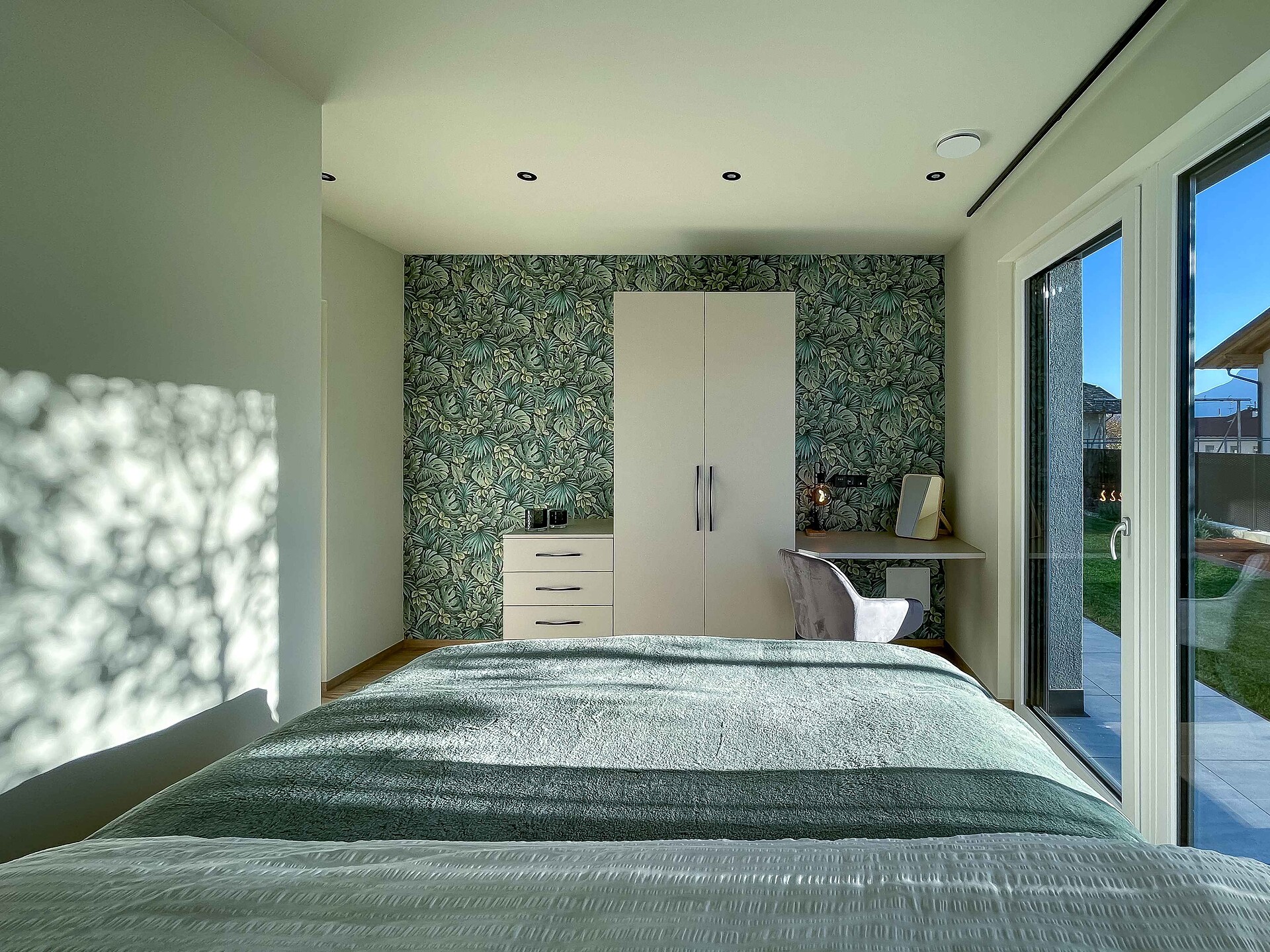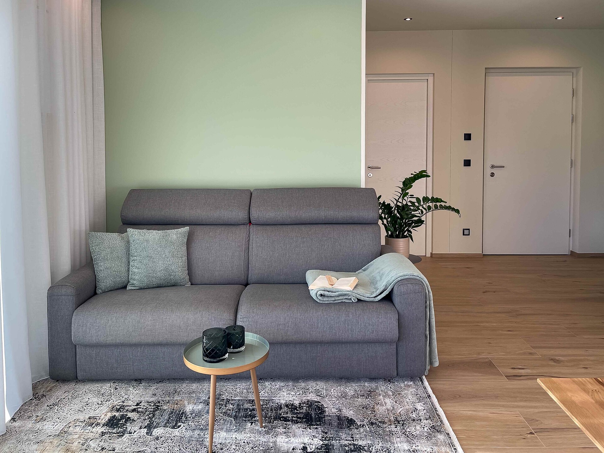 Die Küche ist neben der Grundausstattung (Induktionsherd, Ofen, Kühlschrank mit Gefrierfach, Geschirrspüler, Töpfe, Besteck, Teller und Gläser) mit vielen weiteren Annehmlichkeiten (Wasserkocher, Schneidebrettern, Kaffeemaschinen, Toaster, Eierkocher, Salz und Pfeffer…) ausgestattet. Es gibt einen großen Esstisch, ein bequemes Sofa, welches man auch ausziehen kann, einen Satelliten Flachbild-TV, Bücher sowie Spiele für Groß und Klein. Im Bad sind eine Dusche, Waschmaschine, Handtücher, Handseife, Toilettenpapier sowie Fön vorhanden. Diese Ferienwohnung bietet als besonders Highlight einen zusätzlichen Raum für SmartWorking mit Schreibtisch und mehreren Steckdosen und USB-Anschlüssen. Auf der Terrasse mit Garten gibt es eine große Sitzgelegenheit und Liegestühle.