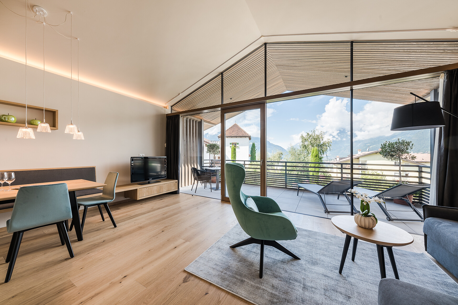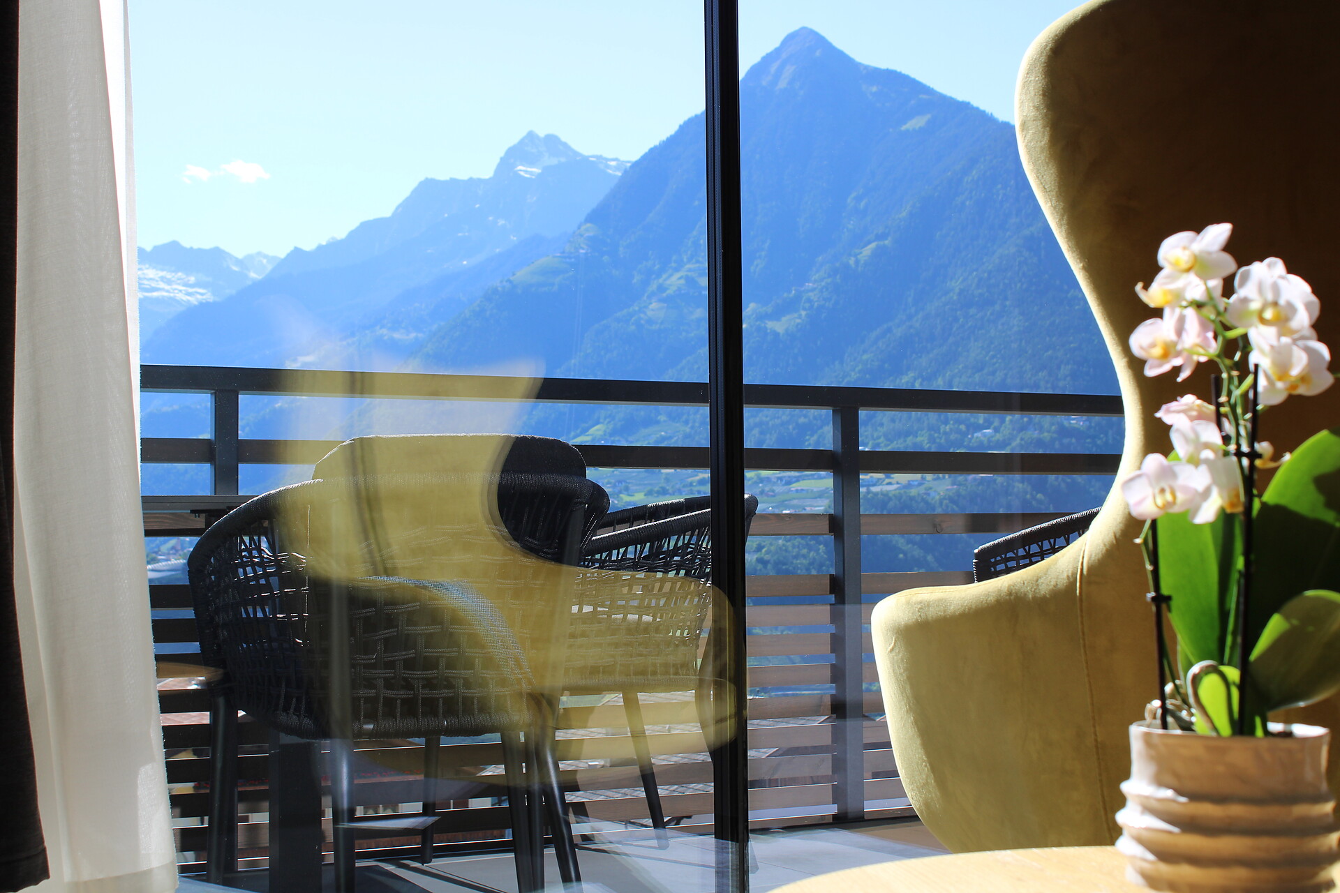 -Rahmenlose Panoramascheiben mit freien Blick auf die umliegenden Berg.