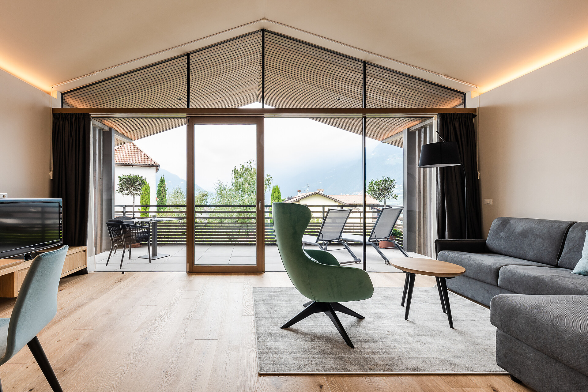 -Rahmenlose Panoramascheiben mit freien Blick auf die umliegenden Berg.
