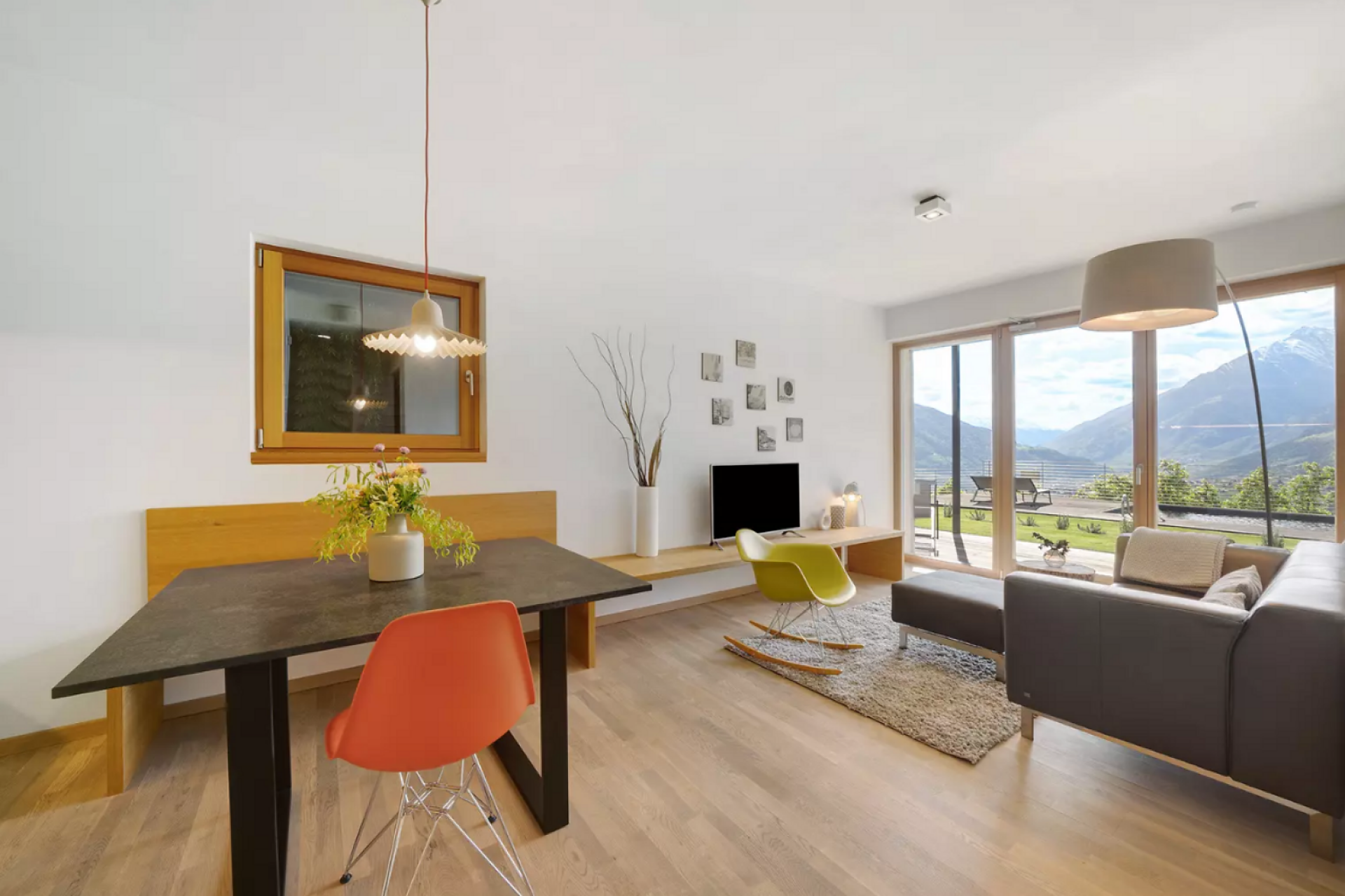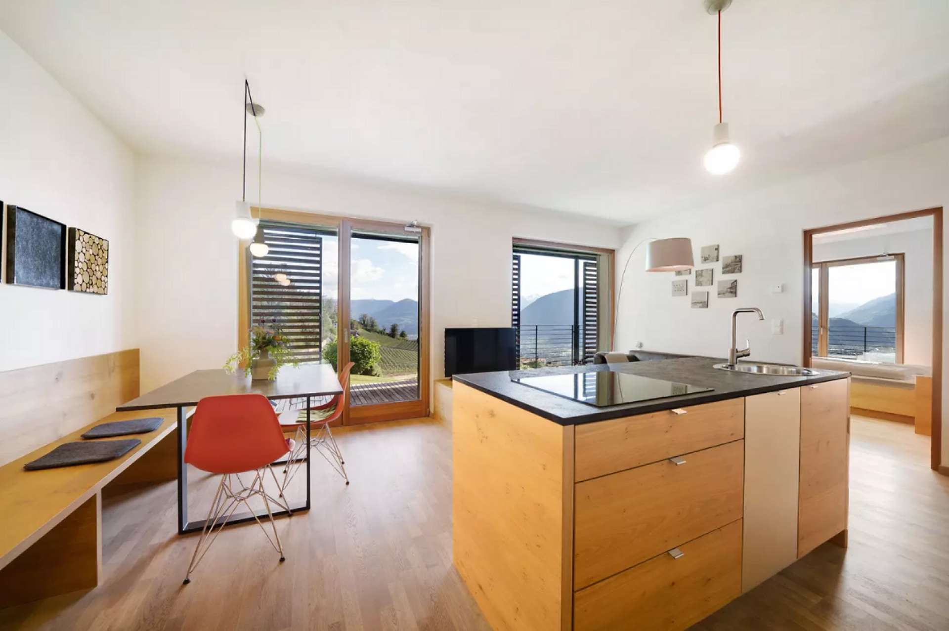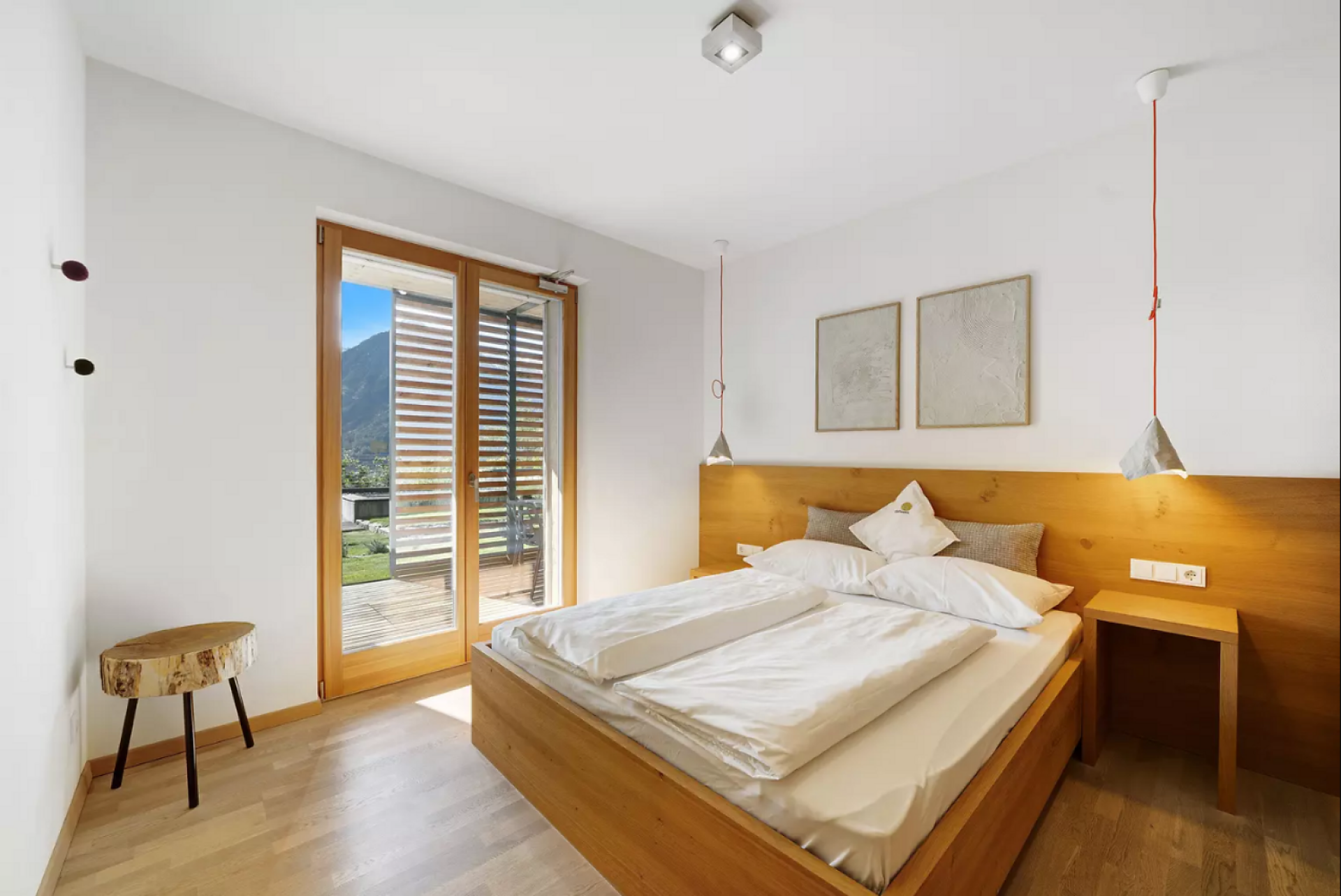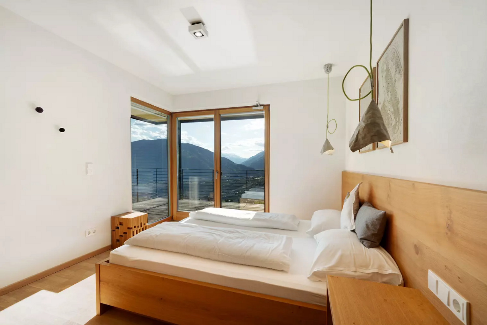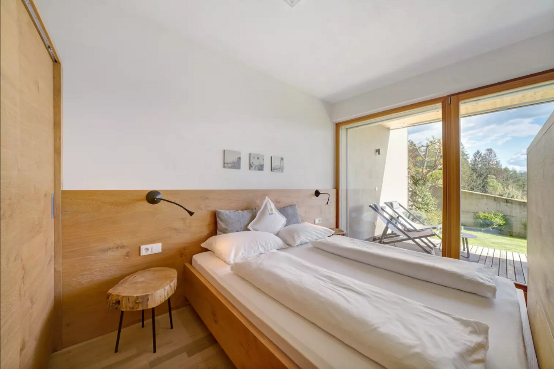 Das moderne Interieur und Exterieur der fünf Suiten wurde in Eichenholz und Lärche gestaltet, große Fensterflächen holen die Natur nach Innen. Tradition, Moderne, Design und Natürlichkeit bilden durch eine architektonische Neuinterpretation eine Einheit und erschaffen einen einladenden Ort der Ruhe und Entschleunigung mit bester Aussicht auf 800 Meter Meereshöhe.