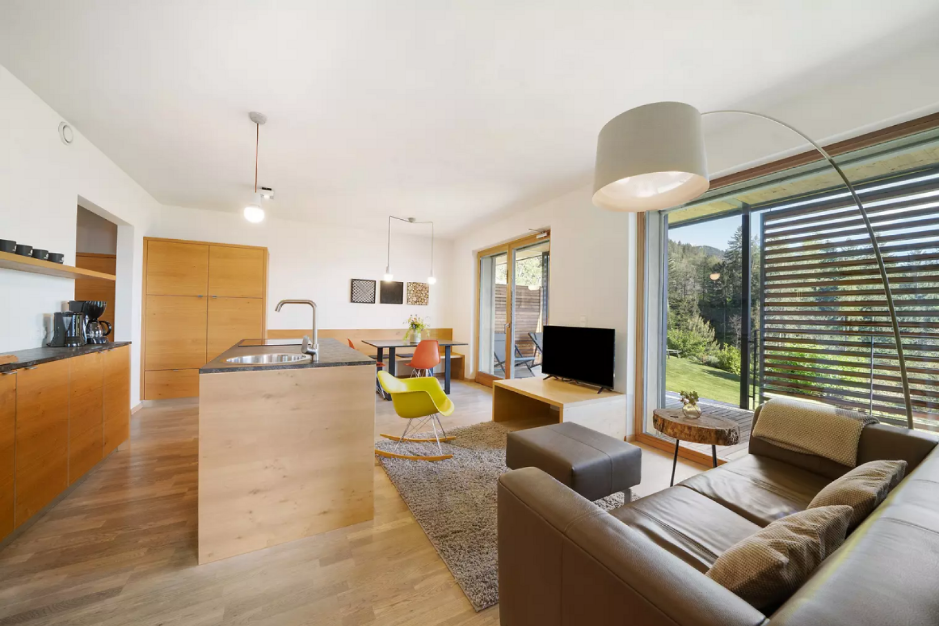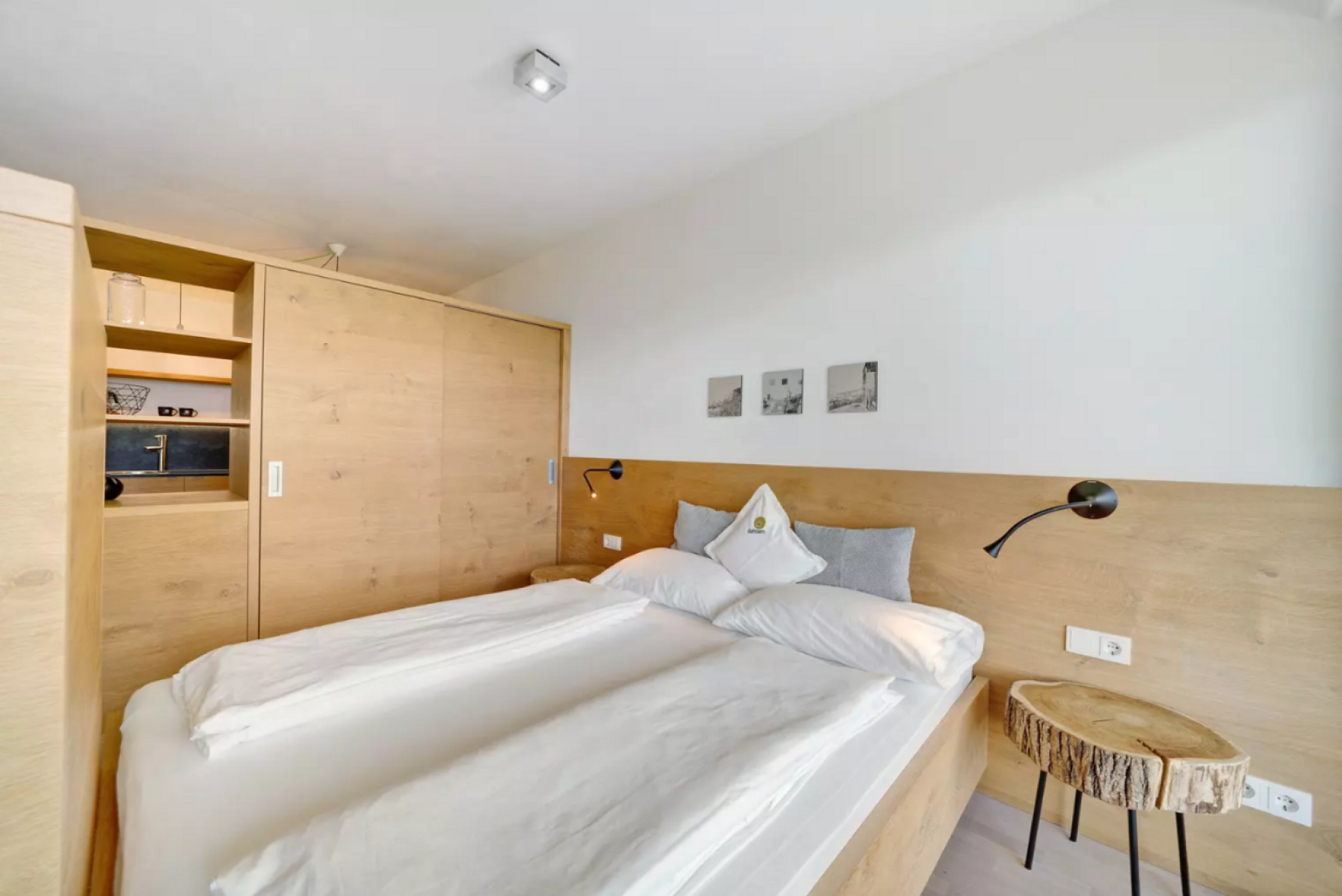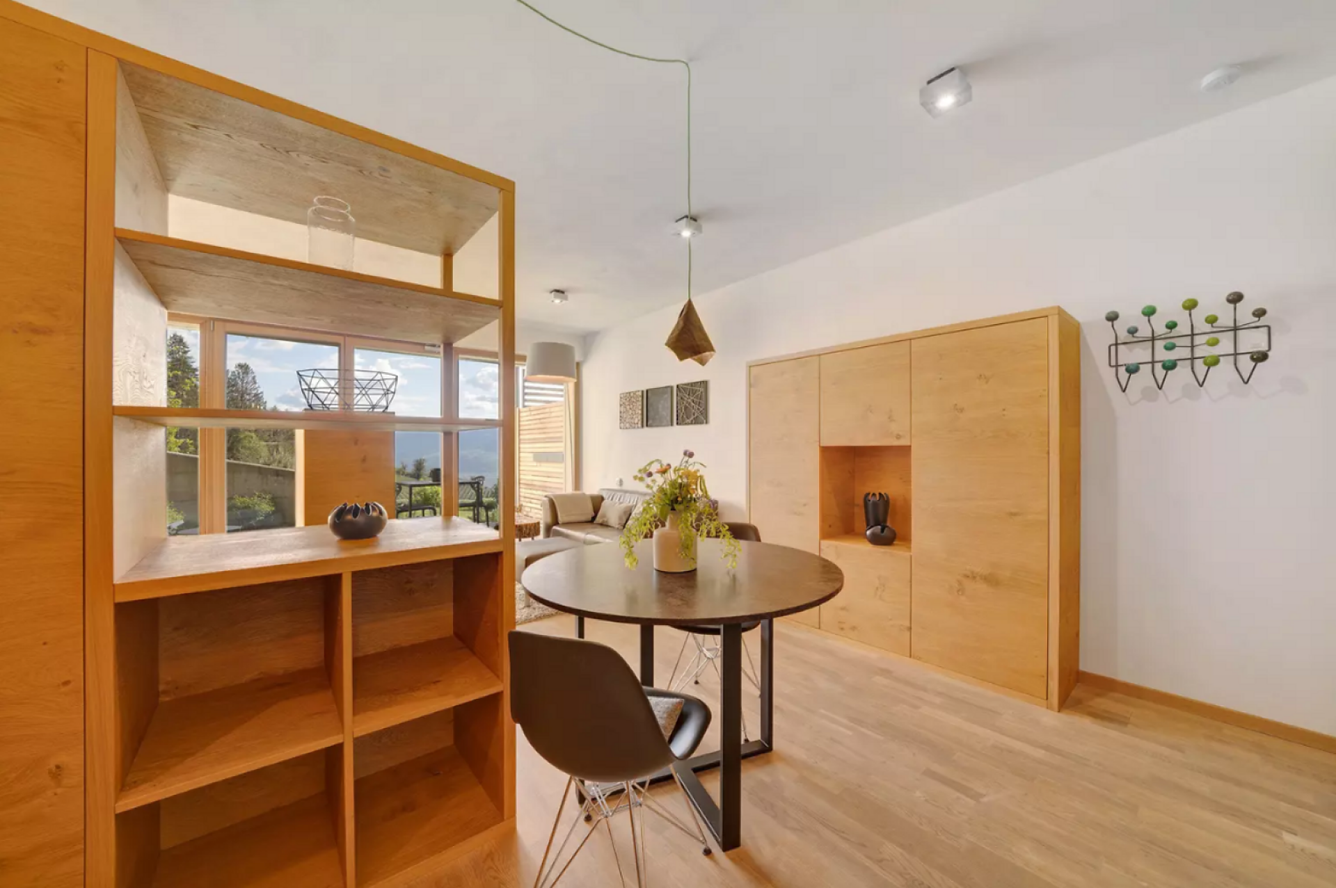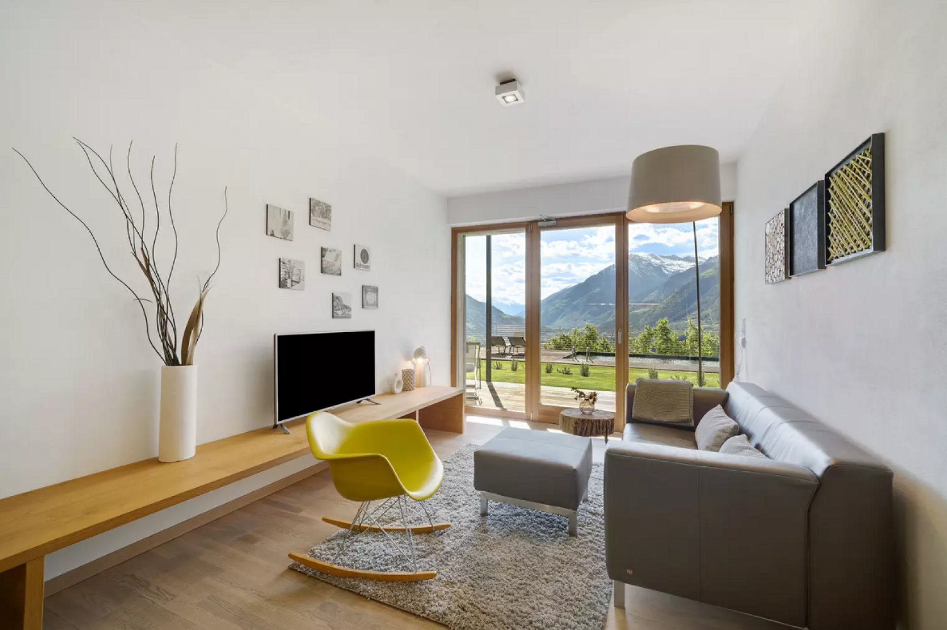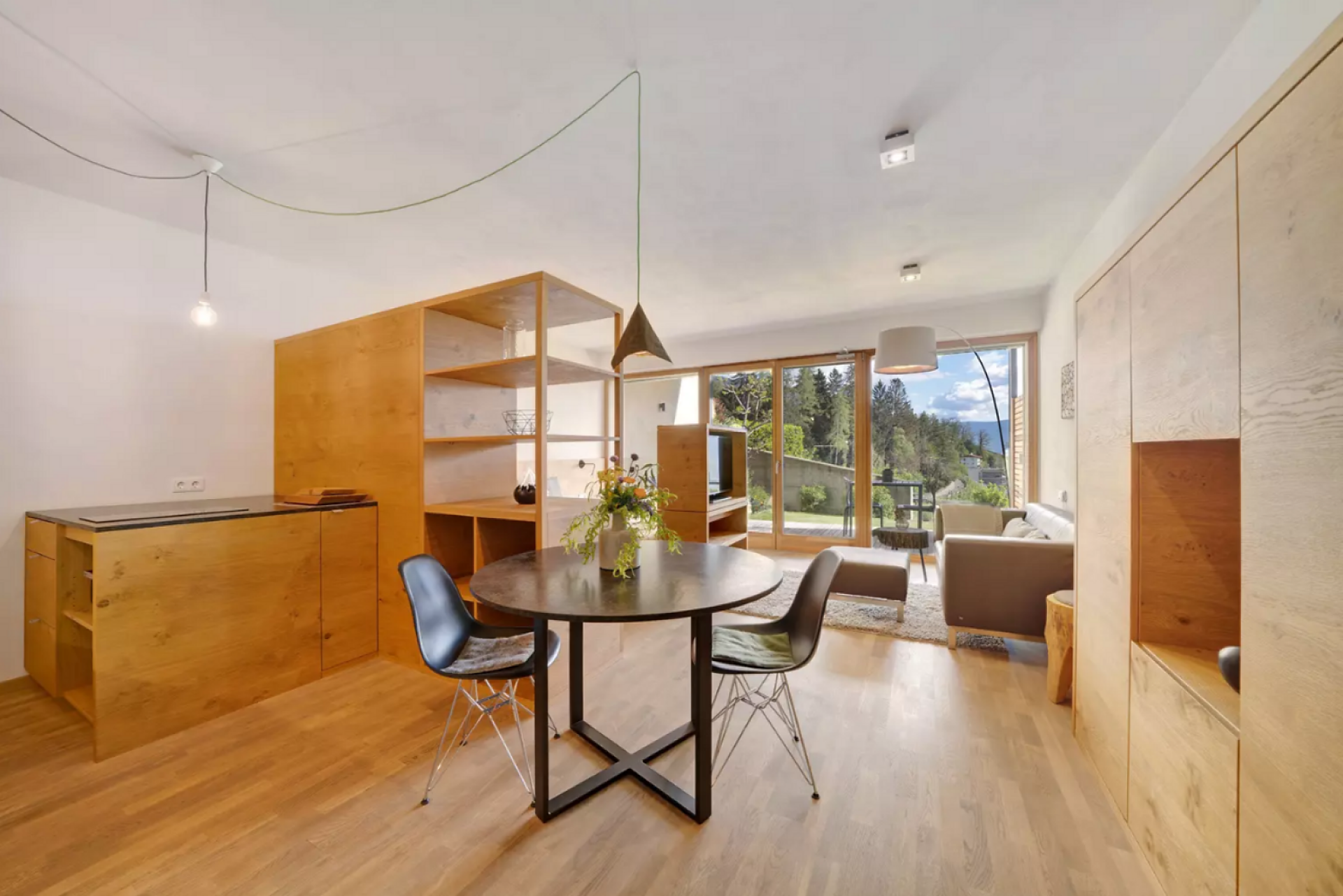 Das moderne Interieur und Exterieur der fünf Suiten wurde in Eichenholz und Lärche gestaltet, große Fensterflächen holen die Natur nach Innen. Tradition, Moderne, Design und Natürlichkeit bilden durch eine architektonische Neuinterpretation eine Einheit und erschaffen einen einladenden Ort der Ruhe und Entschleunigung mit bester Aussicht auf 800 Meter Meereshöhe.