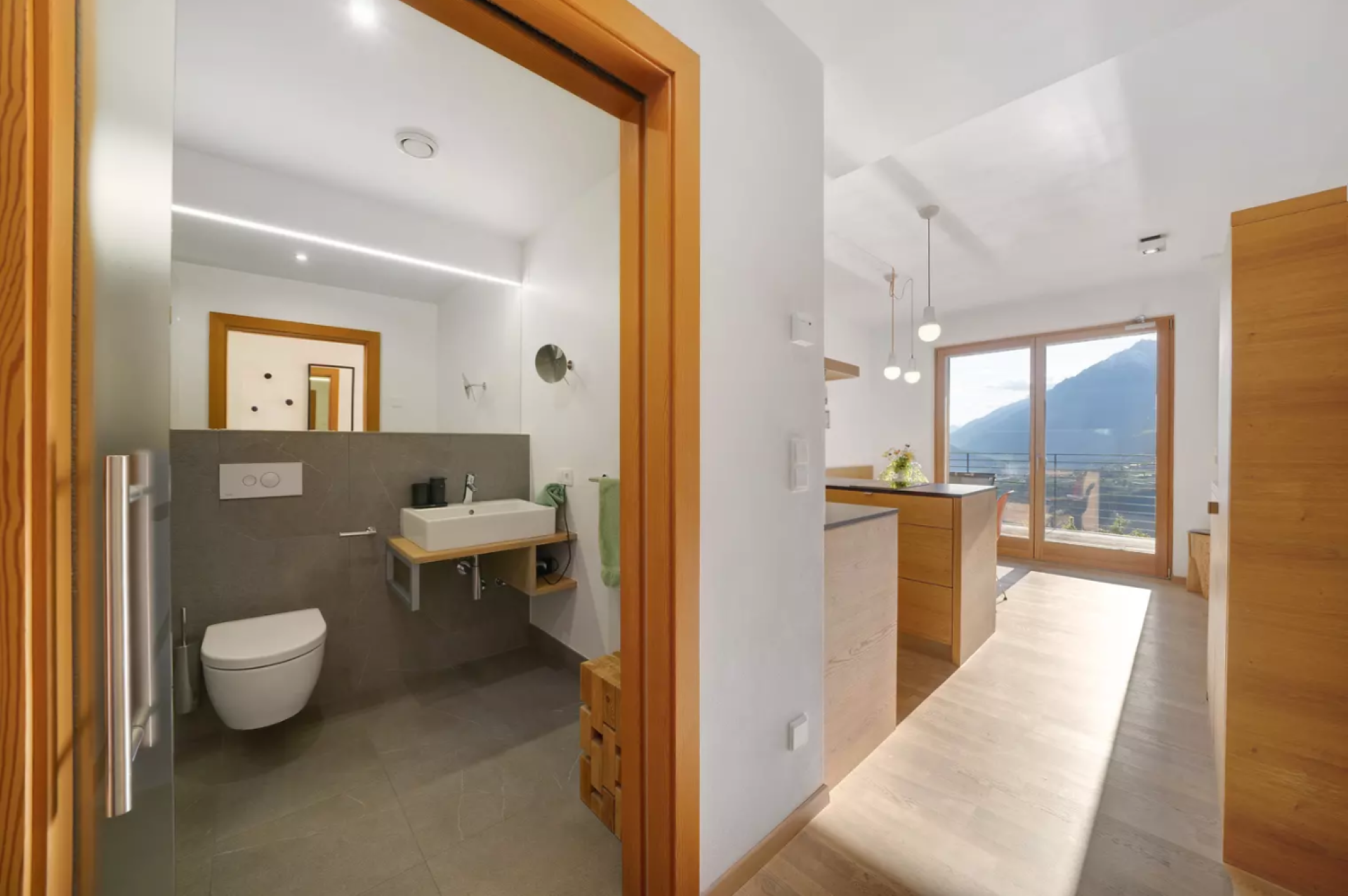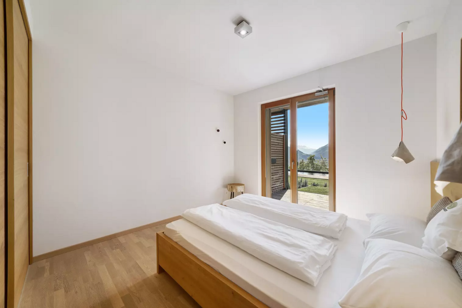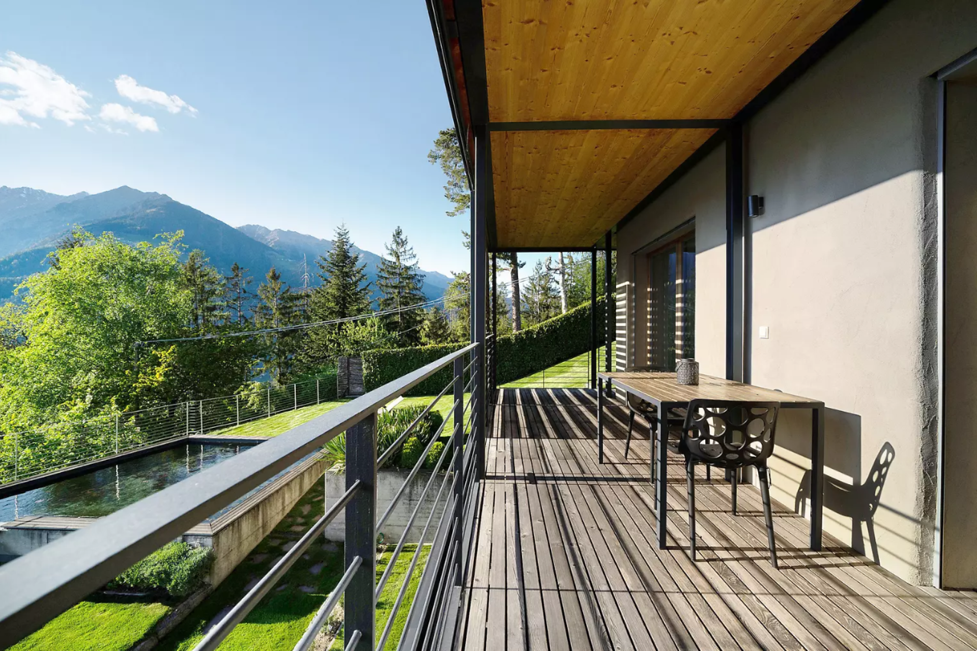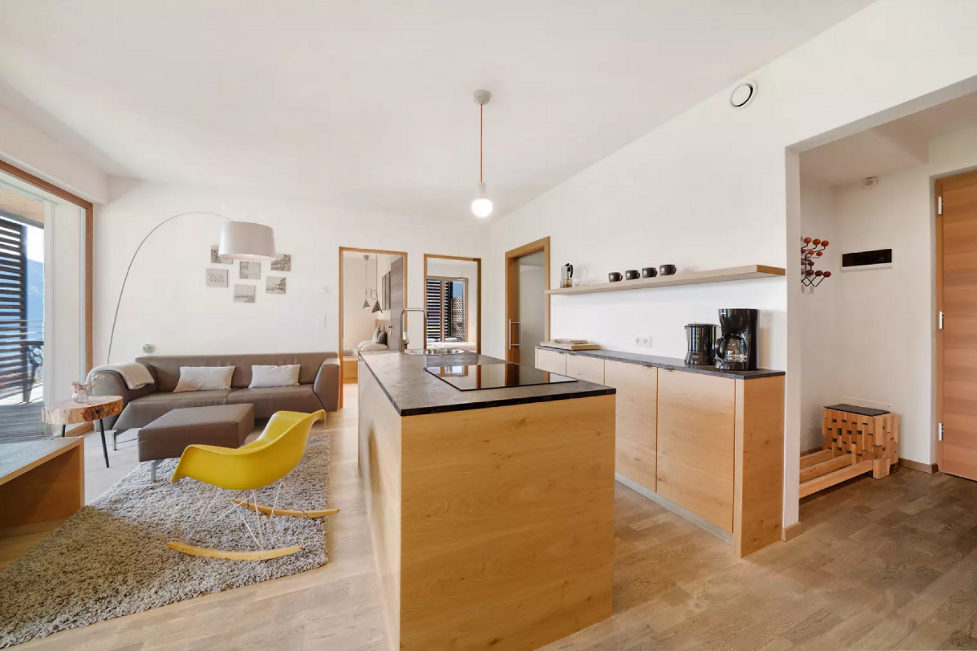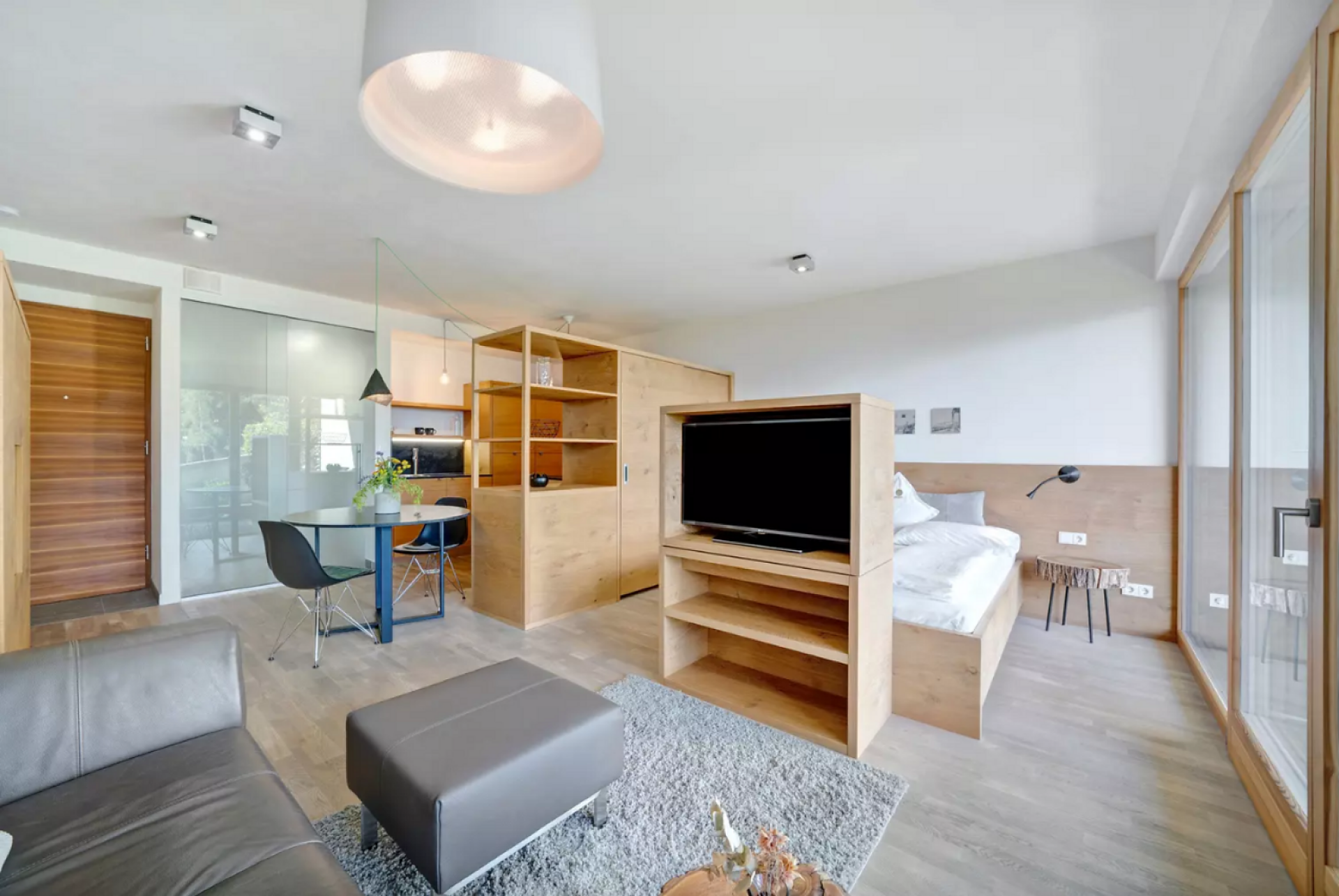 Das moderne Interieur und Exterieur der fünf Suiten wurde in Eichenholz und Lärche gestaltet, große Fensterflächen holen die Natur nach Innen. Tradition, Moderne, Design und Natürlichkeit bilden durch eine architektonische Neuinterpretation eine Einheit und erschaffen einen einladenden Ort der Ruhe und Entschleunigung mit bester Aussicht auf 800 Meter Meereshöhe.