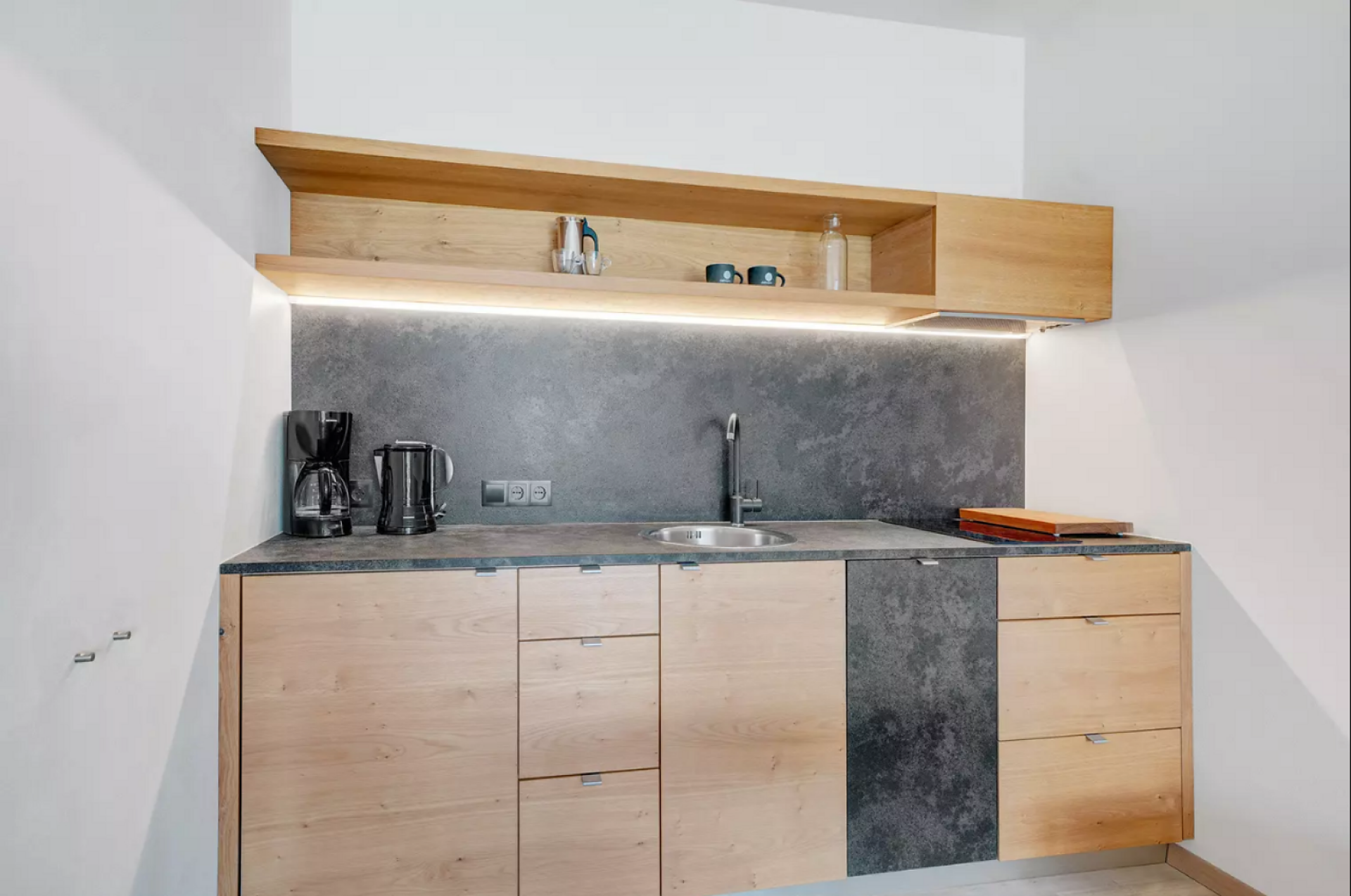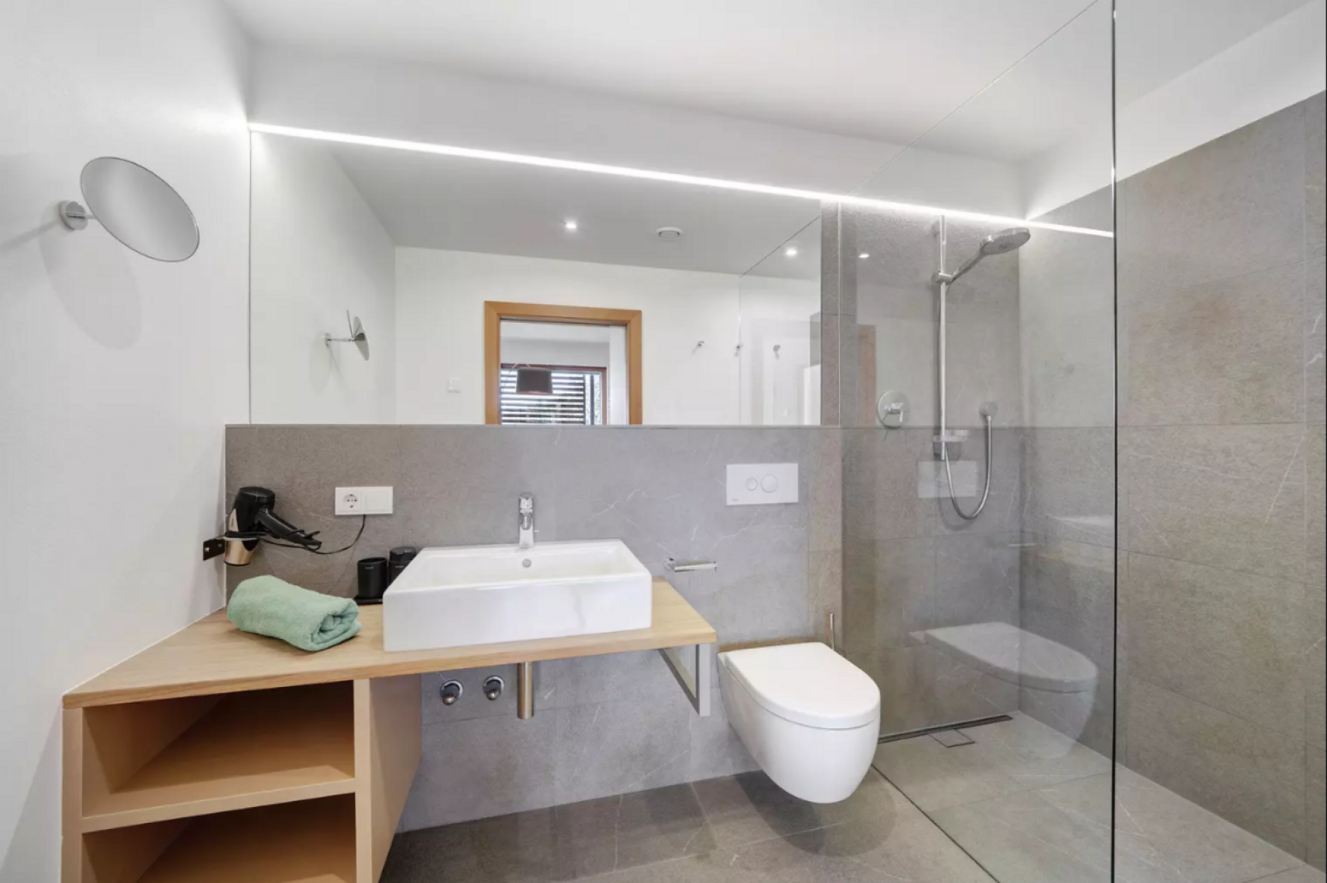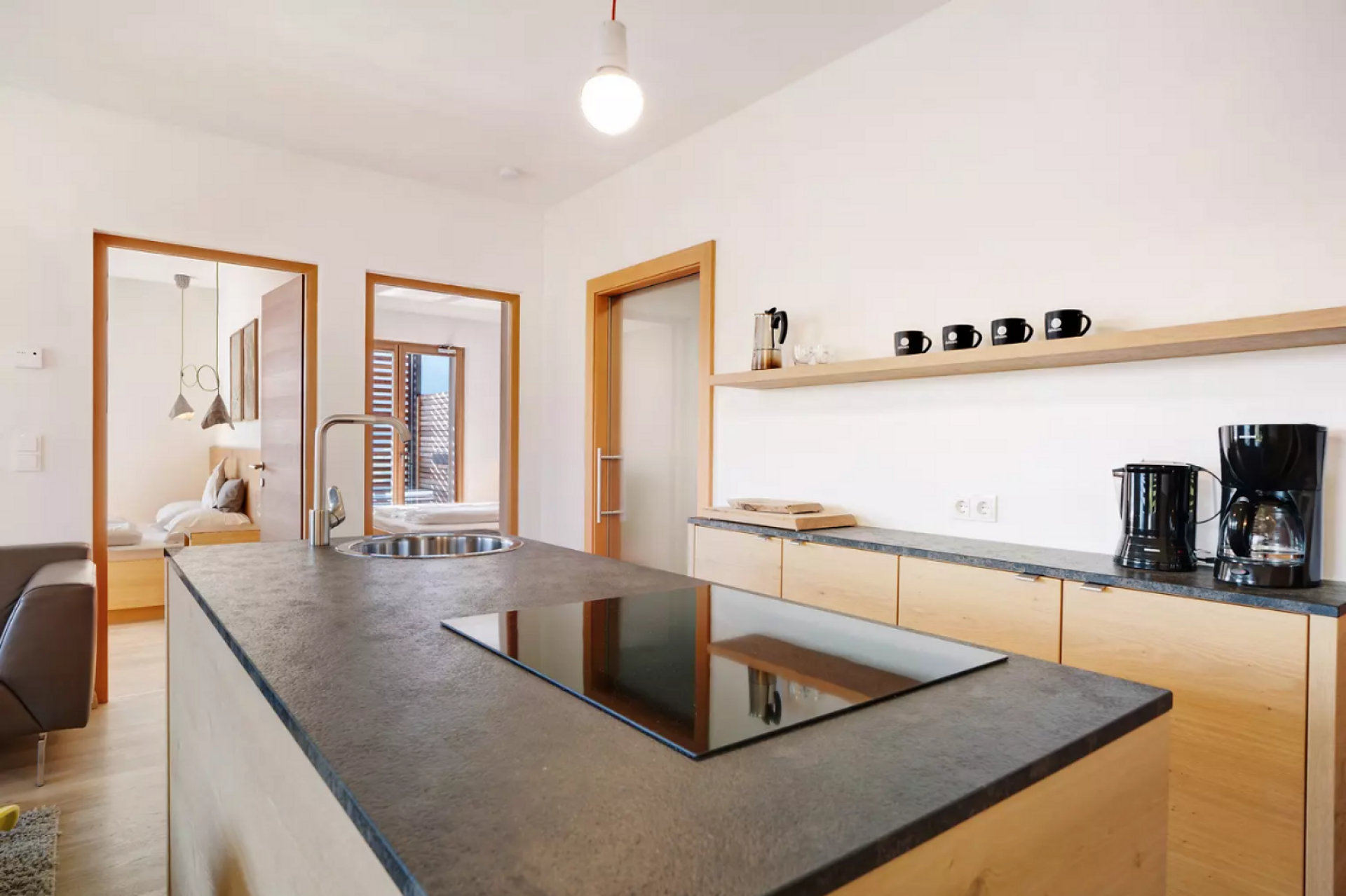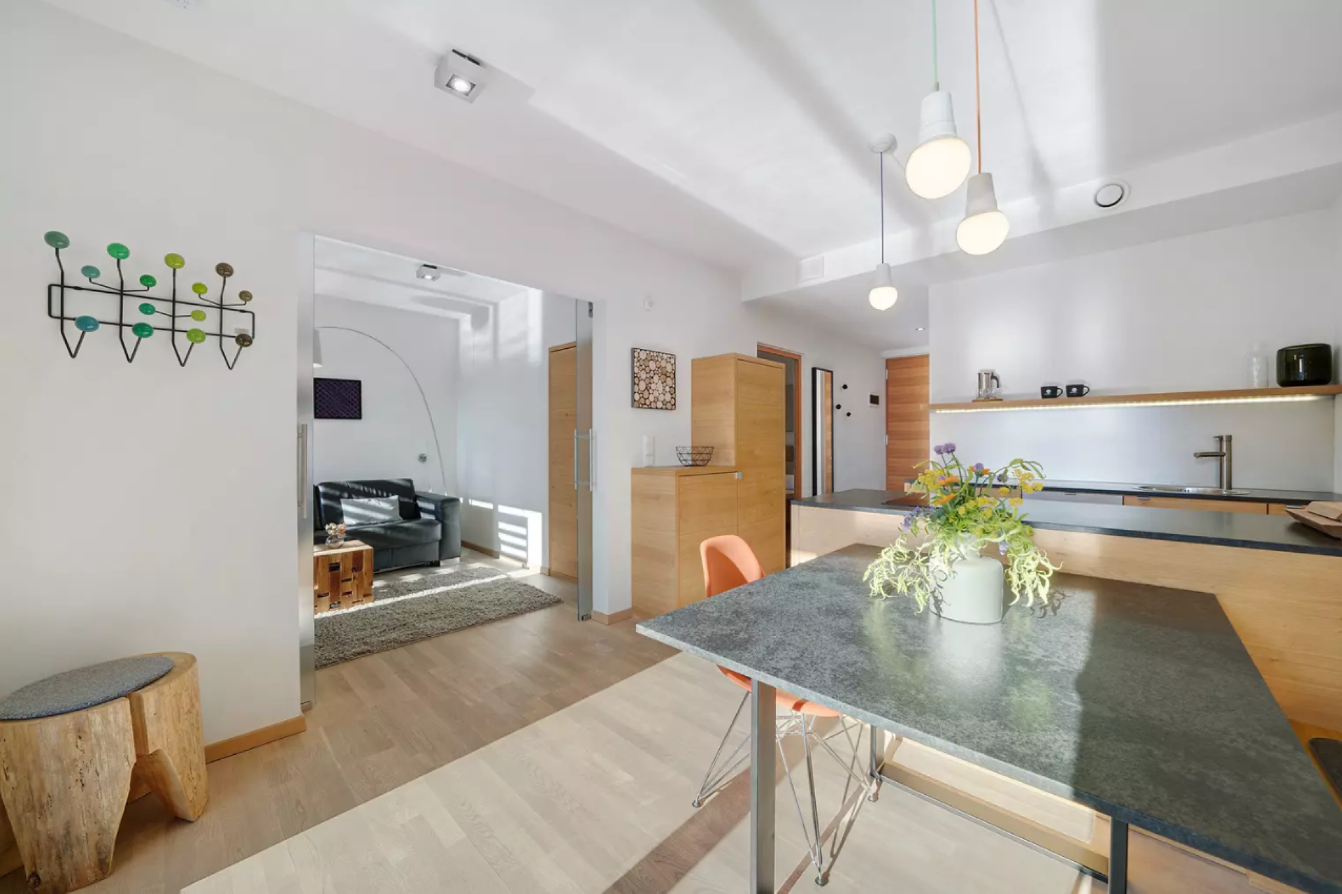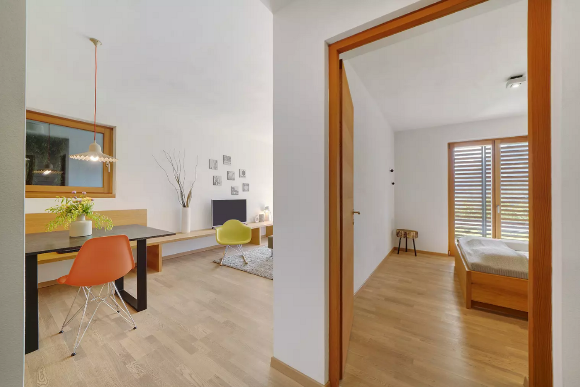 Das moderne Interieur und Exterieur der fünf Suiten wurde in Eichenholz und Lärche gestaltet, große Fensterflächen holen die Natur nach Innen. Tradition, Moderne, Design und Natürlichkeit bilden durch eine architektonische Neuinterpretation eine Einheit und erschaffen einen einladenden Ort der Ruhe und Entschleunigung mit bester Aussicht auf 800 Meter Meereshöhe.