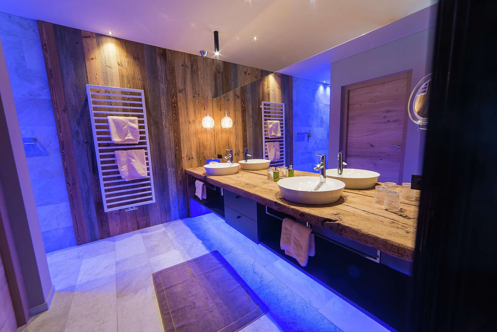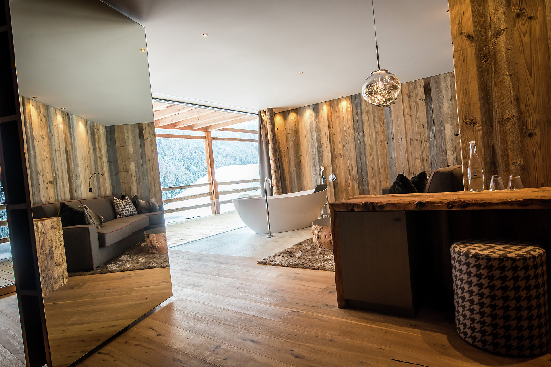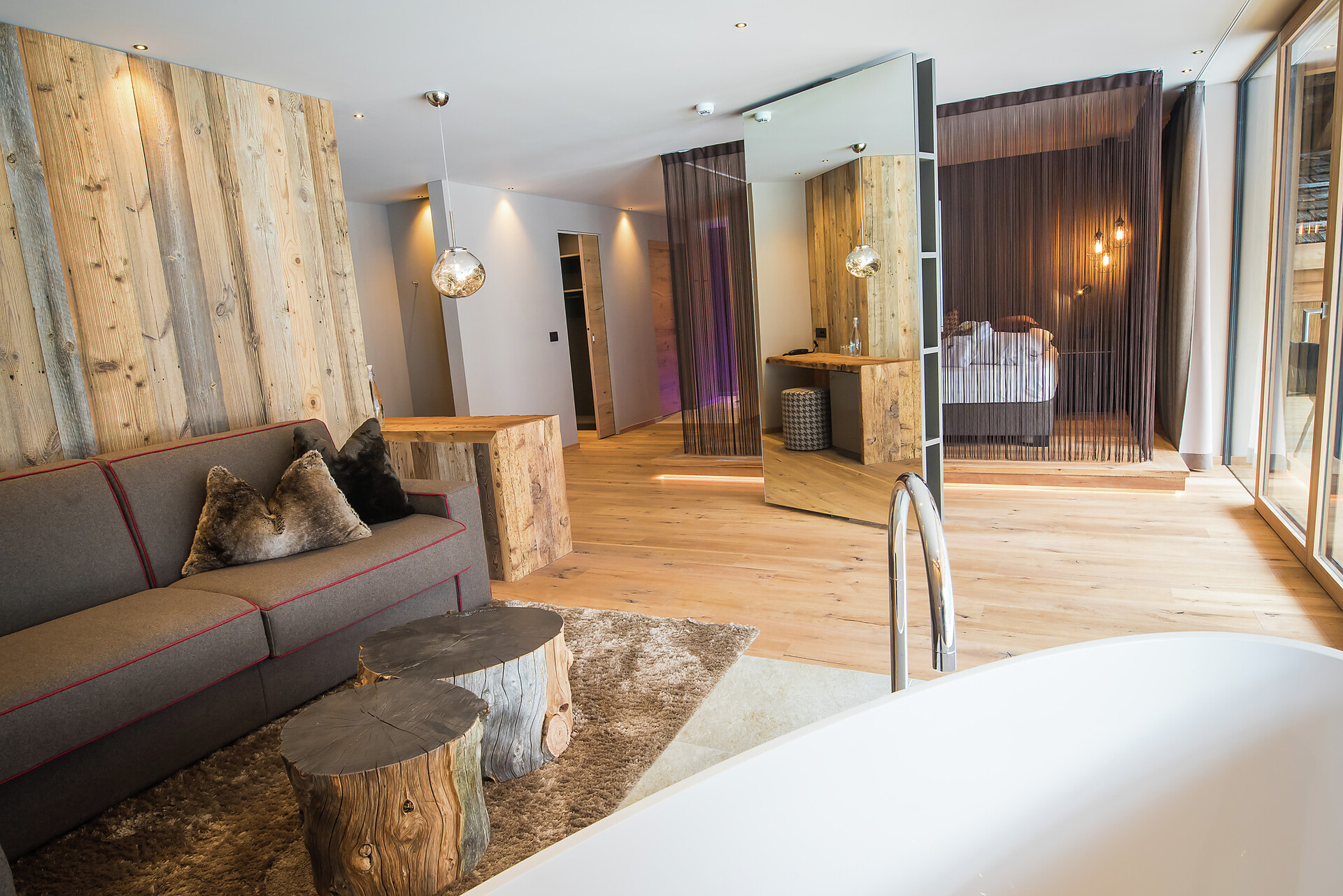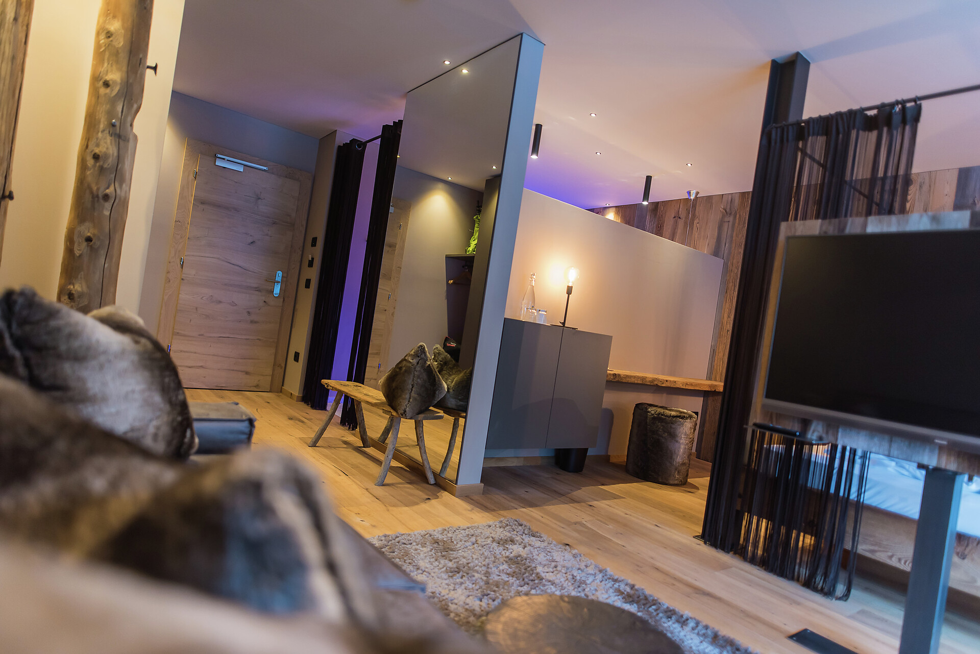 Süd- und Nordbalkon, finnische Sauna, Infrarotkabine, Whirlpool im Freien, Kamin, 2 getrennte Schlafräume, 2 Bäder, abgetrenntes WC, Dusche und Wanne, Bidet, Bademantel, Rucksack mit Wanderstöcken und Wanderkarte, begehbarer Kleiderschrank, Fön, 2 Flat TV’s, Minibar, Safe, Holzboden.