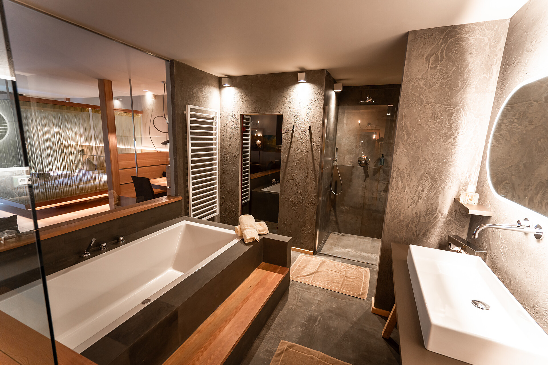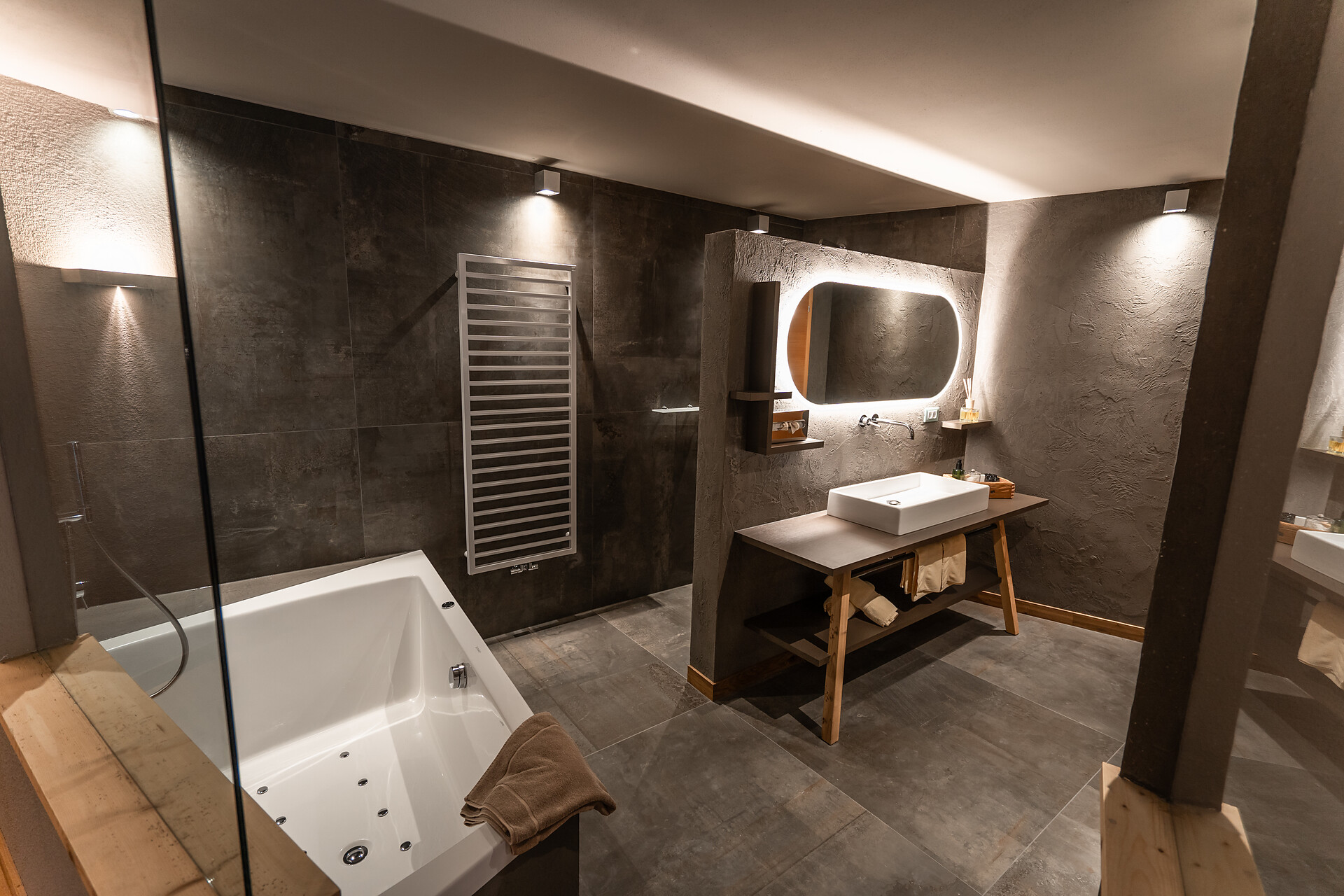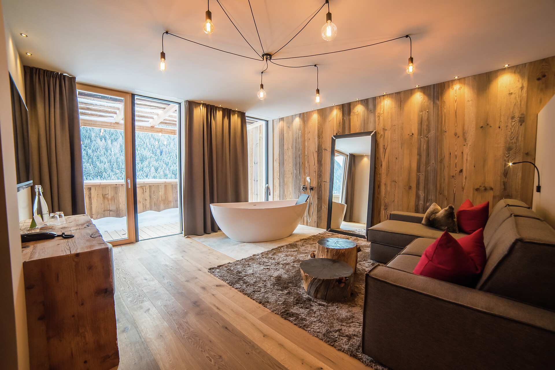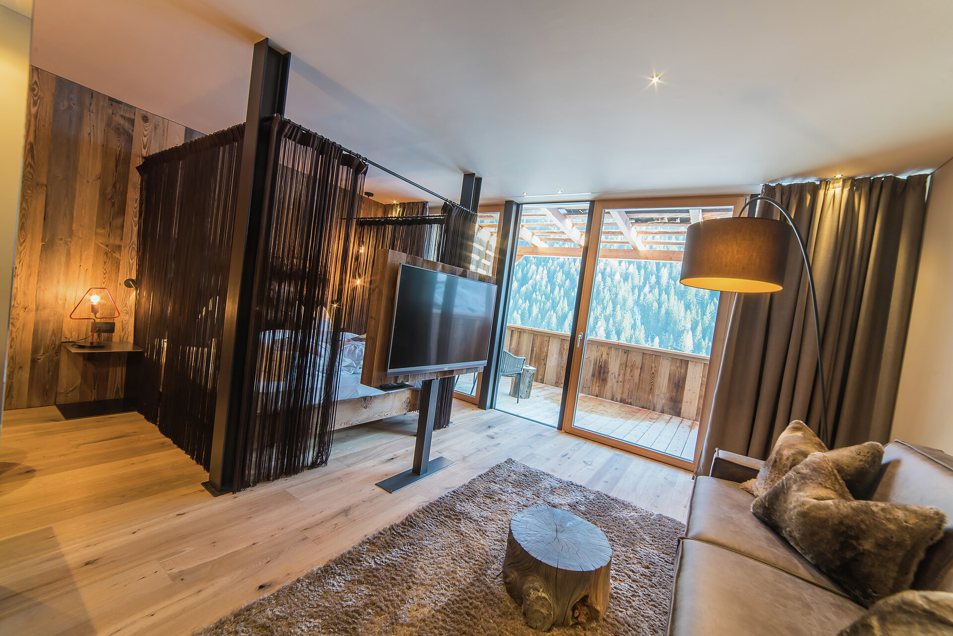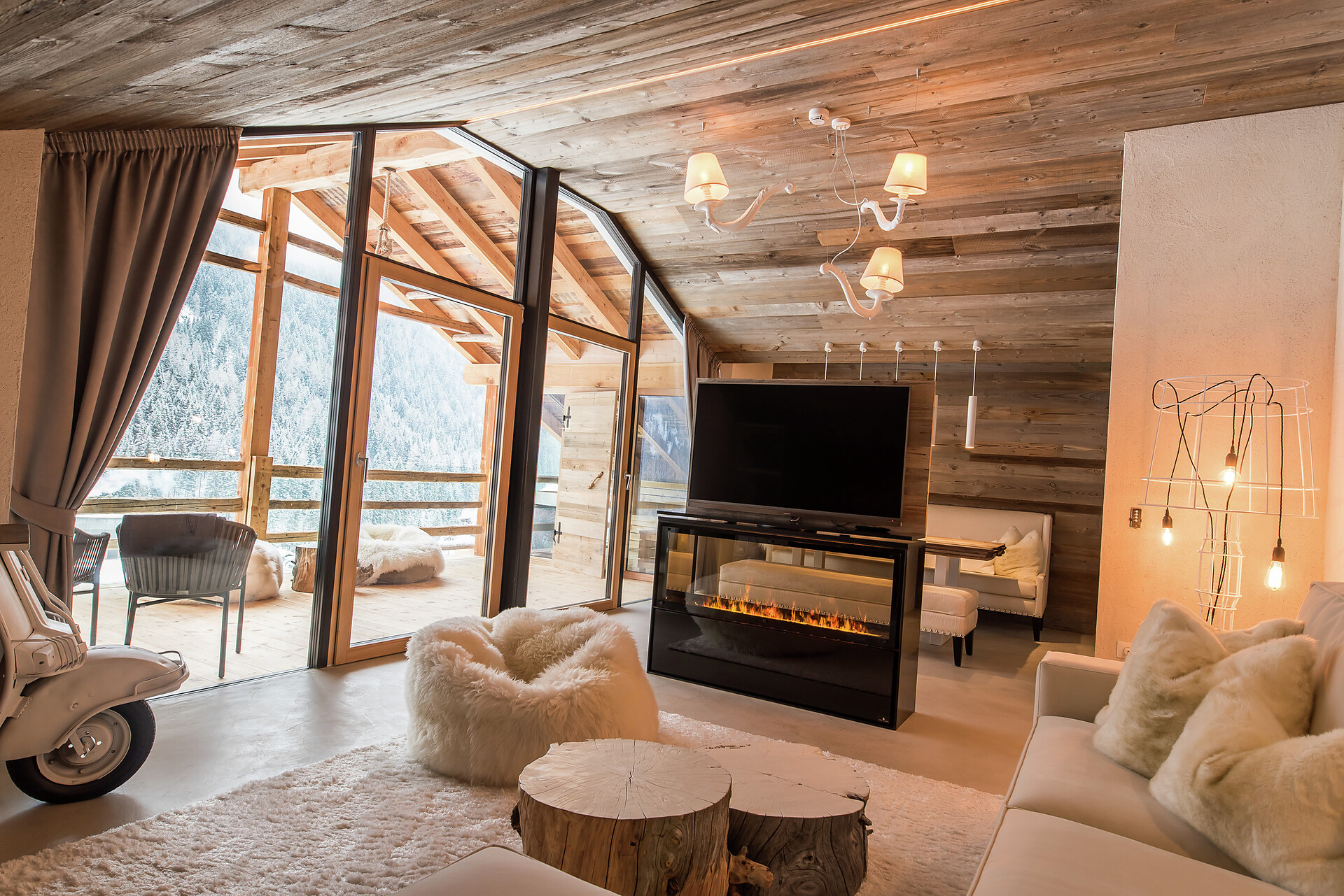 Süd- und Nordbalkon, finnische Sauna, Infrarotkabine, Whirlpool im Freien, Kamin, 2 getrennte Schlafräume, 2 Bäder, abgetrenntes WC, Dusche und Wanne, Bidet, Bademantel, Rucksack mit Wanderstöcken und Wanderkarte, begehbarer Kleiderschrank, Fön, 2 Flat TV’s, Minibar, Safe, Holzboden.