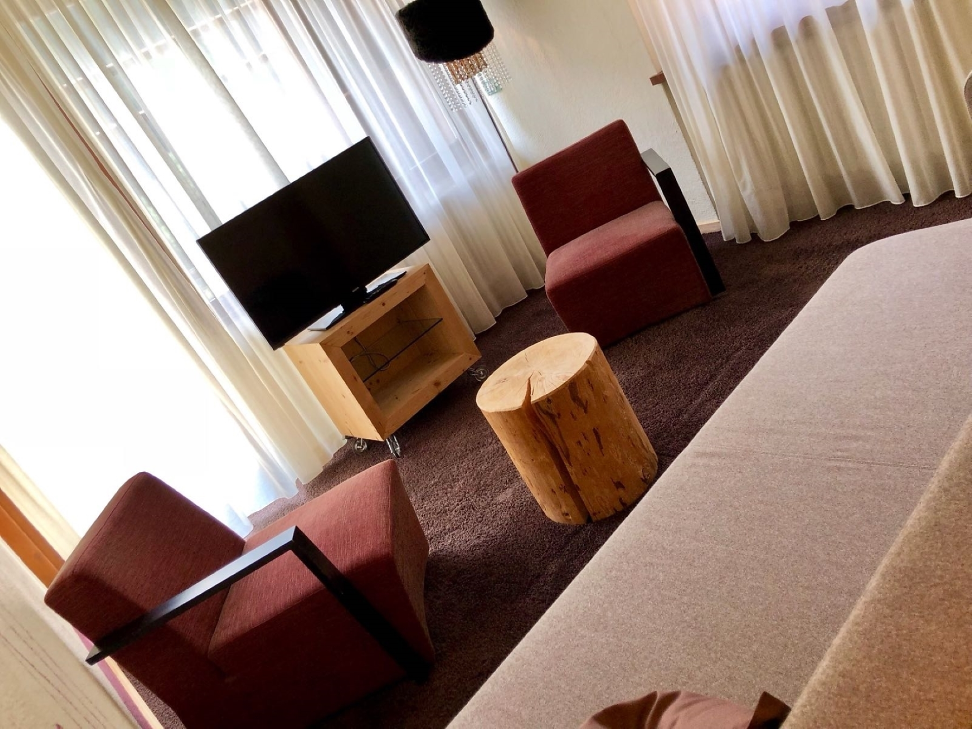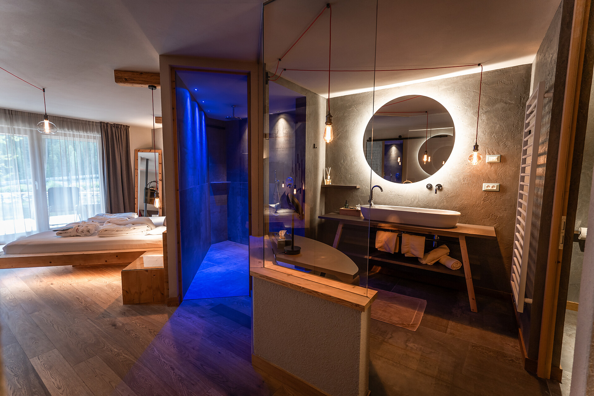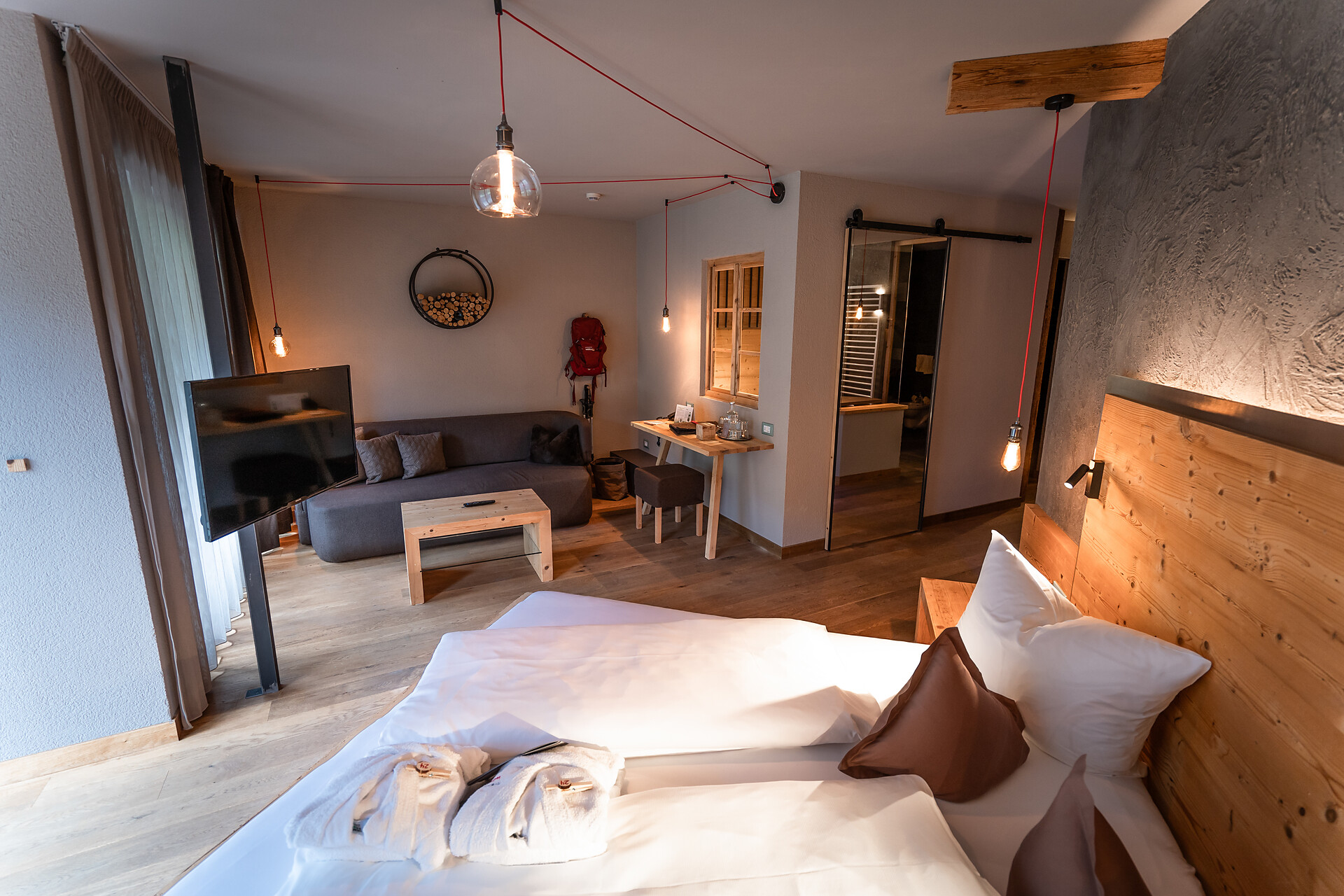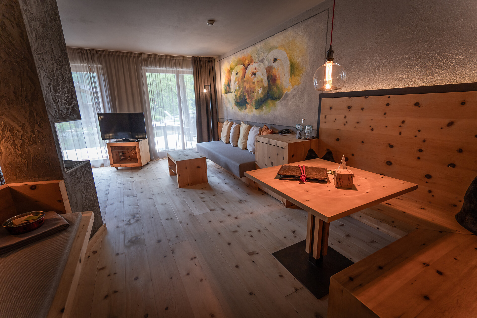 Süd- und Nordbalkon, finnische Sauna, Infrarotkabine, Whirlpool im Freien, Kamin, 2 getrennte Schlafräume, 2 Bäder, abgetrenntes WC, Dusche und Wanne, Bidet, Bademantel, Rucksack mit Wanderstöcken und Wanderkarte, begehbarer Kleiderschrank, Fön, 2 Flat TV’s, Minibar, Safe, Holzboden.