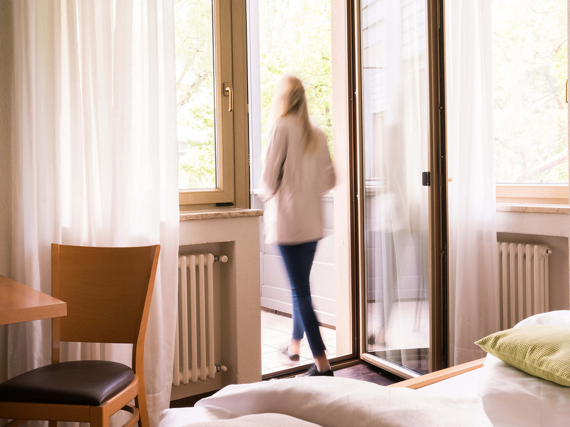 ein modernes und Licht durchflutet Superior Doppelzimmer (25 m²) mit King Size Doppelbett und Doppel-Schlafcouch, kleiner Loggia nach Süden, Tageslichtbad mit großer Regendusche, WC, Bidet, Kosmetikspiegel und Föhn, Sat-TV mit Flachbildschirm, Safe in Laptop Größe, WIFI Internet, Telefon, Kühlschrank und Wasserkocher