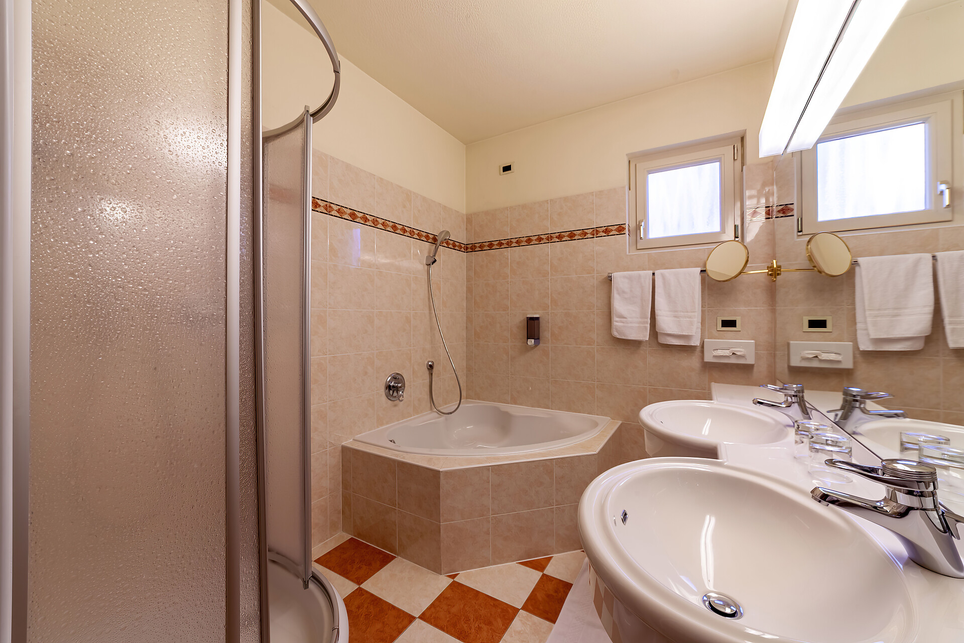 ca. 50 m2 mit zwei Doppelbetten,Bad und Dusche, WC getrennt, Fön, Radio, TV, Kochgelegenheit, Balkon (untere Stockwerke).