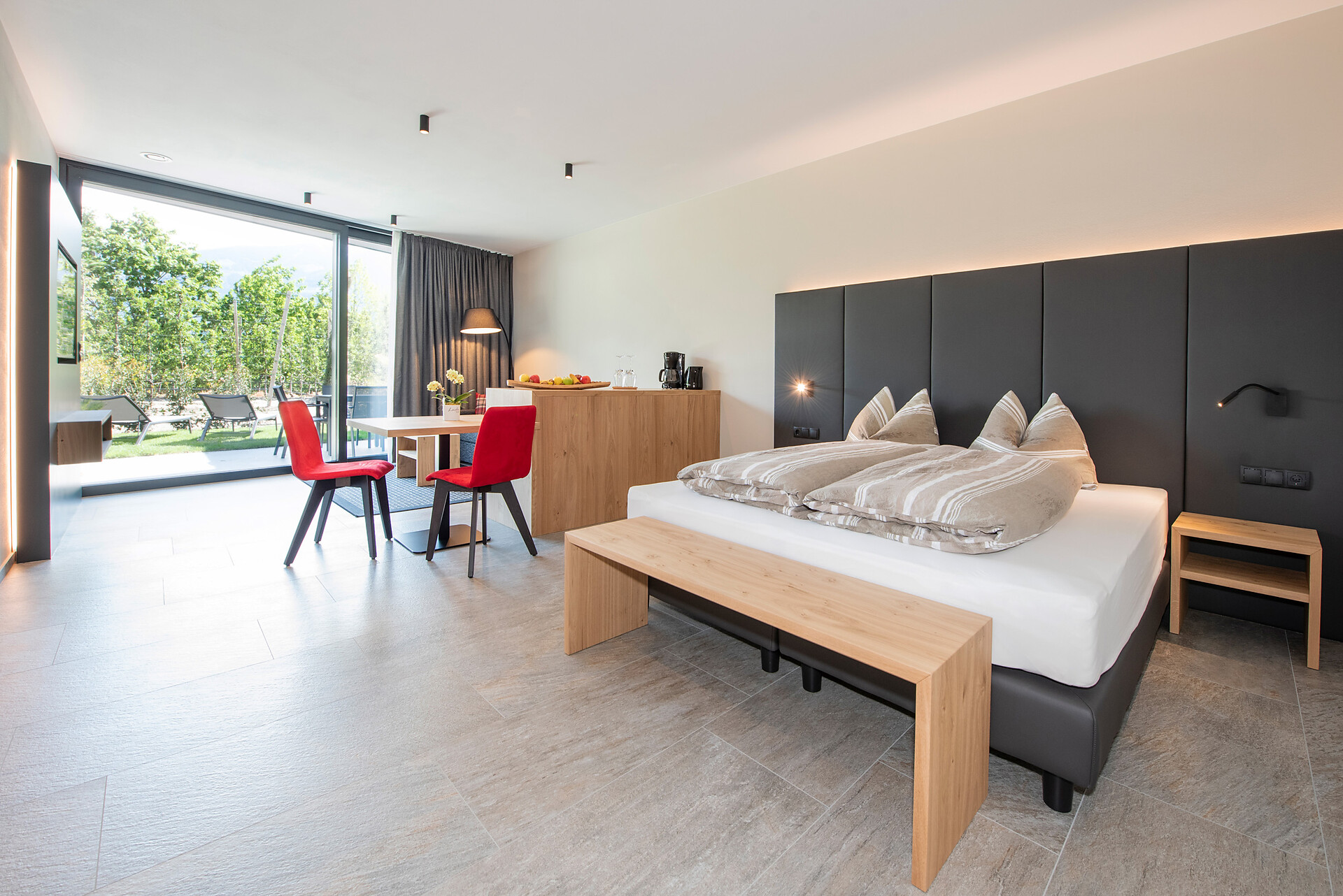 Einzelbett, Doppelbett, Zustellbett, Babybett, Doppelschlafcouch, Terrasse, Garten, Barrierefrei, Separater Wohnraum, Bettwäsche vorhanden, Safe, Nichtraucher-Apartment, 2 oder mehr Schlafzimmer, Wohnküche, Kaffeemaschine, Geschirrspülmaschine, Elektroherd, Mikrowelle, Geschirrausstattung, Kochfeld, Wasserkocher, Dusche/Bad, Bidet, Haarfön, Bademantel, Badetücher, TV, Satellit/Kabel, WLAN, Reinigung auf Anfrage, Endreinigung inbegriffen, Dependance, Panoramablick
