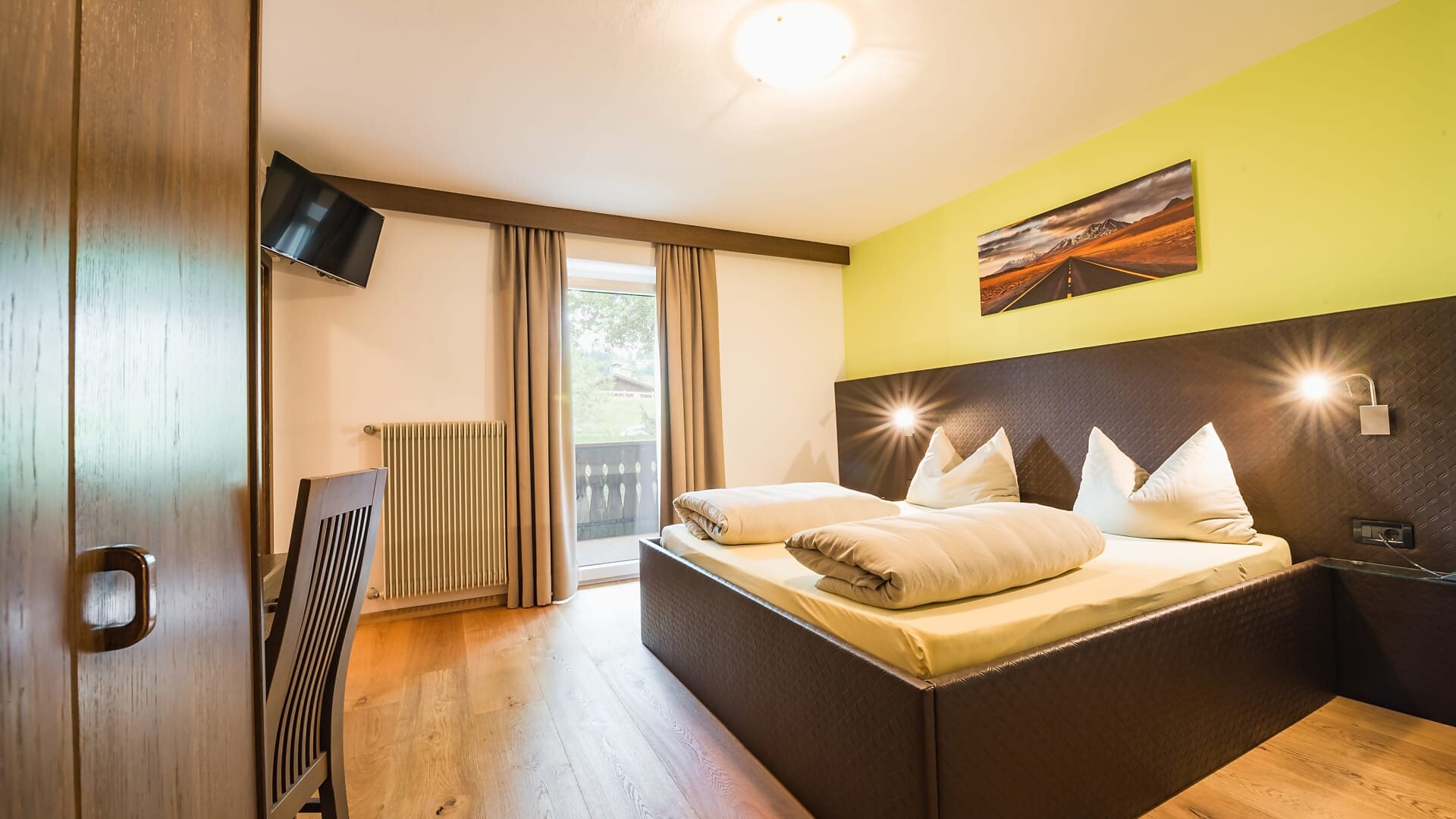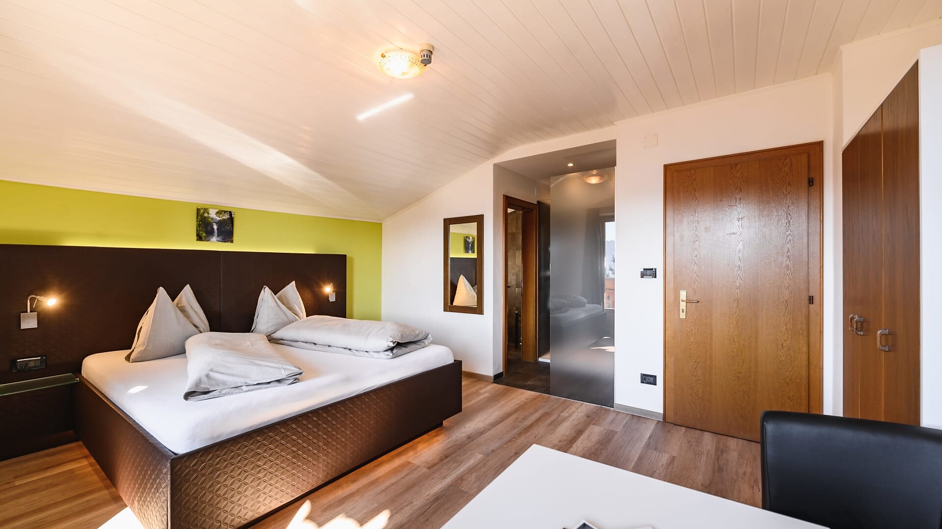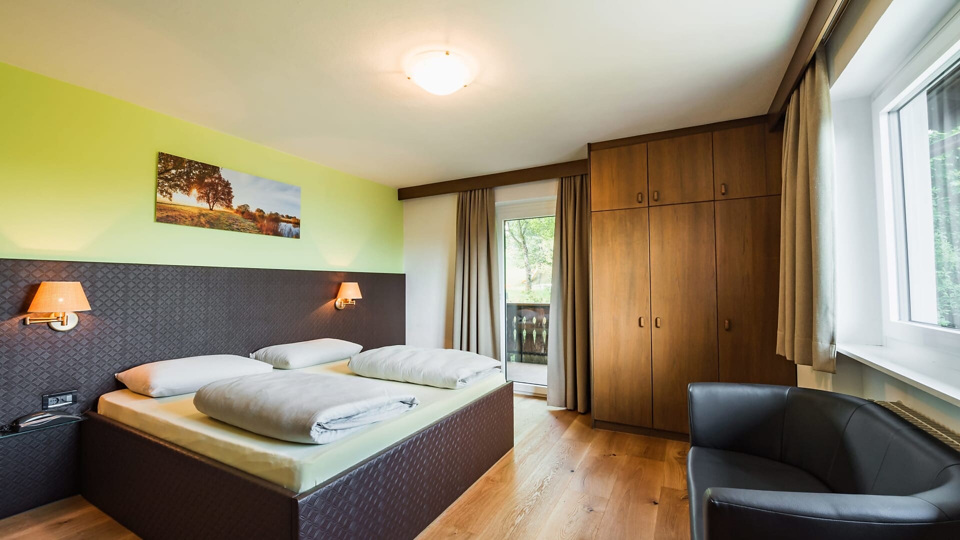 Doppelzimmer, Doppelbett, Bettsofa, Balkon, Zimmer mit Verbindungstür, Nichtraucherzimmer, Dusche / Bad, Haarfön, TV, WLAN, Haupthaus