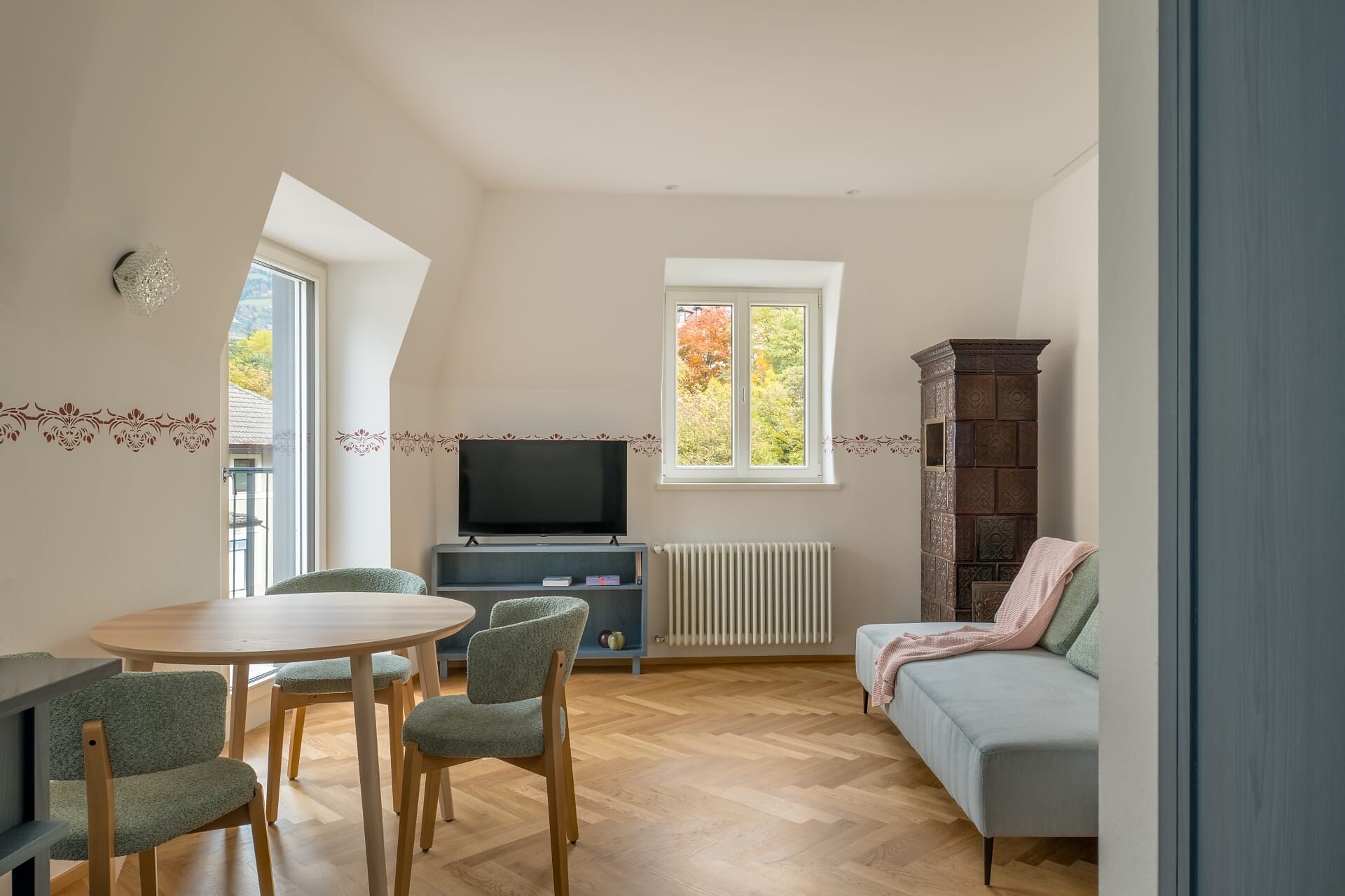 Zwei liebevoll sanierte Ferienwohnungen mit hochwertiger Ausstattung in einer eleganten Jugendstil-Villa erwarten Sie im Herzen von Meran. Die beiden Unterkünfte liegen im ältesten Stadtviertel und bieten die perfekte Ausgangslage um Merans Kultur und Kulinarik zu erkunden oder bei Spaziergängen das mediterrane Flair zu genießen.