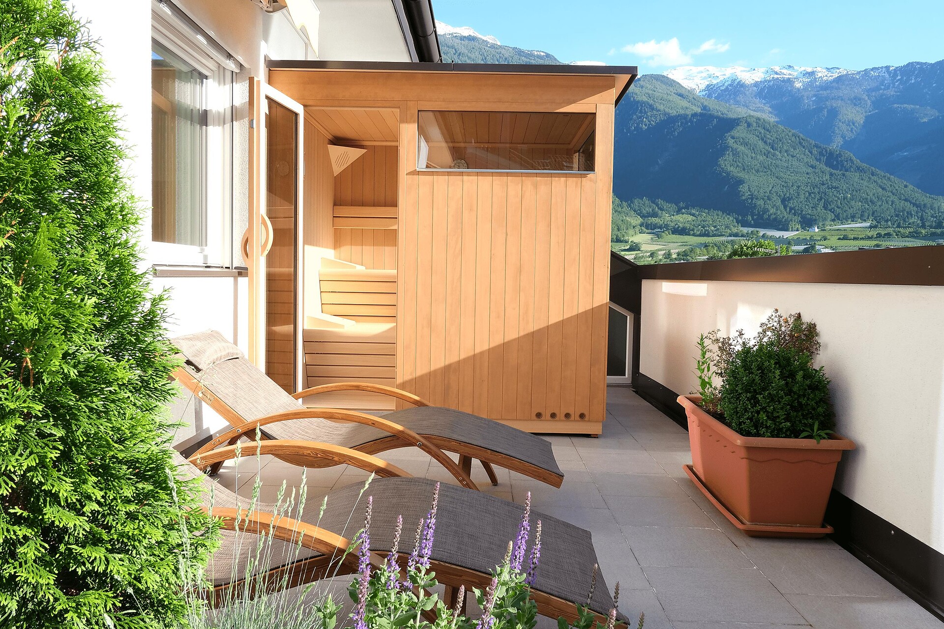 Die moderne, sehr helle Neubauwohnung im Dachgeschoss verfügt über eine Terrasse mit privater Außensauna, Sonnenliegen und eigenem Grill mit Essbereich. Ein Aufzug bringt Sie von der Tiefgarage auf die Wohnungsetage.