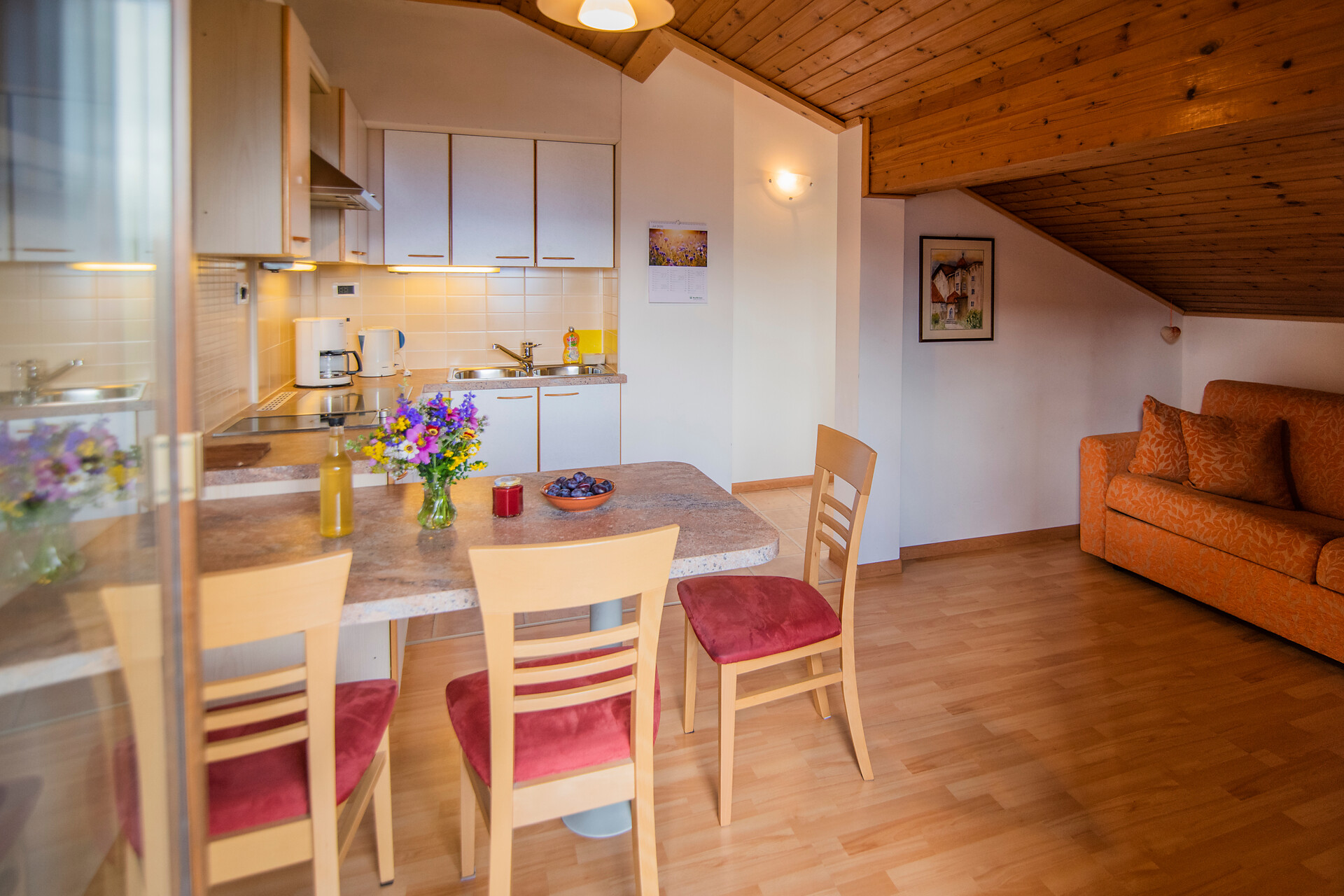 Wir bieten 2 Ferienwohnungen für 2-3 Personen mit schönem Ausblick. Die Wohnungen sind hell, gemütlich und auf den zwei Balkonen können Sie die Sonnenstrahlen genießen. Wir sind ein idealer Ausgangsort für unzählige Wandermöglichkeiten, Spazier- und Themenwege sowie eine Vielzahl an Sehenswertem. Das Auto können Sie bei uns getrost stehen lassen. Zahlreiche Einkaufsmöglichkeiten, alle wichtigen Infrastrukturen sowie diverse Bushaltestellen sind in unmittelbarer Nähe vorhanden.