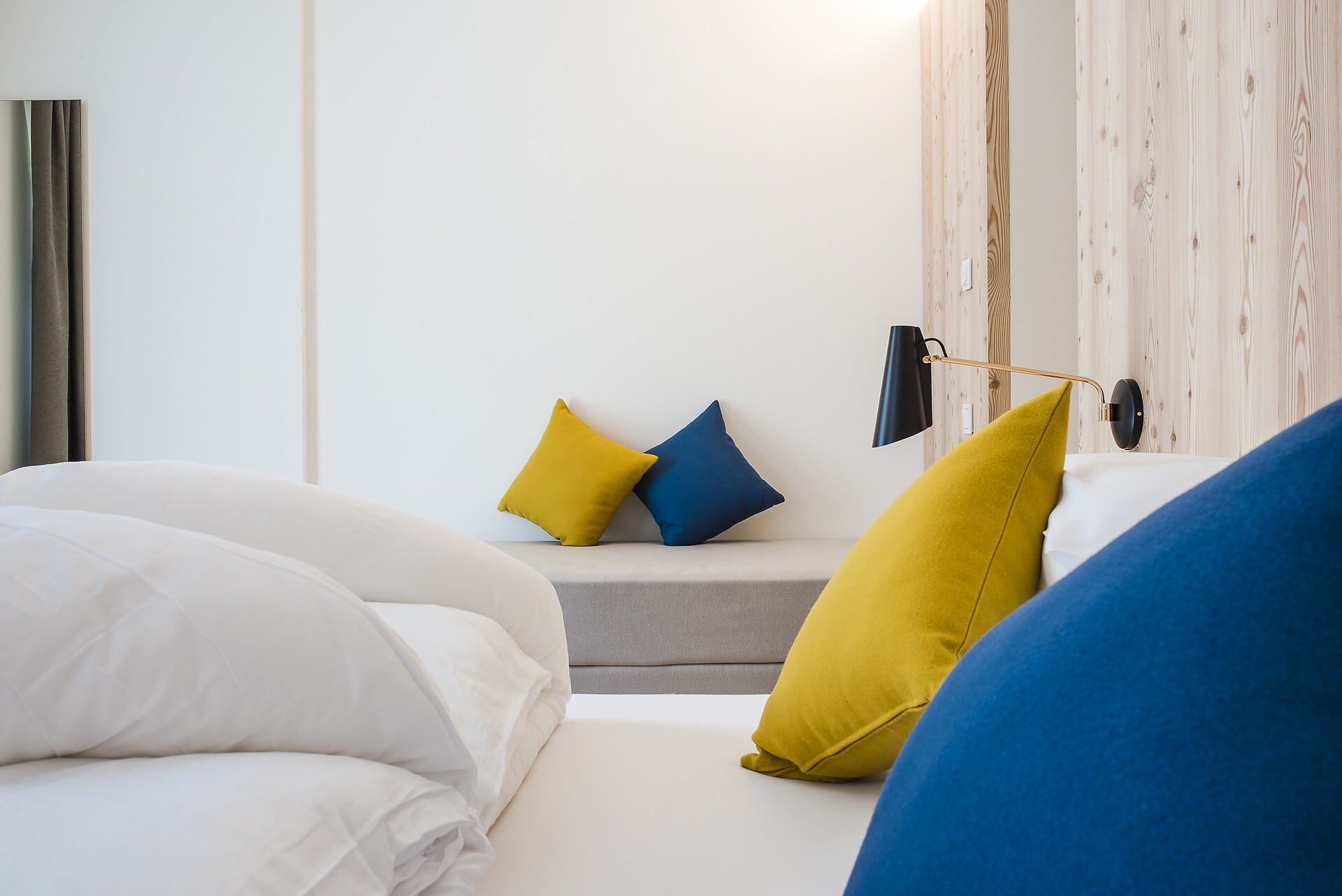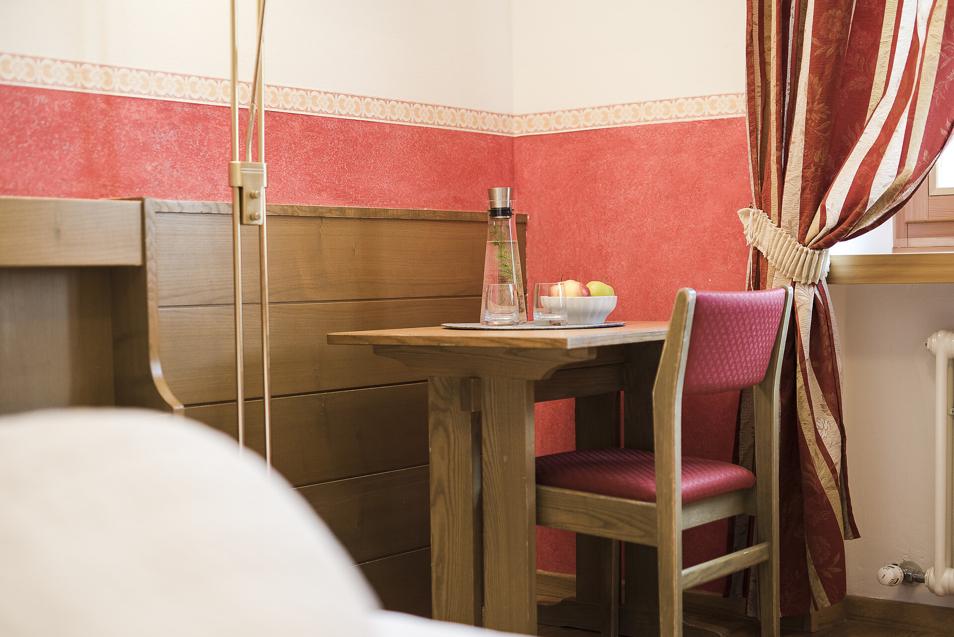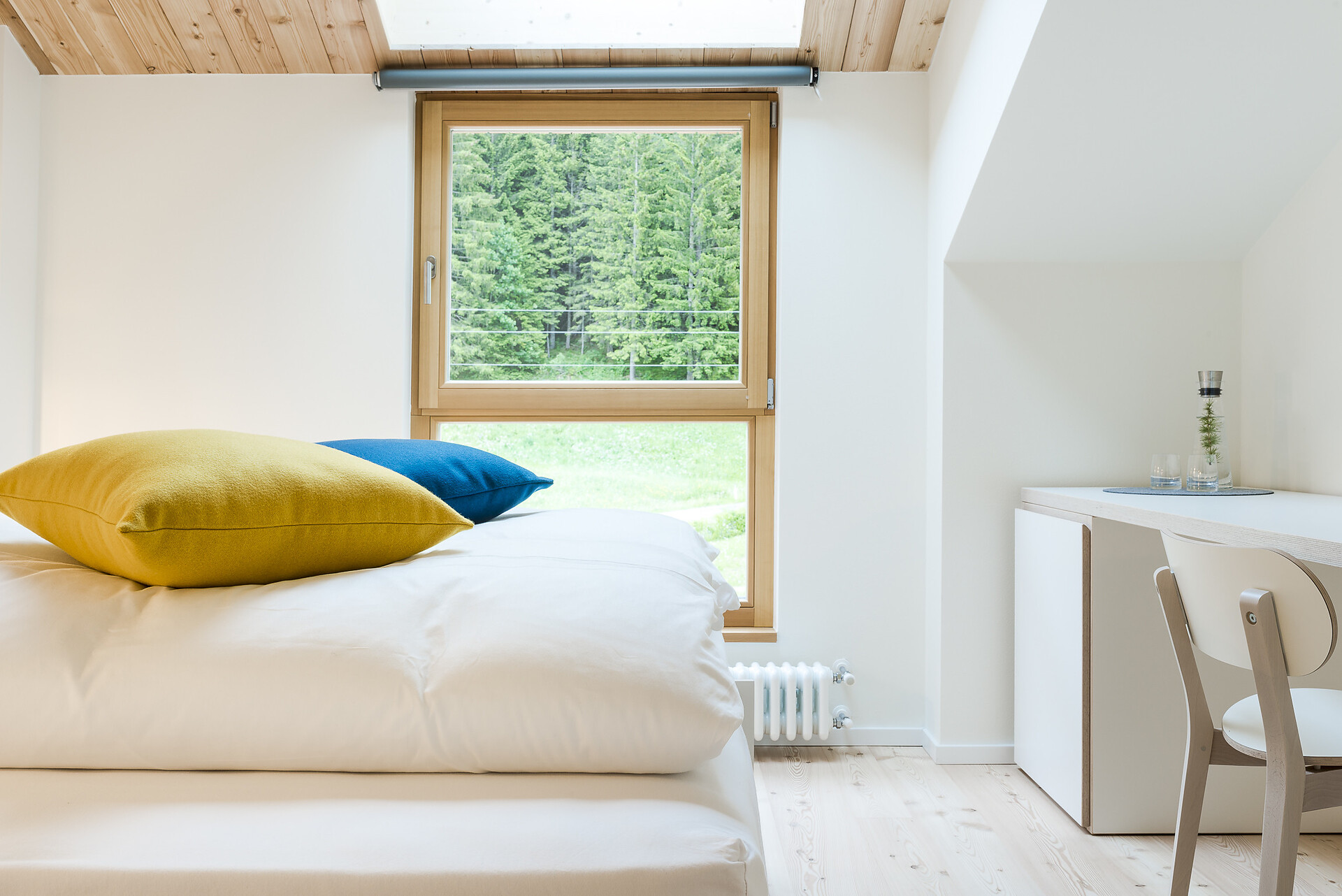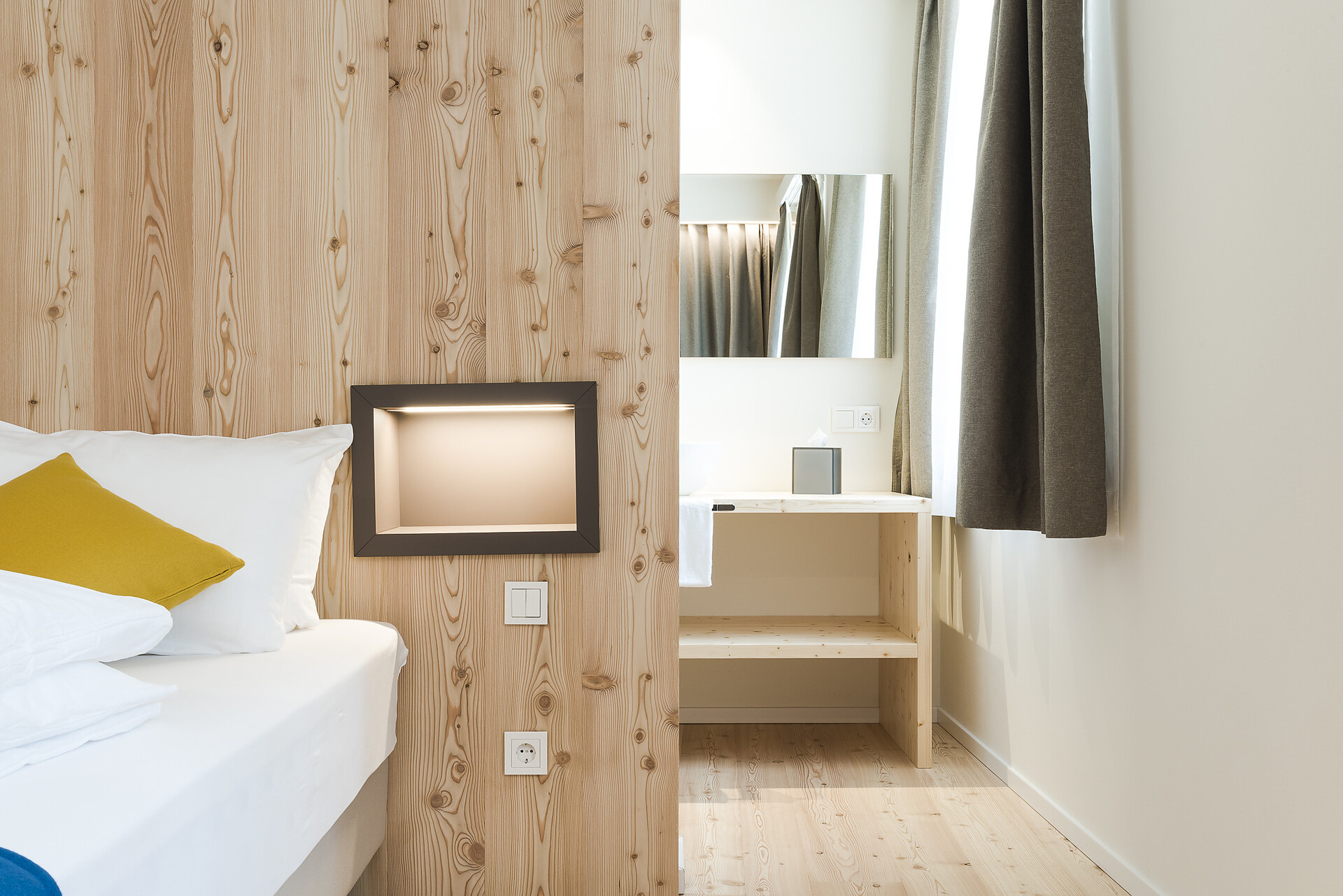 The Gasthof Mignon rooms take up the typical South Tyrolean hospitality. Inspired by the Bauhaus style, the mountain inn culture is presented in a sober, no-frills way. The use of local materials such as larch, fir and wool creates a link with the Alta Val di Non region.19m², larch floor, bathroom with shower, WC, safe, with a view on the forest/birch park. No TV and wifi signal at night.