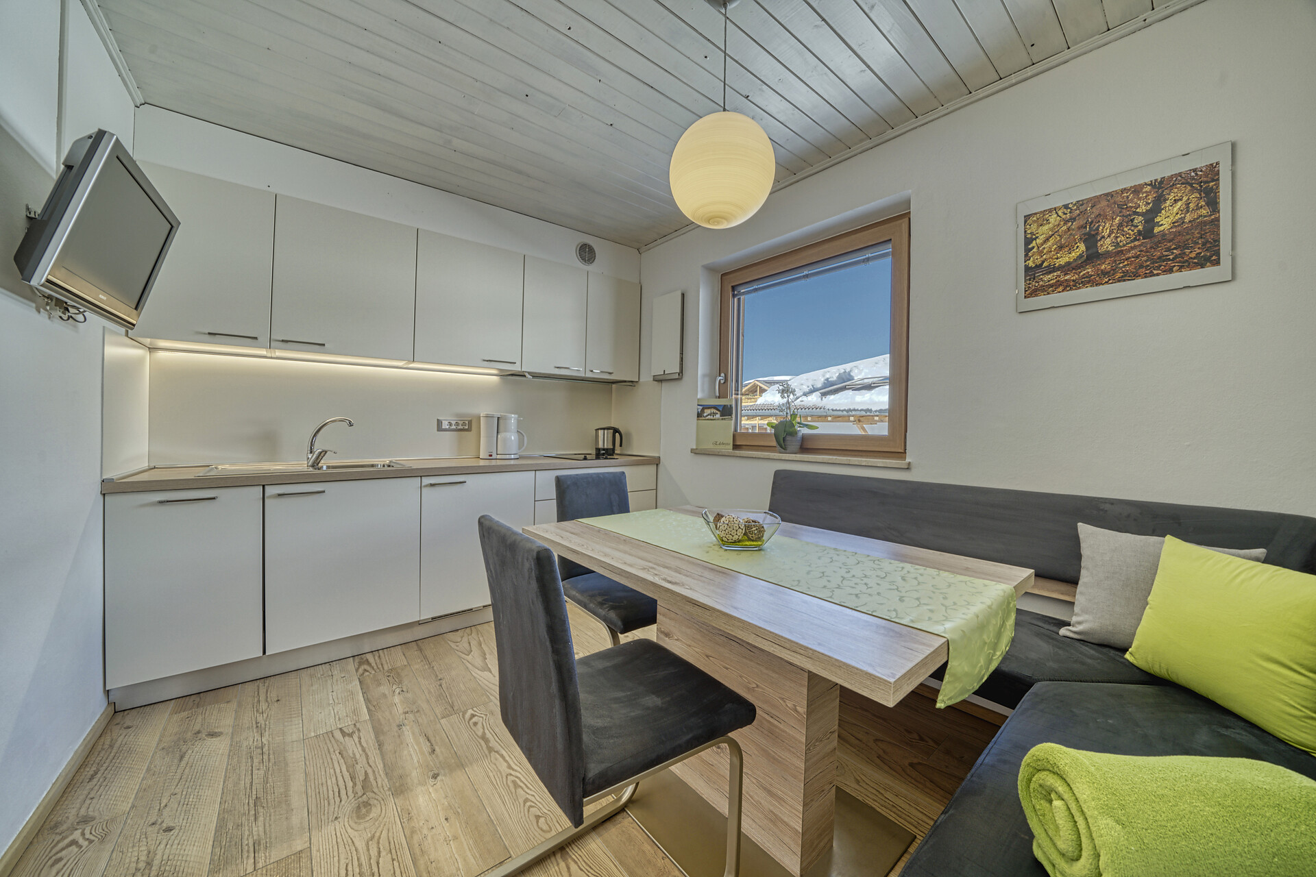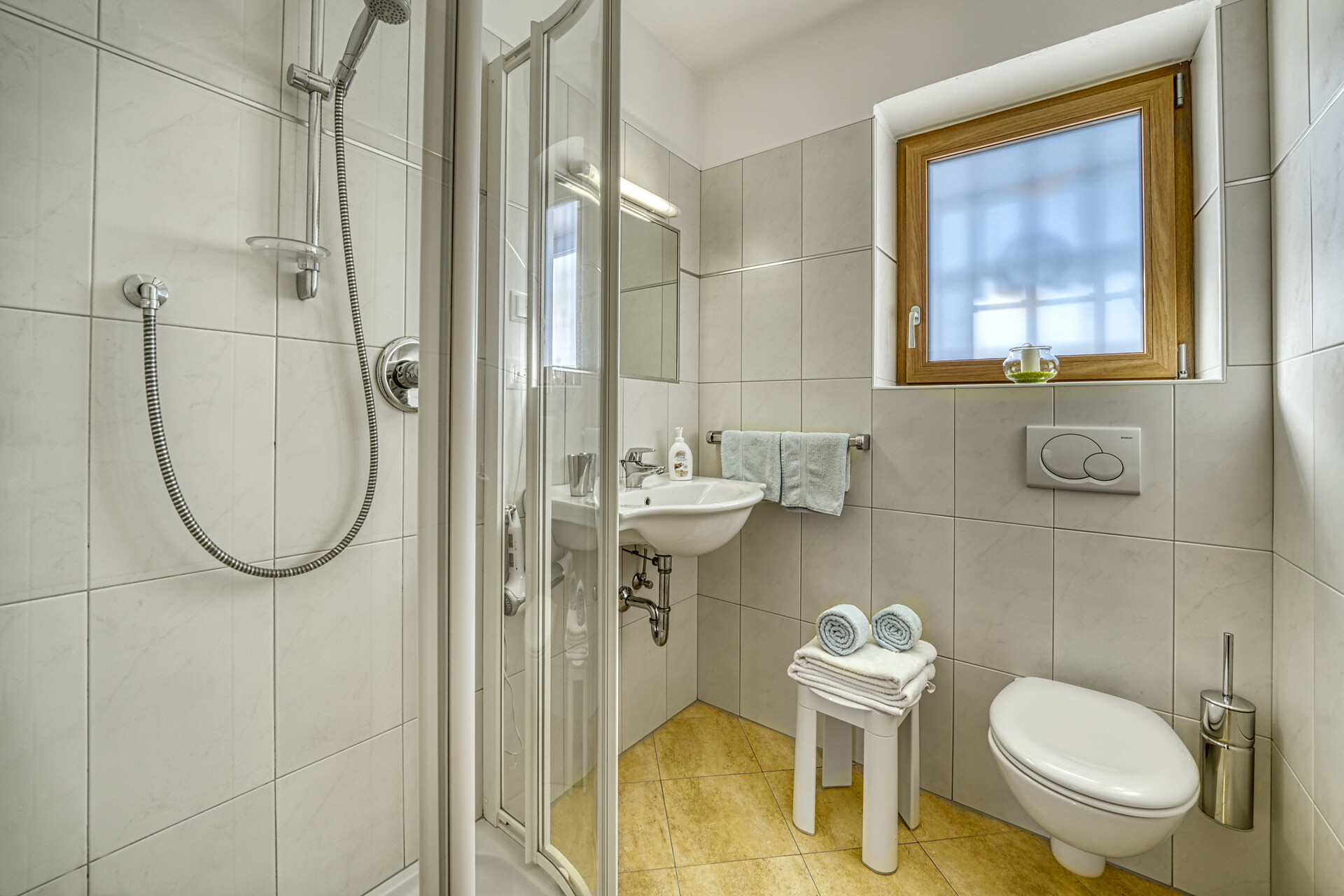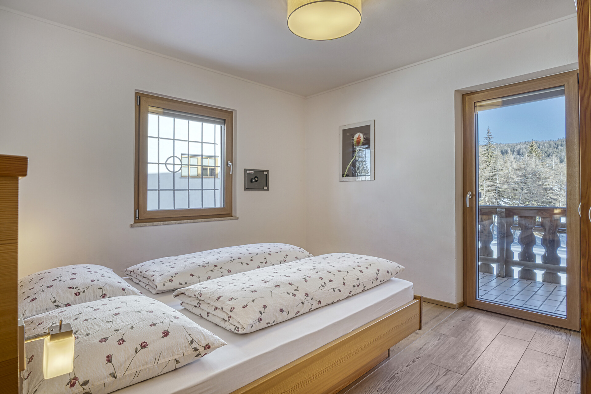 The apartment has a size of 40m² (per two – five persons) and has two bedrooms, a kitchen, a bathroom with shower and toilet, and balcony.