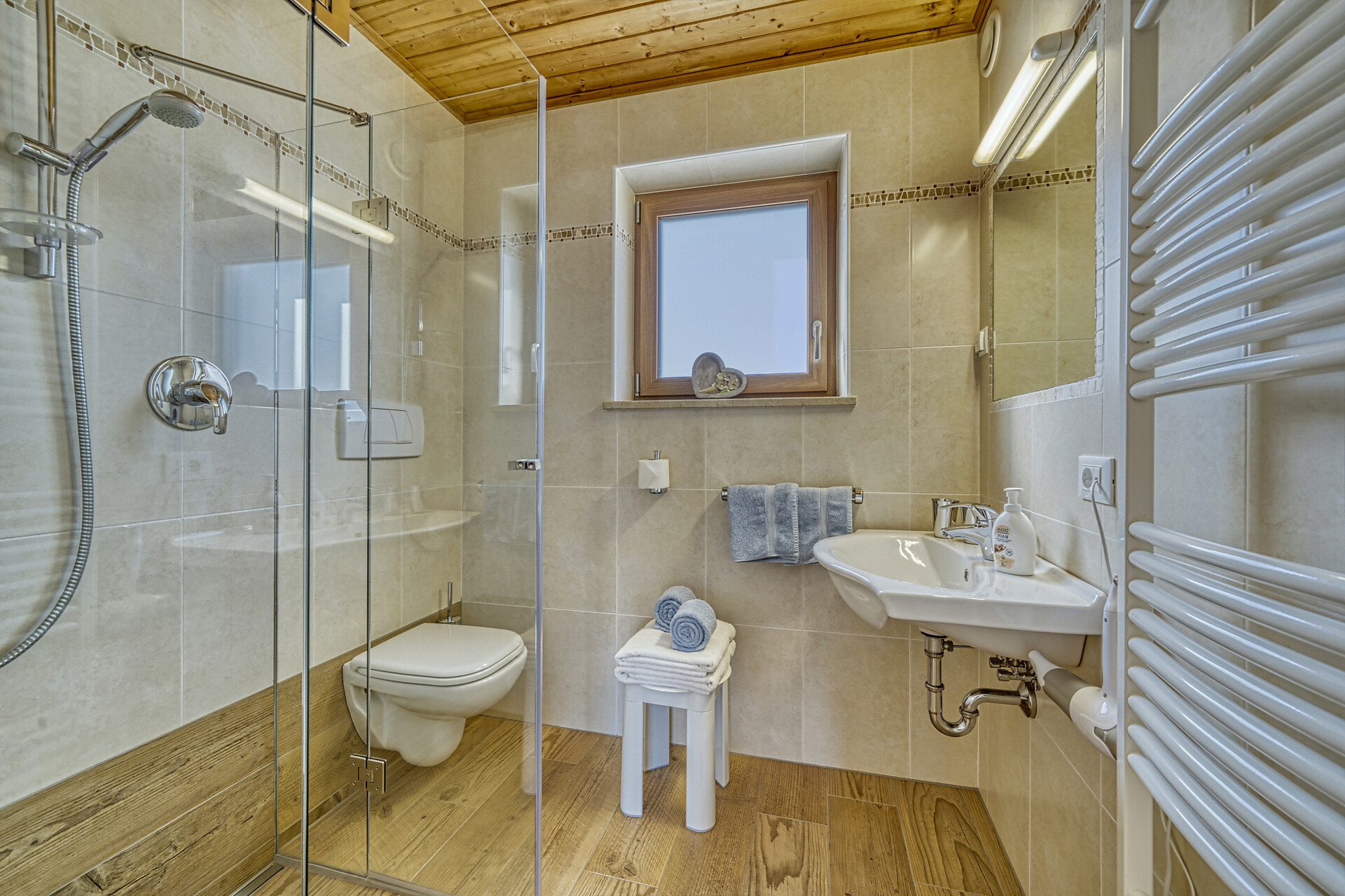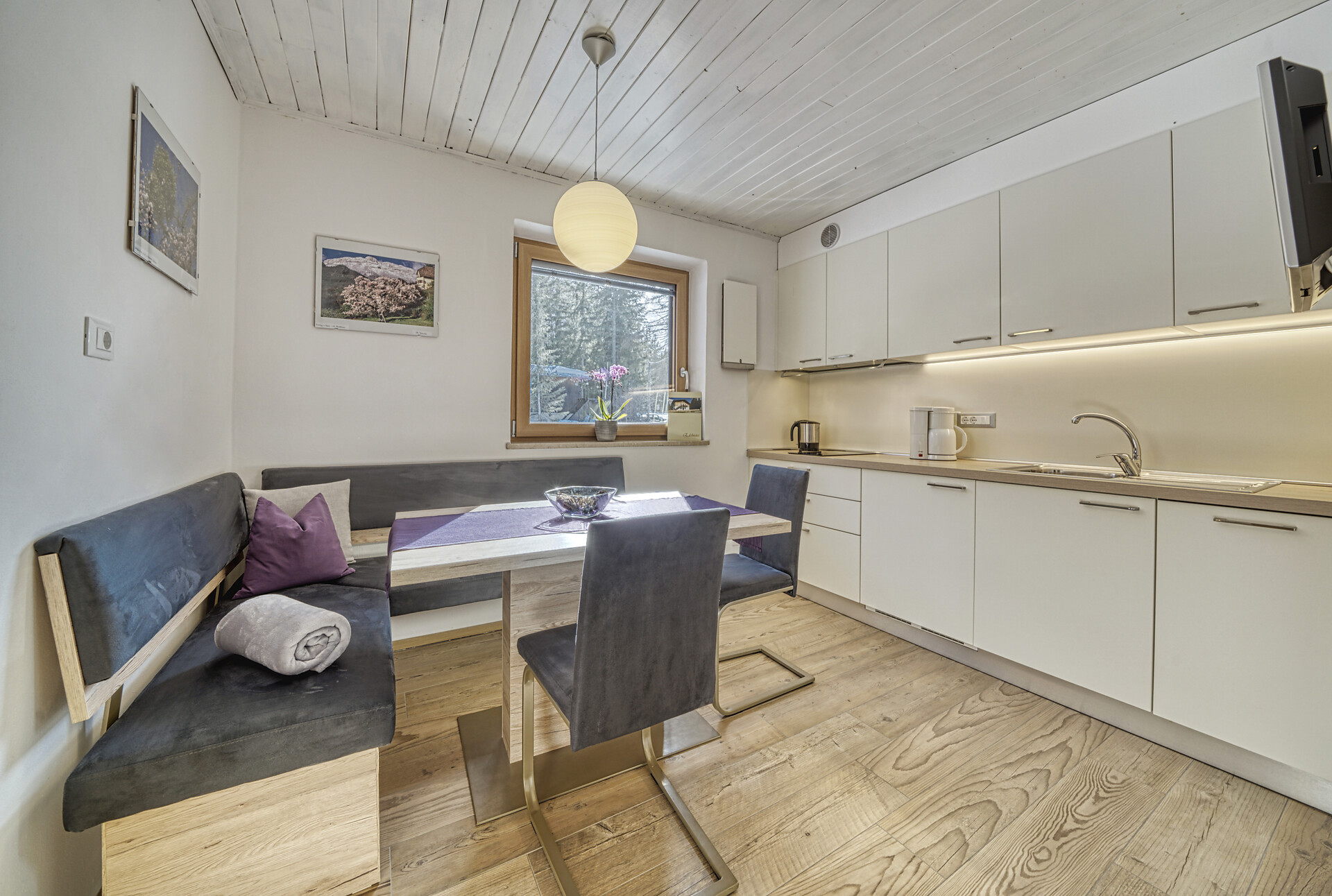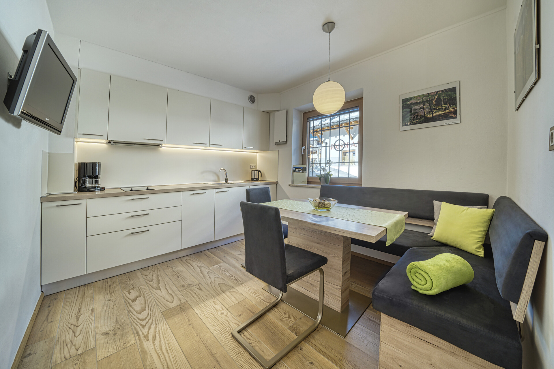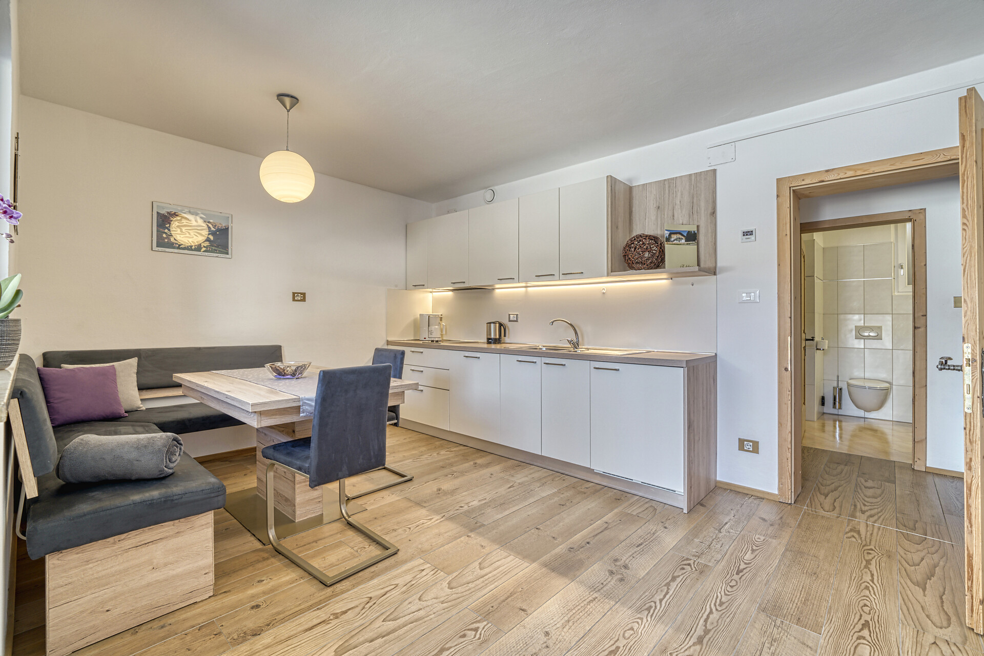 The apartment has a size of 40m² (per two – five persons) and has two bedrooms, a kitchen, a bathroom with shower and toilet, and balcony.