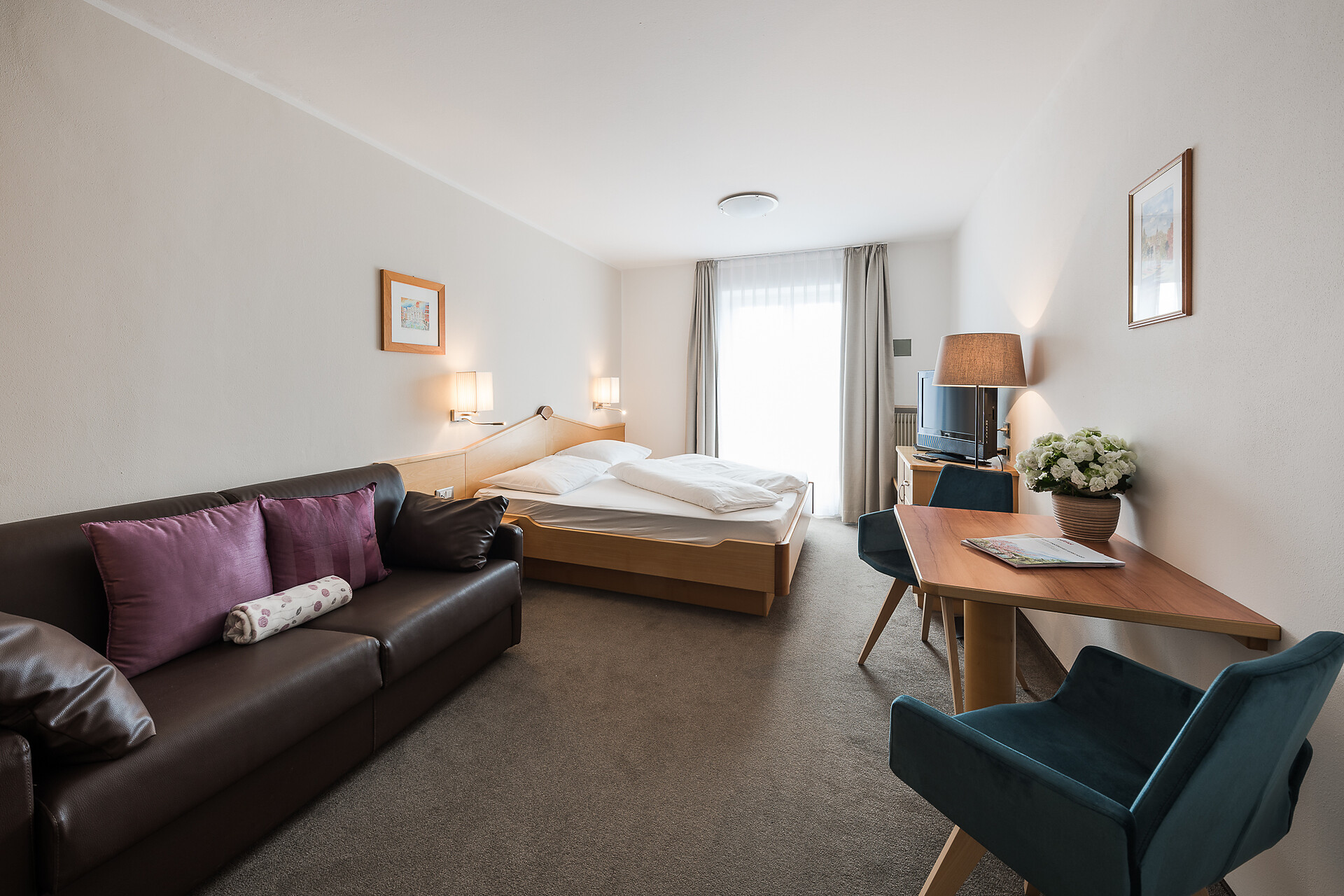 Equipment: Double room, Double bed , Sofa bed, Balcony, Living area, Safe, Non-smoking room, Shower / Bath tub, Hair dryer, TV, Satellite/Cable, WLAN, Main building, Panoramic view
