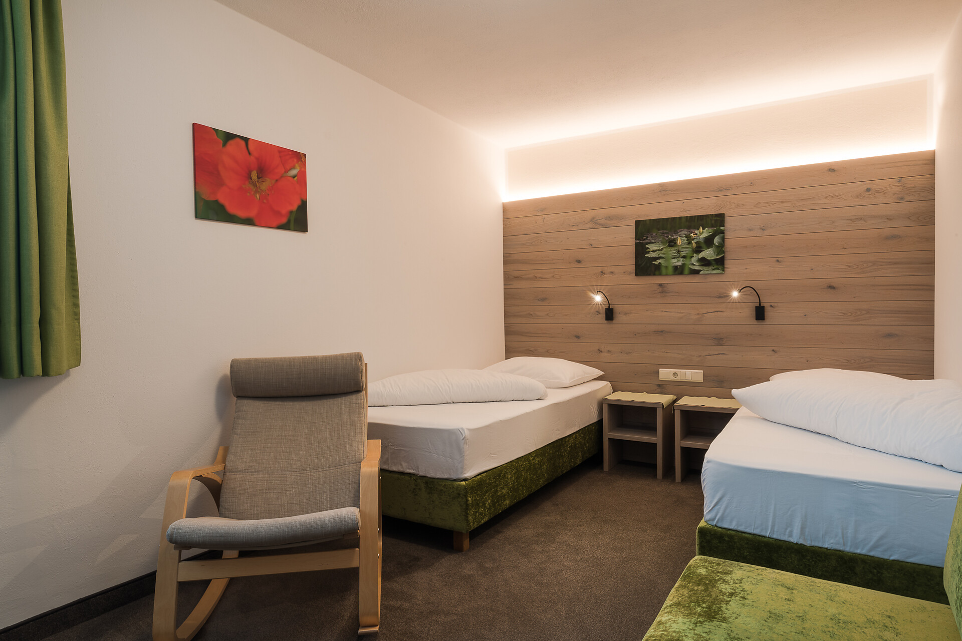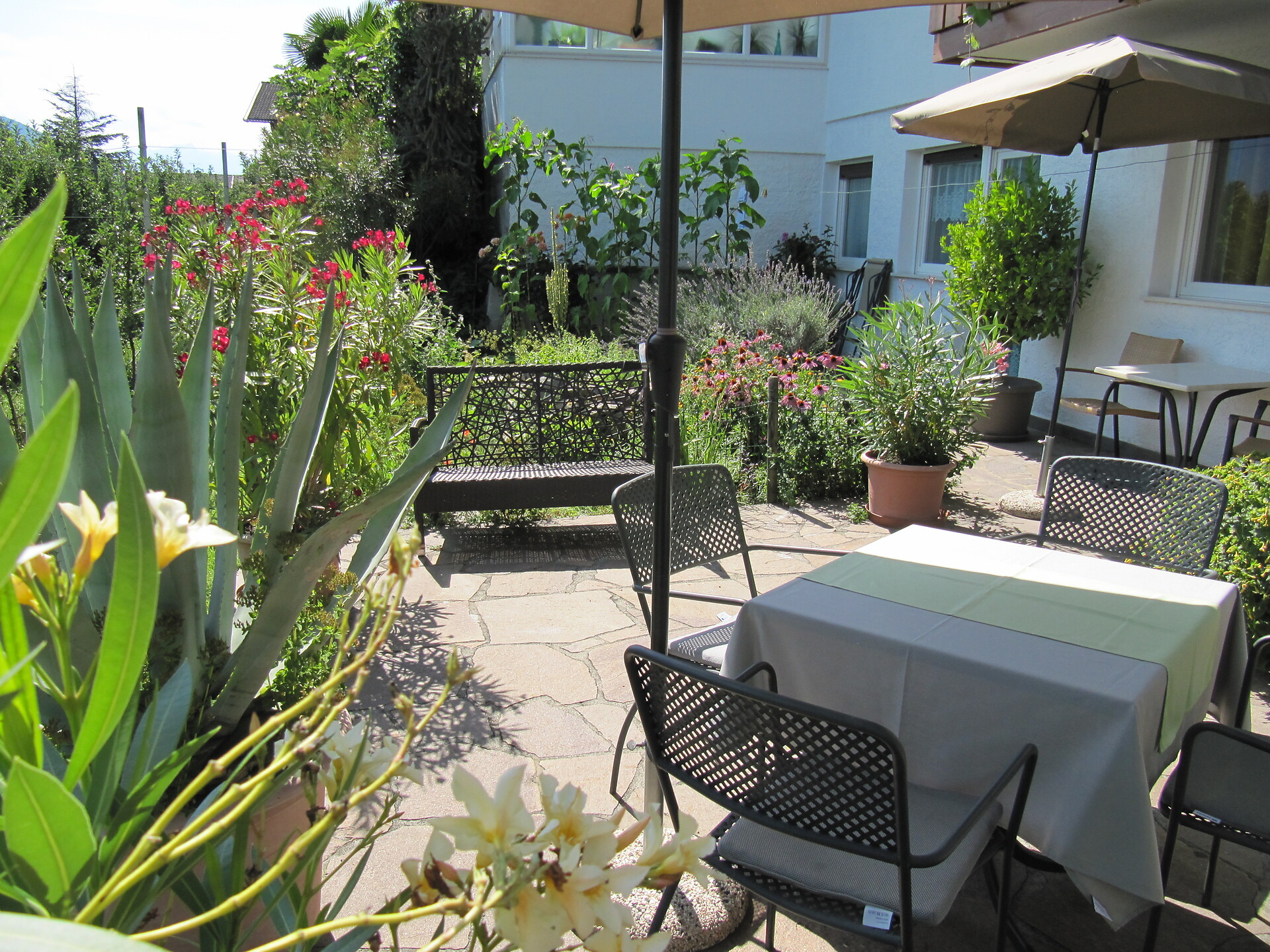 Gardenhotel Rebhof. A small three-stars guesthouse with high quality standards and friendly hospitality. The Rebhof is beautyfully situated within a wonderful garden. Lots of flowers and plants create a mediterranean flair. The house is in an very quiet position but only a five minutes walk from the centre of the village You live in new and tastefully furnished rooms or apartments with a fantastic view. Enjoy the carefully prepared breakfast in the conservarory or on the mediterranean terrace between lemontrees, olive trees and palms. Feel the romantic mood of the light of torches and get pleasure of a good glass of wine. Once in a while we have a walk into the mountains or have a party in our wine cellar. At the Rebhof you will find parking space, a car-park, a small solar heated swimming pool with a beautyful romantic view, a playground for children, a grill for barbecues, table tennis and mountainbikes. Inside the house there is a nice lounge, fridges at your disposal as well as cold and hot drinks (e.g. self-made apple juice and self-made wine).