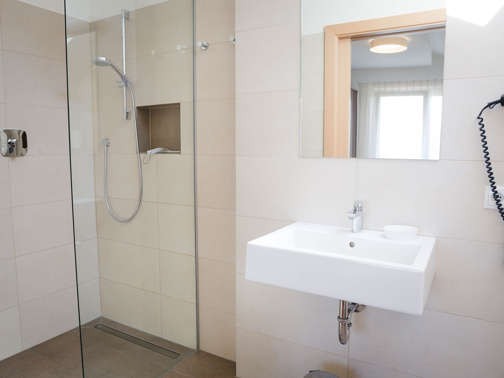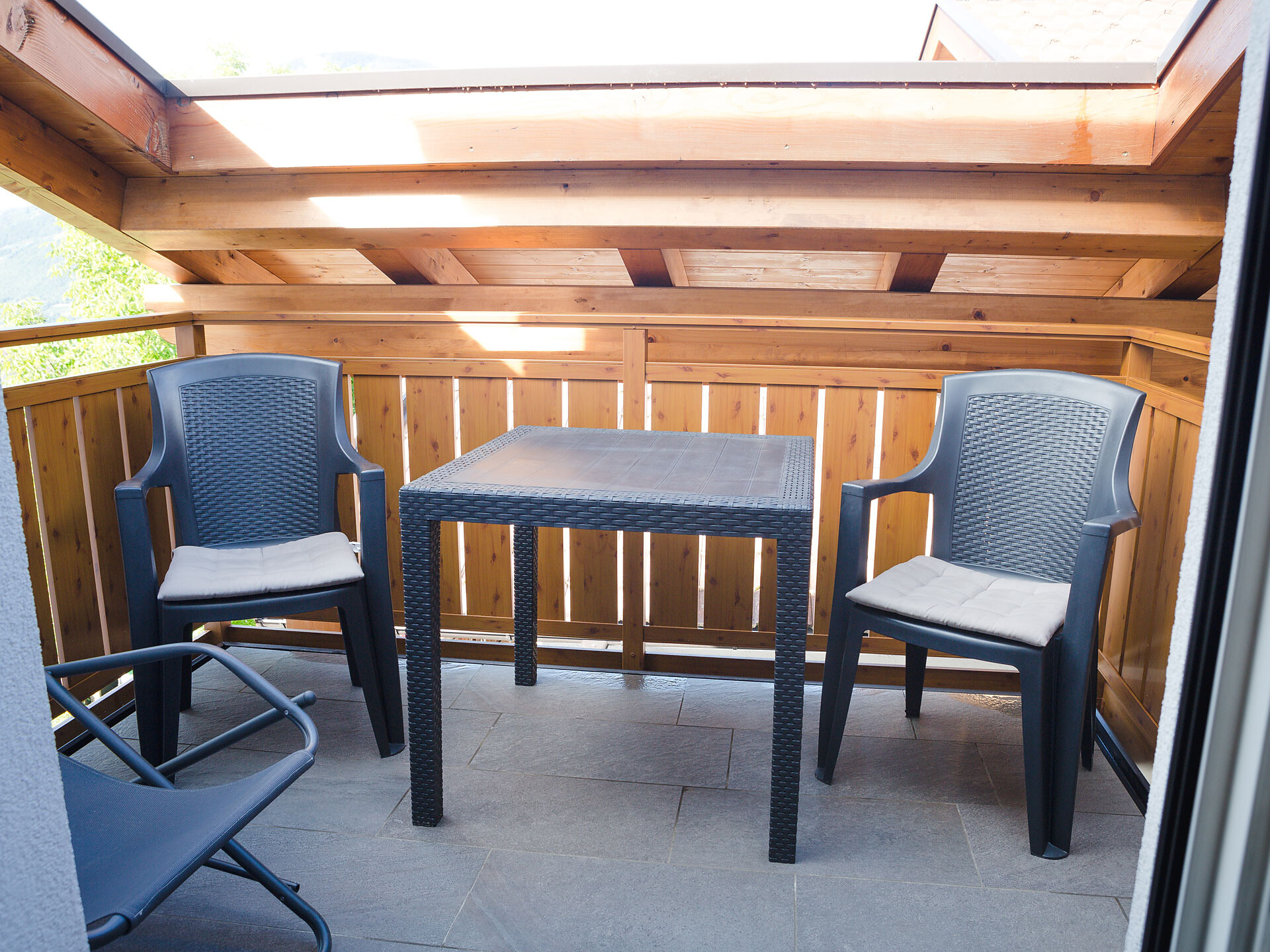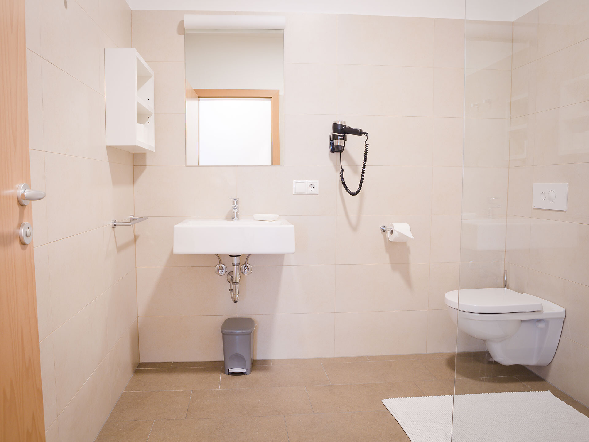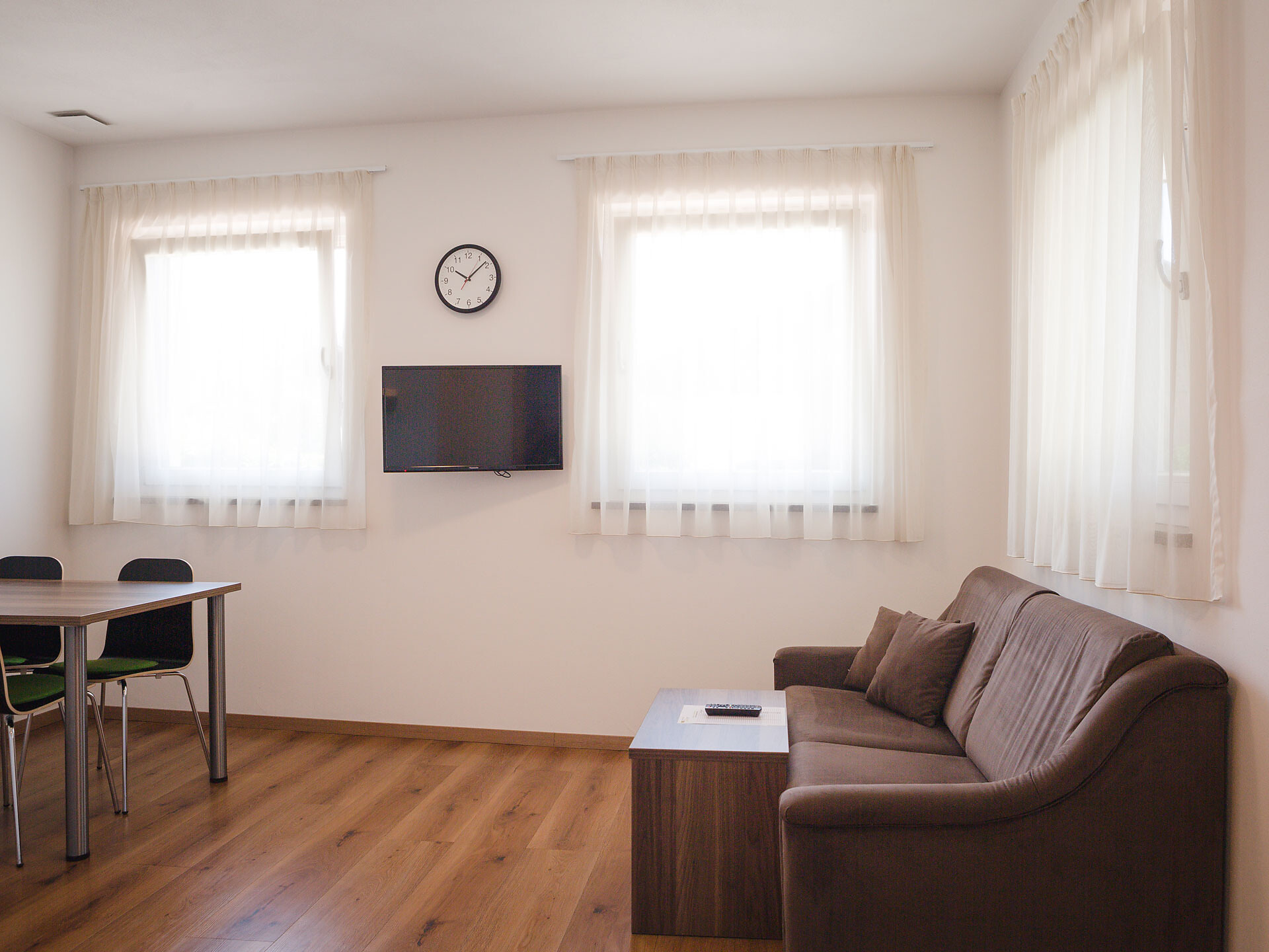 The Type A holiday apartment is on the 2nd floor and has a combined kitchen / living room, a separate bedroom with a double bed and wardrobe with integrated safe, plus a bathroom with accessible shower, hair dryer and WC. In the combined kitchen / living room there is a fully equipped kitchenette with an electric cooker, coffee machine, kettle and dishwasher. A small dining area, a closet and a double bed settee are also part of the combined kitchen / living room. There is, of course, a flat-screen TV with satellite connection. There is also a furnished south and west-facing balcony, a small clothes drying rack, bed linen, towels, free wireless internet access plus a vacuum cleaner. The holiday apartment is suitable for allergy sufferers. Smoking is forbidden in all of the holiday apartments. A cot and high chair are available on request.
