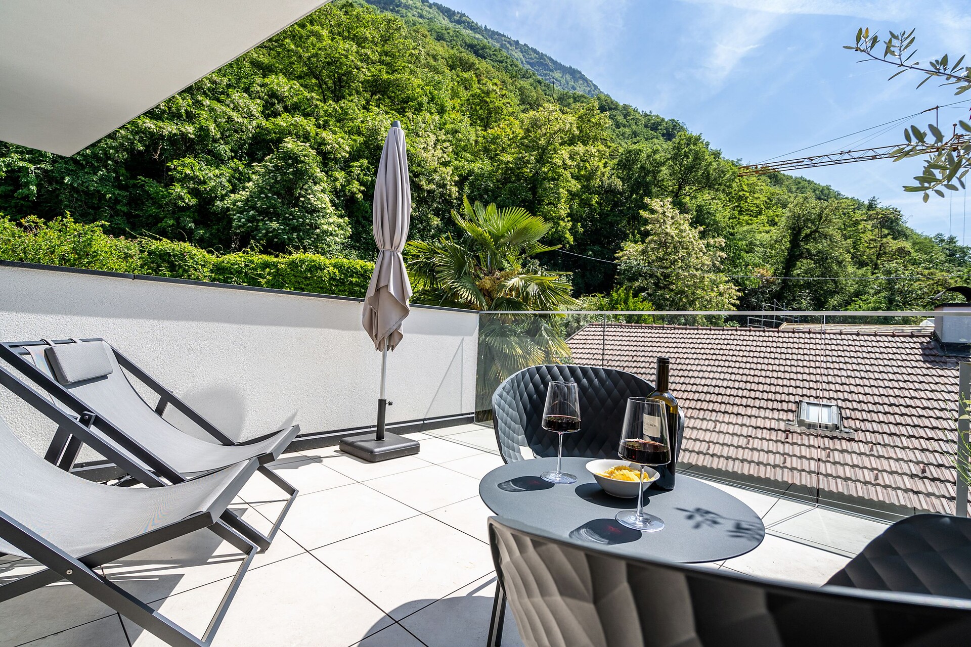 Our penthouse lodge on the mountainside of the idyllic village of Gargazon offers a fantastic view of the beautiful Adige Valley. On the spacious terrace you can enjoy the peace and quiet, unwind and let your gaze wander into the distance. You are sure to feel right at home in the spacious apartment with its open-plan kitchen/living room, large windows and high-quality furnishings. You can reach the nearby waterfall and the Kröllturm castle ruins directly from the accommodation.