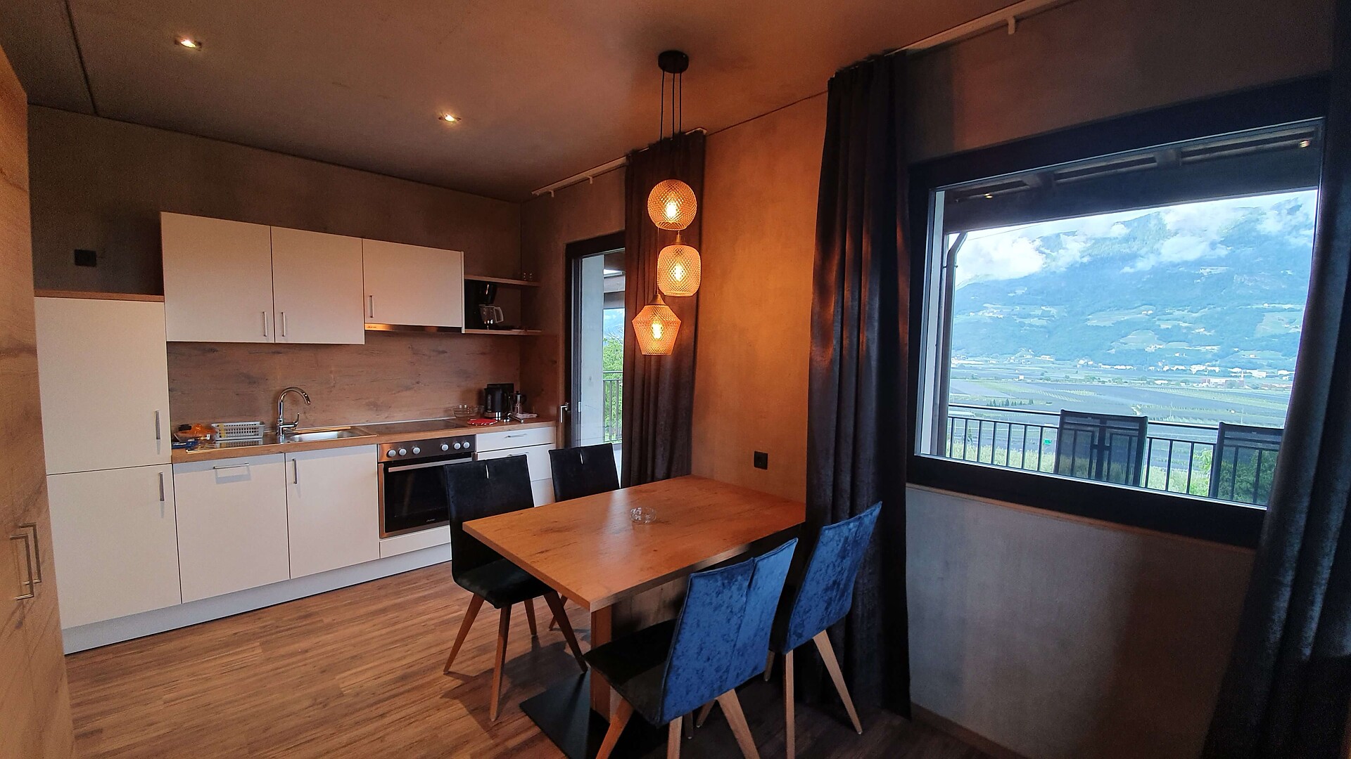 Double bed , Extra bed, Double sofa bed, Balcony, Bed linen provided, Eat-in kitchen, Coffee machine, Dishwasher, Electric cooker, Microwave, Cutlery provided, Water boiler, Shower/Bath tub, Hair dryer, Towels, TV, Satellite/Cable, WLAN, Final cleaning included, Main building, Panoramic view