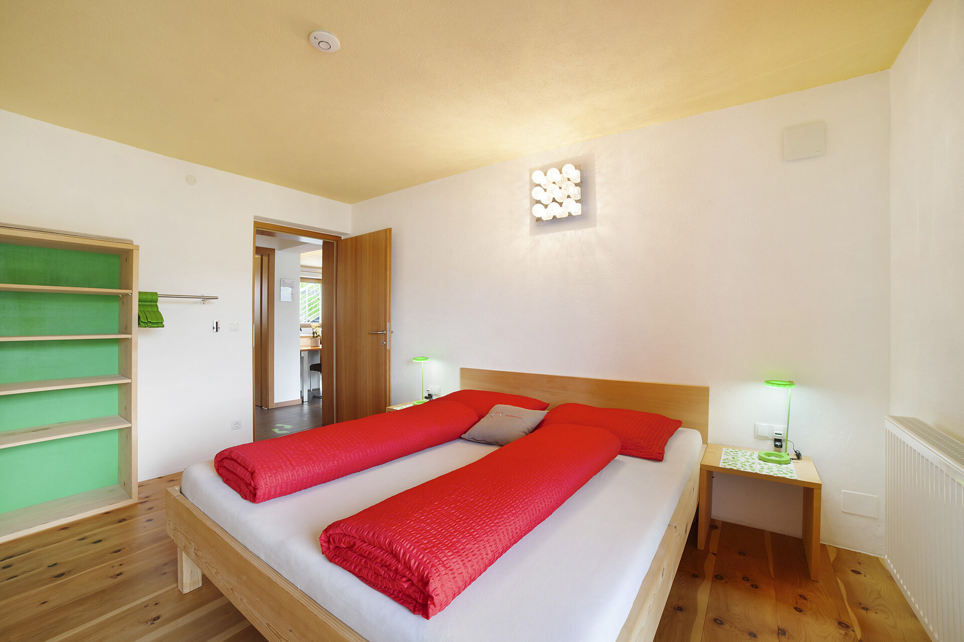TV, WLAN, dishwasher, microwave, refrigerator, coffee maker, toaster, room ventilation, Swiss pine floors, hoover system, balcony, terrace, playground, parking space, panoramic view, cattle breeding on the farm, washing machine.