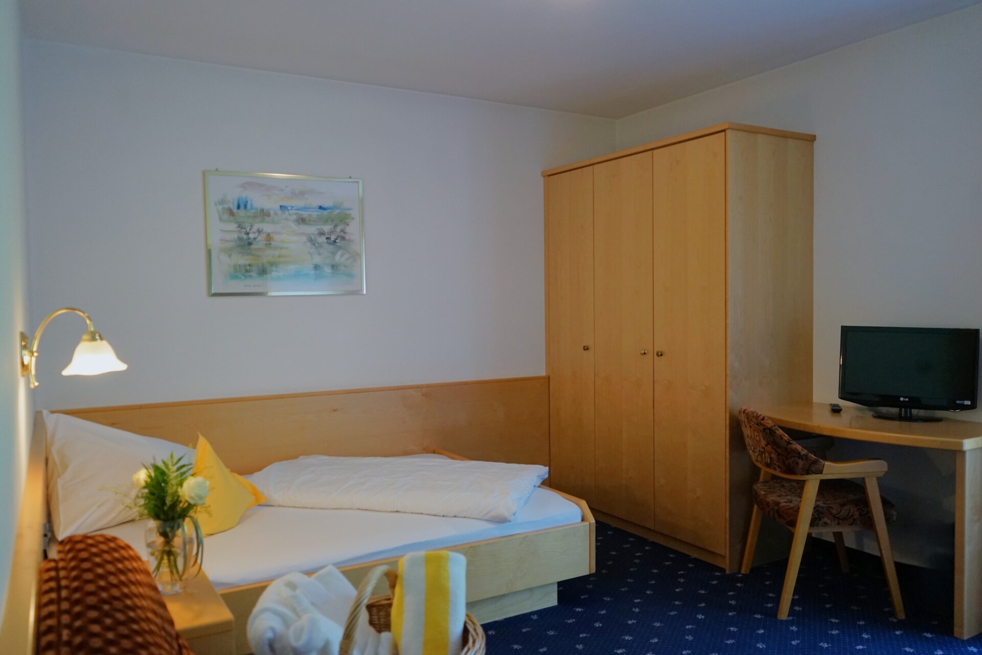 Single room, Single bed, Balcony, Anti-allergic room, Safe, Shower / Bath tub, Bidet, Hair dryer, TV, Satellite/Cable, Internet access, Main building