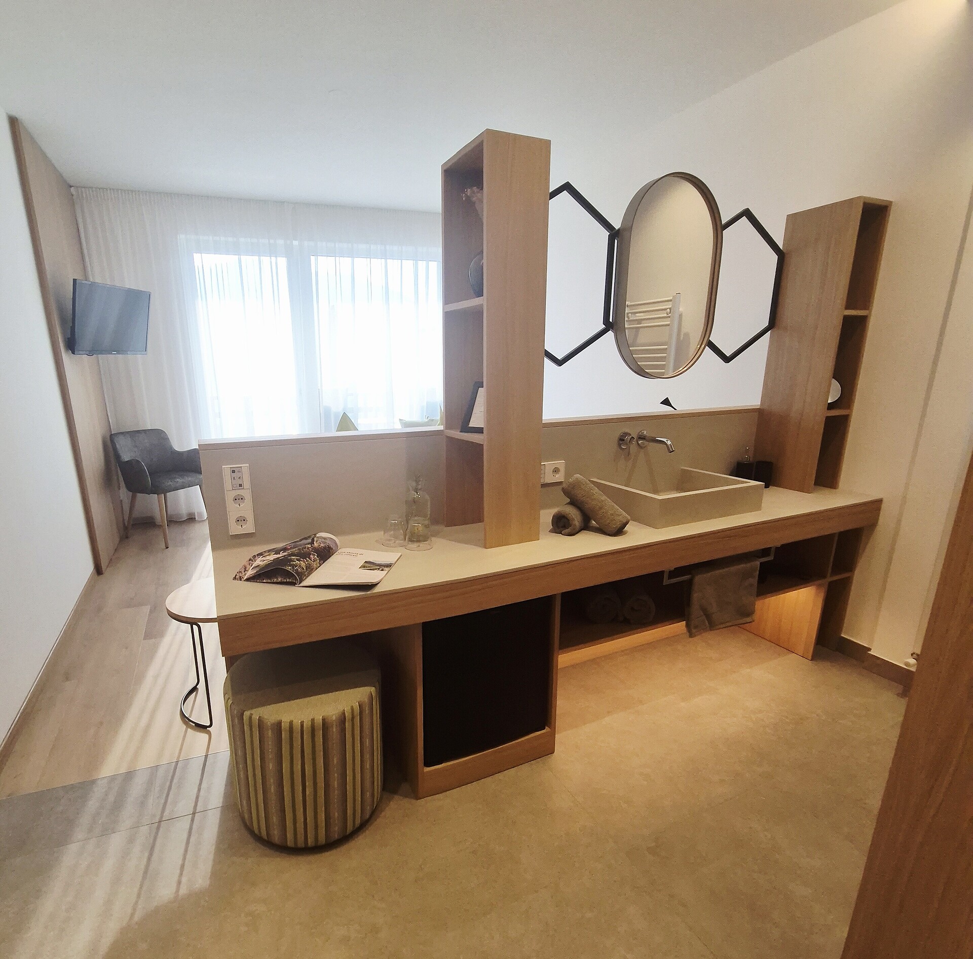 Our new, large three-room apartment Schenna has 55 m², a balcony, two double bedrooms, a living room with sofa (pull out double bed), safe, Wifi, flat-screen TV, a kitchenette with coffee machine, kettle, 4 hotplates, refrigerator, dishwasher as well as cooking and eating utensils, a bathroom with washbasin, shower, hairdryer and WC.