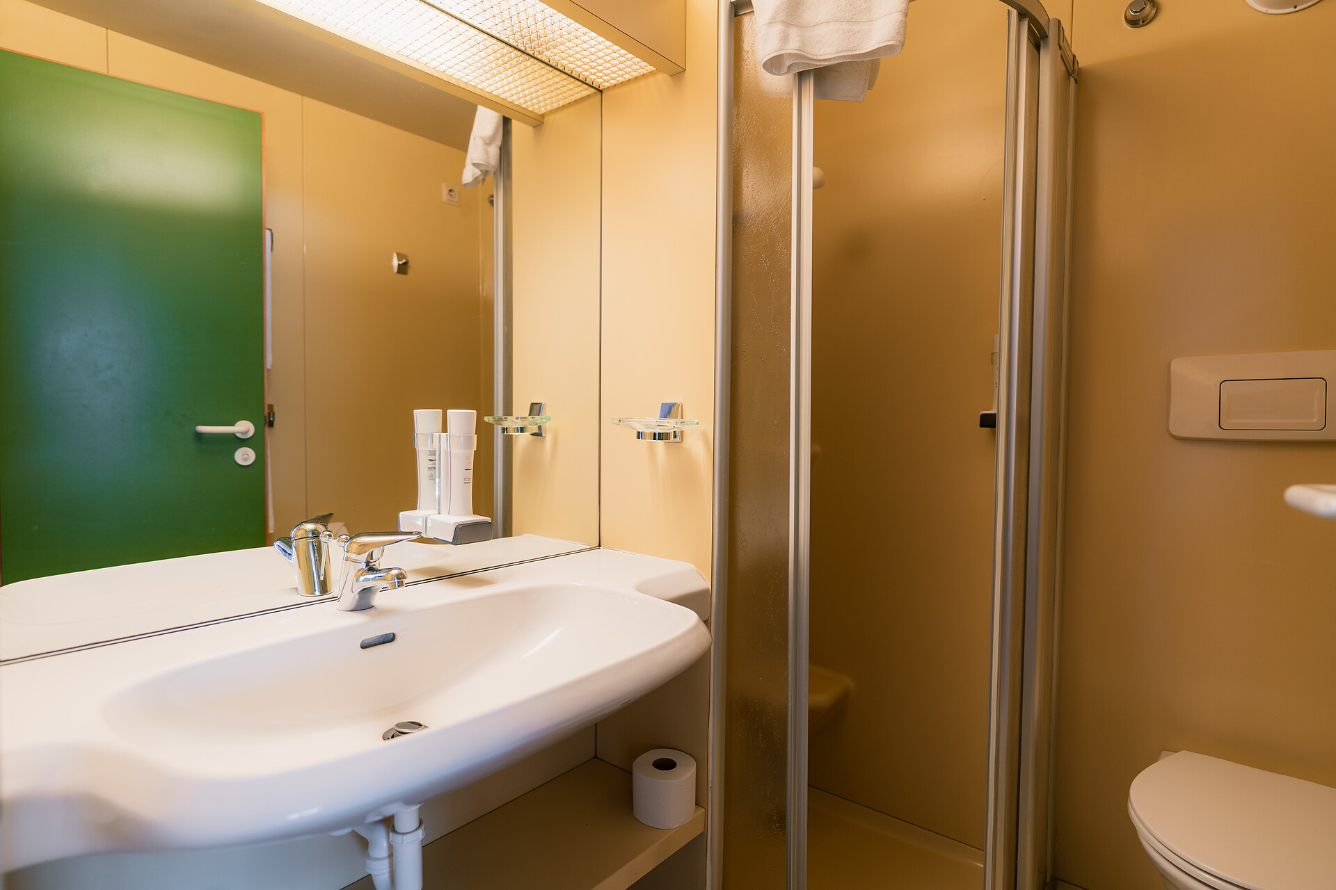 • Bathroom with shower and hairdryer