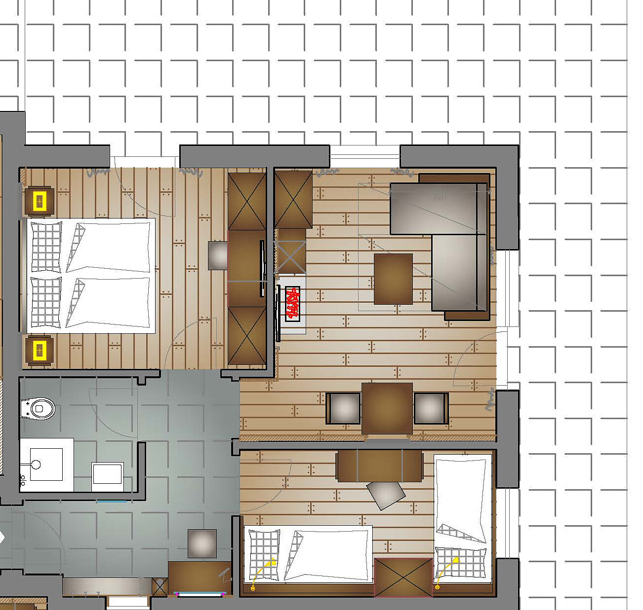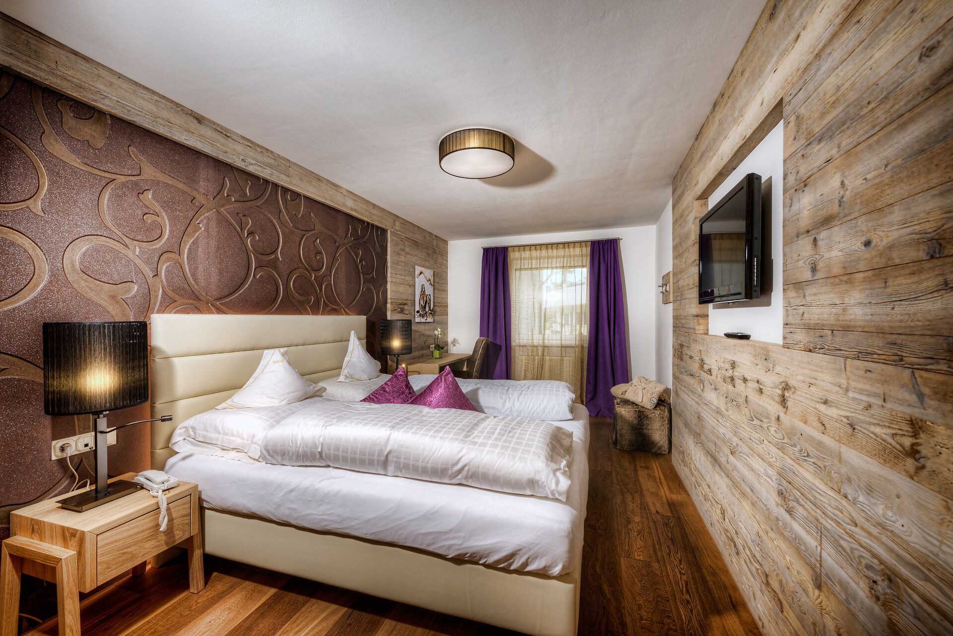 nostalgic suite in antique spruce wood with 2 separate bedrooms,