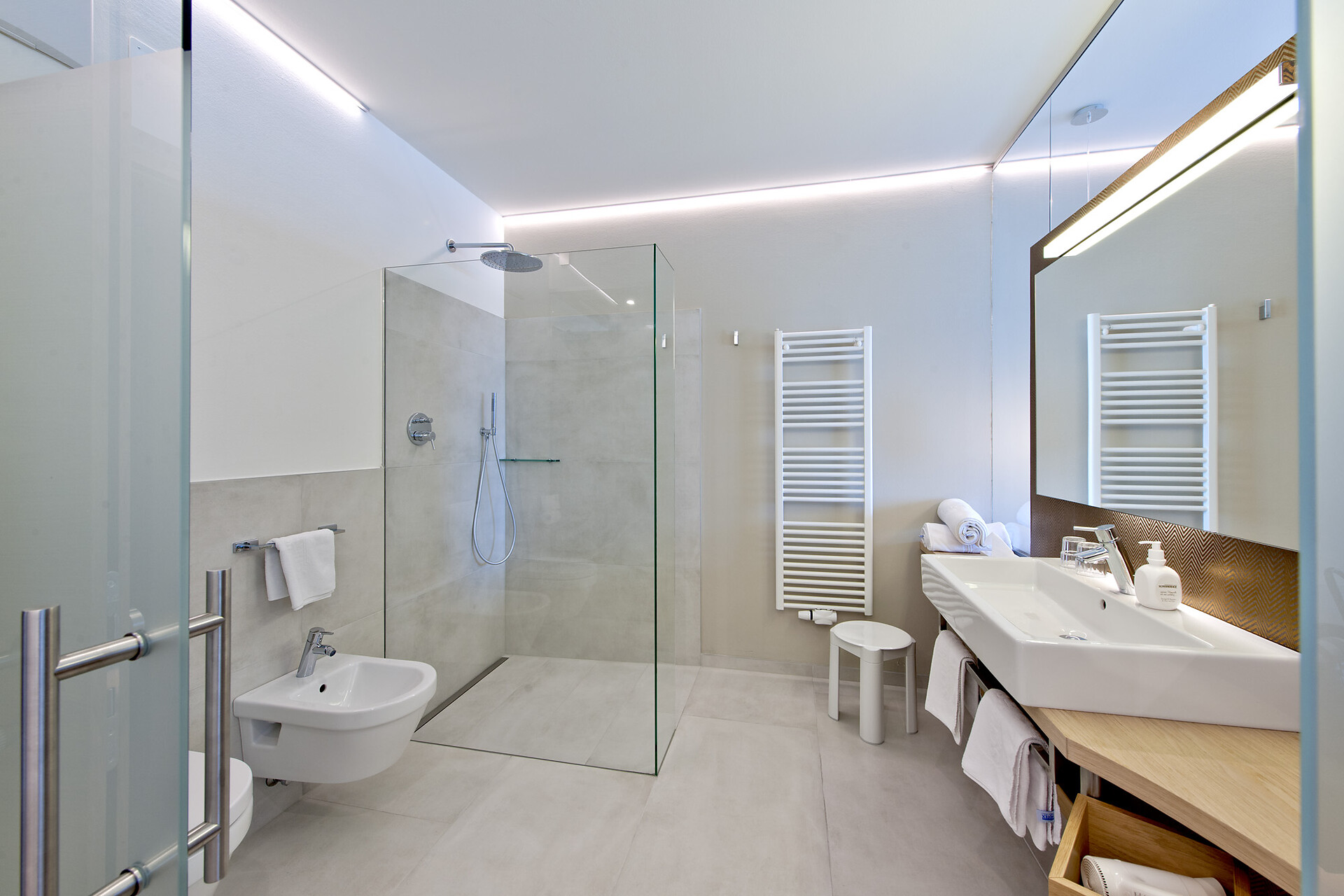 Bath with WC and bidet, Soft Rain shower, hair-dryer, LED TV, Tel and safe.