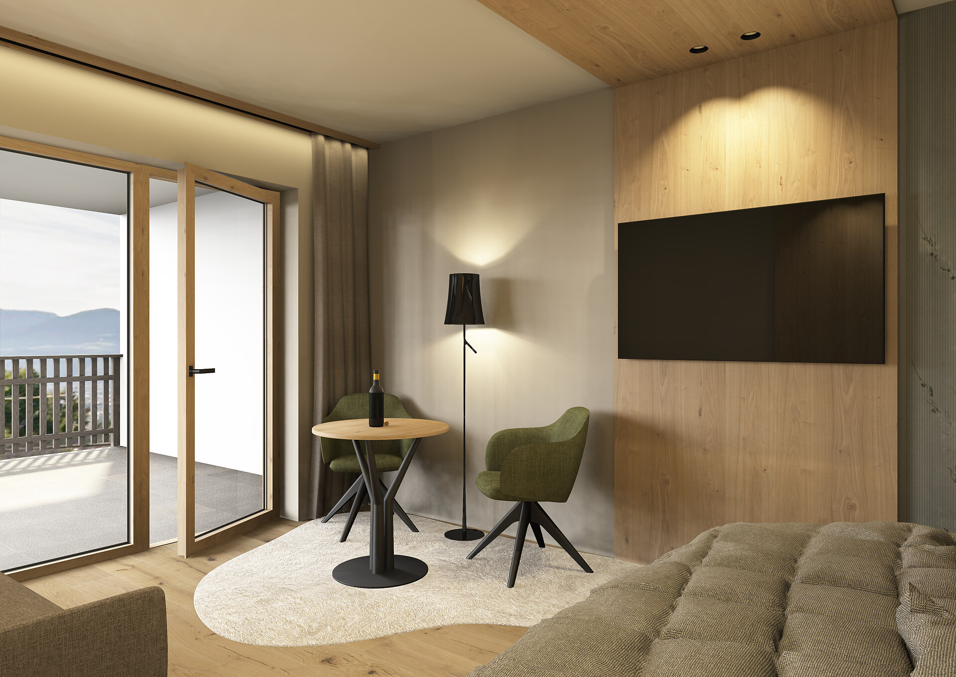 Our new, large three-room apartment Schenna has 55 m², a balcony, two double bedrooms, a living room with sofa (pull out double bed), safe, Wifi, flat-screen TV, a kitchenette with coffee machine, kettle, 4 hotplates, refrigerator, dishwasher as well as cooking and eating utensils, a bathroom with washbasin, shower, hairdryer and WC.
