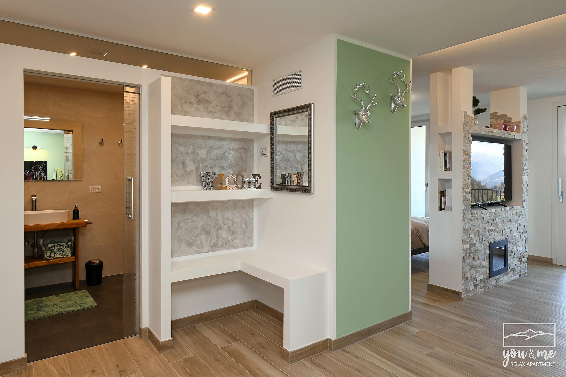 The "You&Me Relax Apartment" is a space of tranquility and warm intimacy, with bright environments, thanks also to its large panoramic windows. Among the comforts offered are TV, free wifi, washing machine, well-equipped kitchen-living room (crockery, various utensils, tea kettle, coffee maker, blender, normal and microwave oven, toaster, electric juicer, dishwasher, small wine cellar, fridge), drying rack for clothes, iron and ironing board.