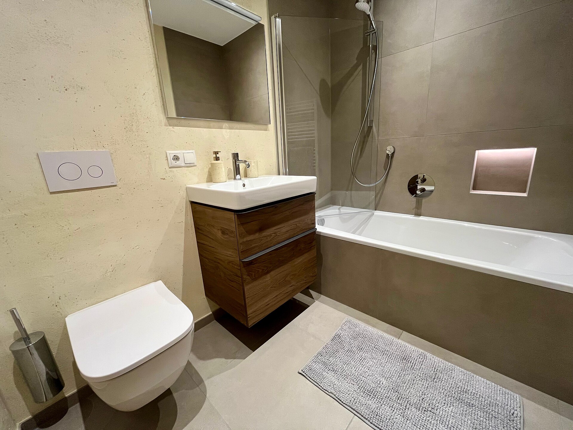 Two private covered parking spaces with a wallbox for electric cars are located directly at the property.