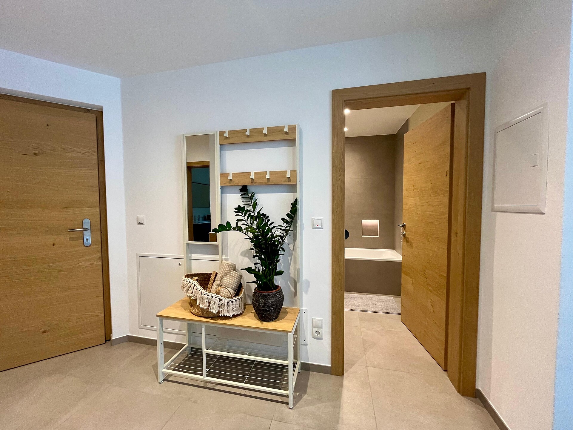 The 80 m² apartment offers a cosy living room with stunning panoramic mountain views, a fully equipped kitchen, two bedrooms, and two separate modern bathrooms – perfect for up to 3 adults and children.