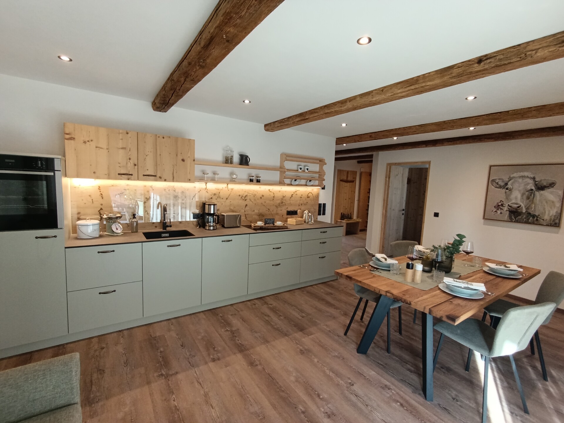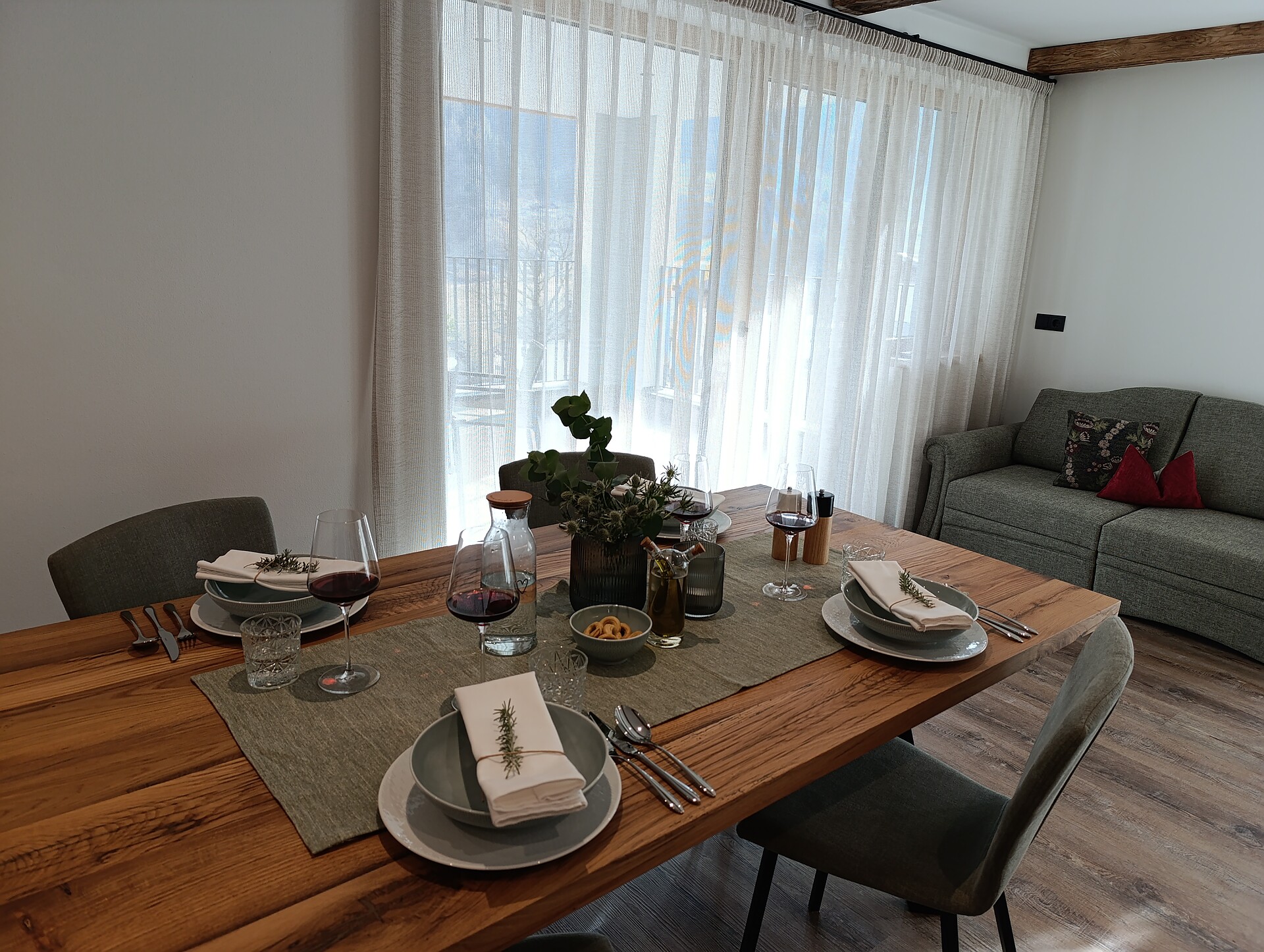 True hospitality thrives on attention to detail, and our two apartments are furnished to a high standard with local wood, in a rustic and slightly modern style, using natural, sustainable materials to create a pleasant and cozy atmosphere in the house.